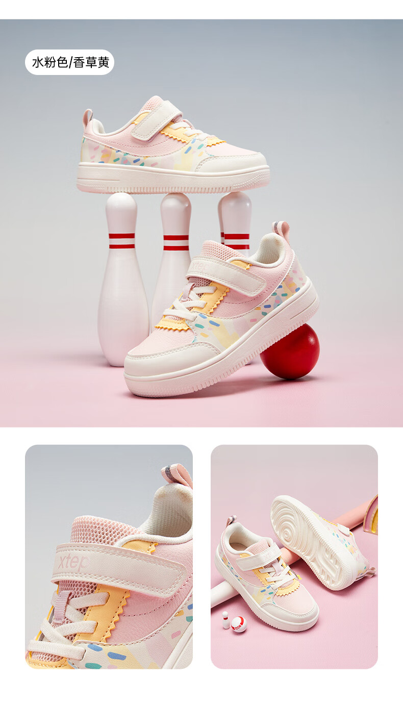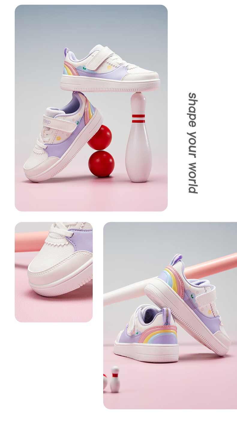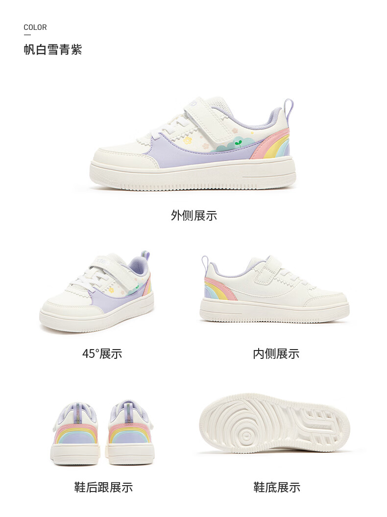特步(XTEP)儿童童鞋女童小童革面百搭魔术贴板鞋 33 帆白/雪青紫