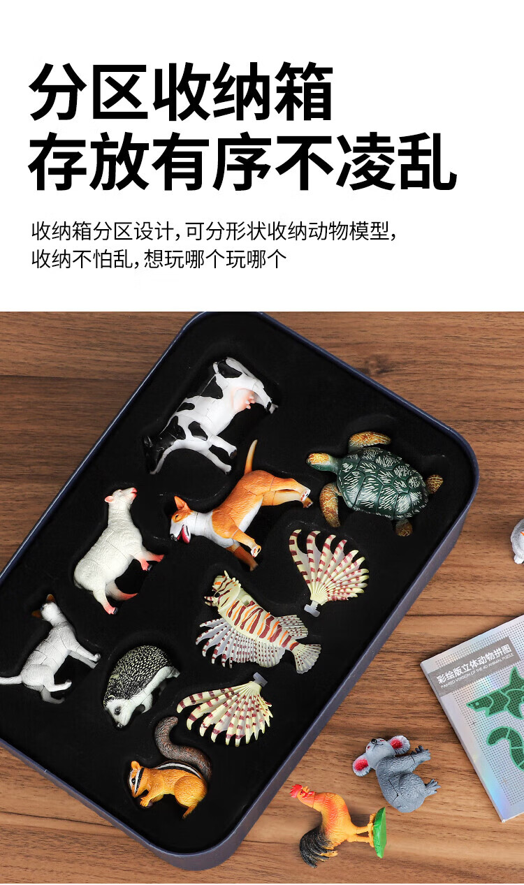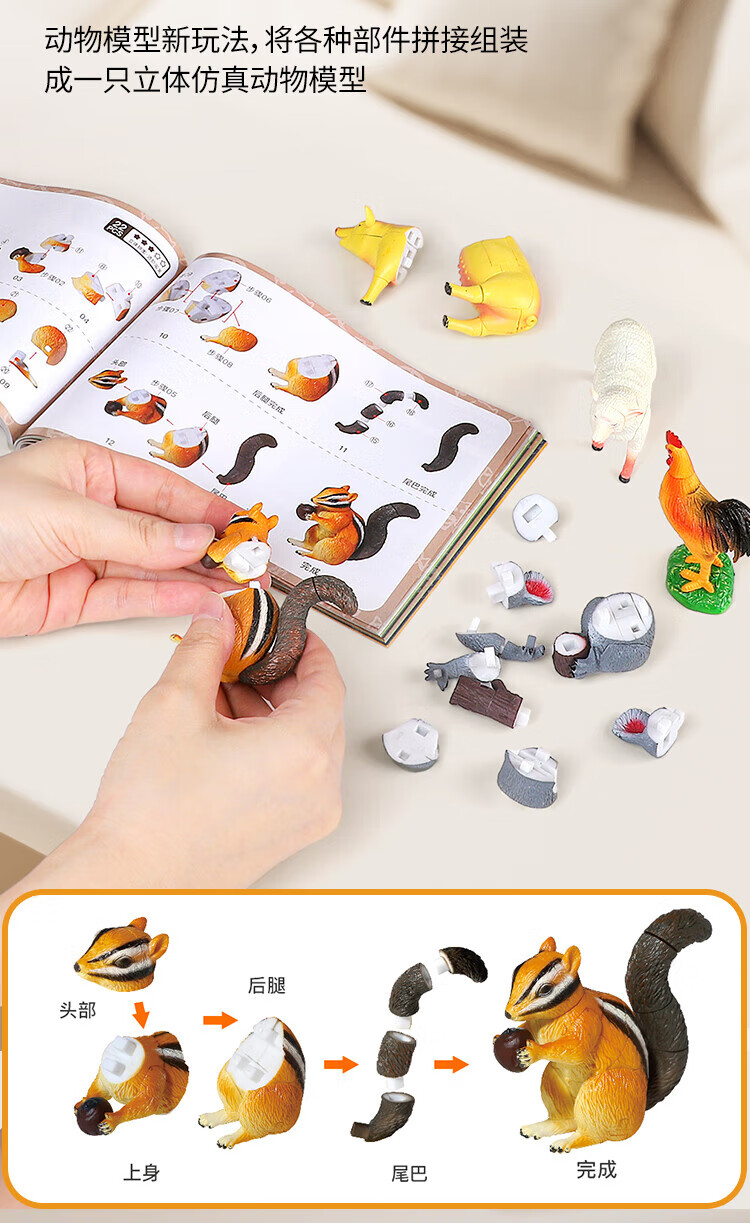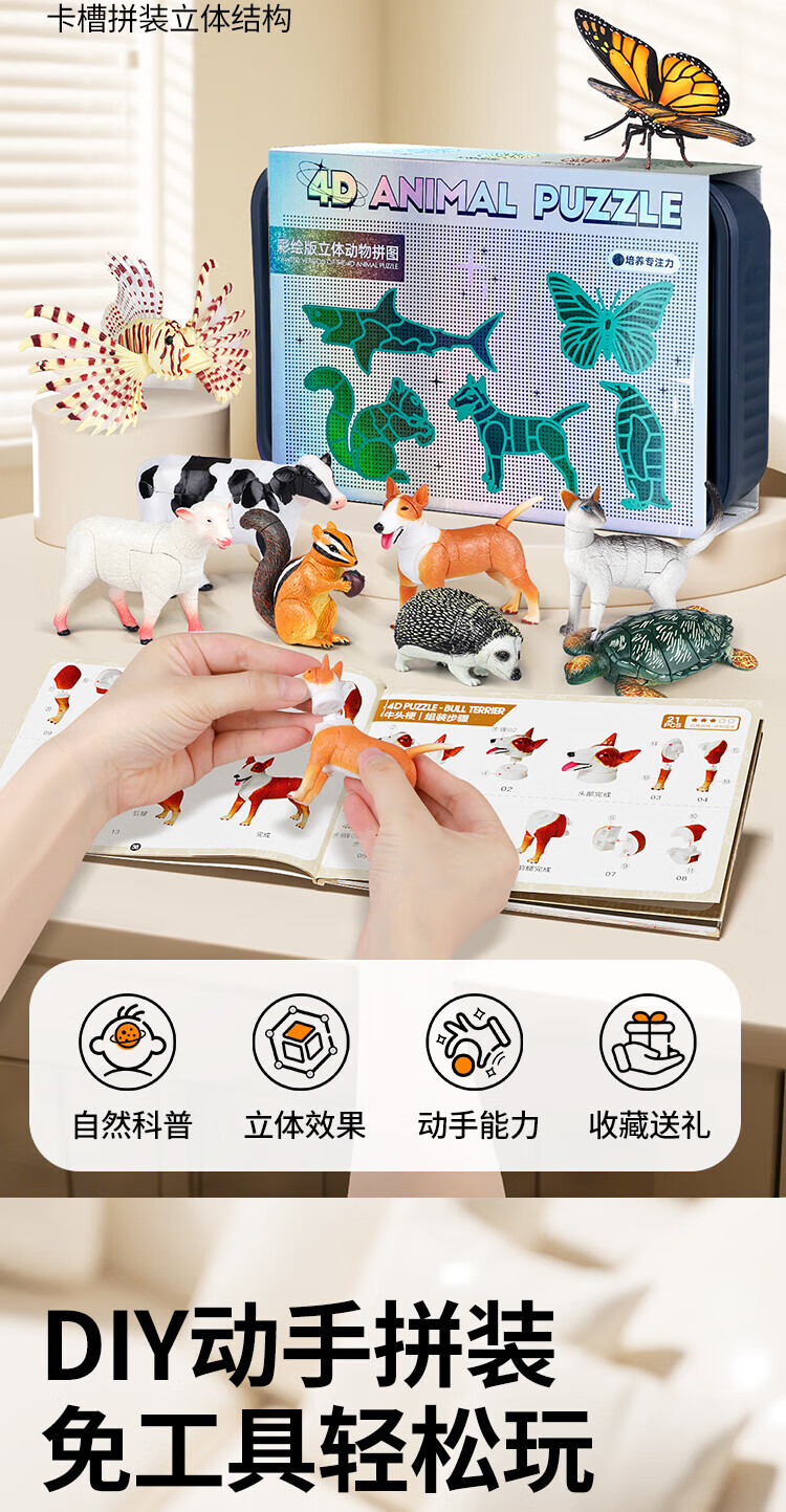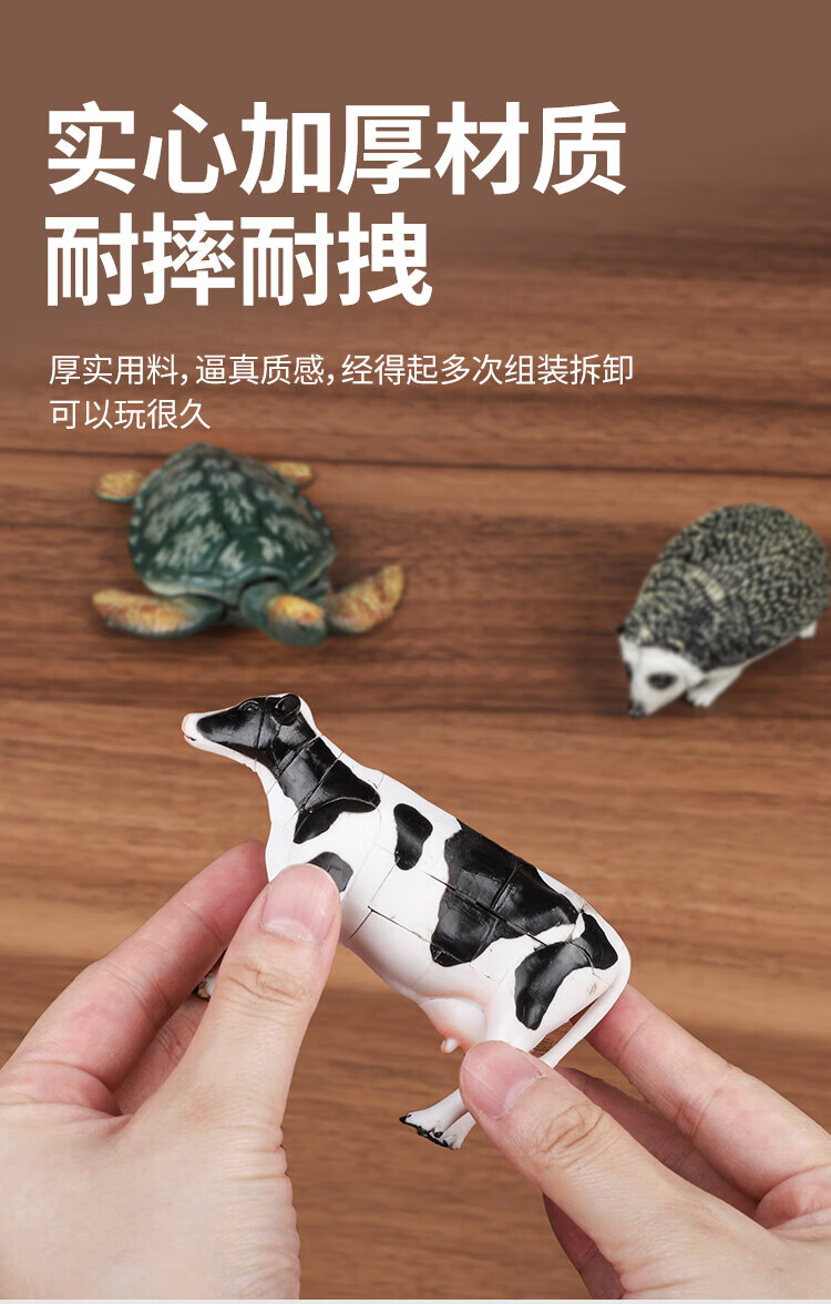 纽奇动物模型玩具diy拼插立体拼图儿童早教益智高级认知生日礼物盒