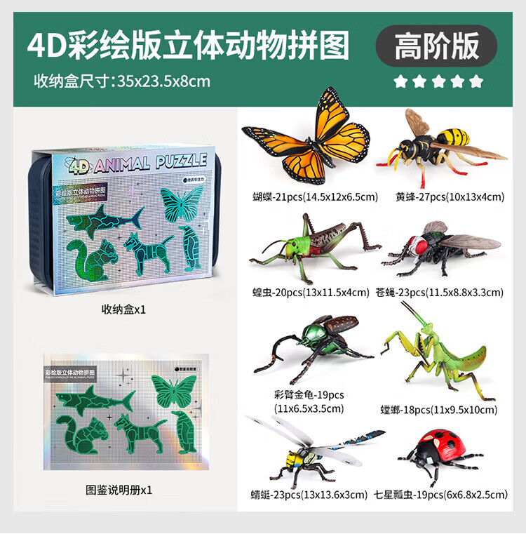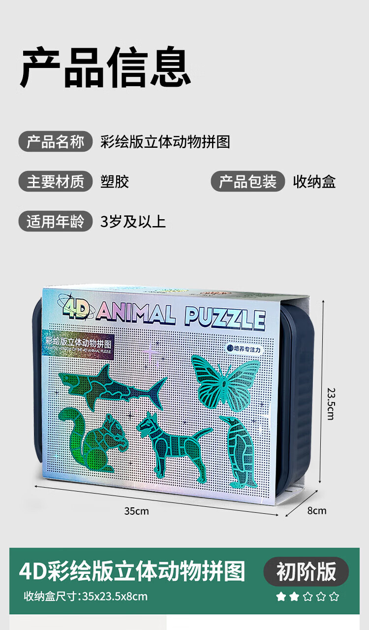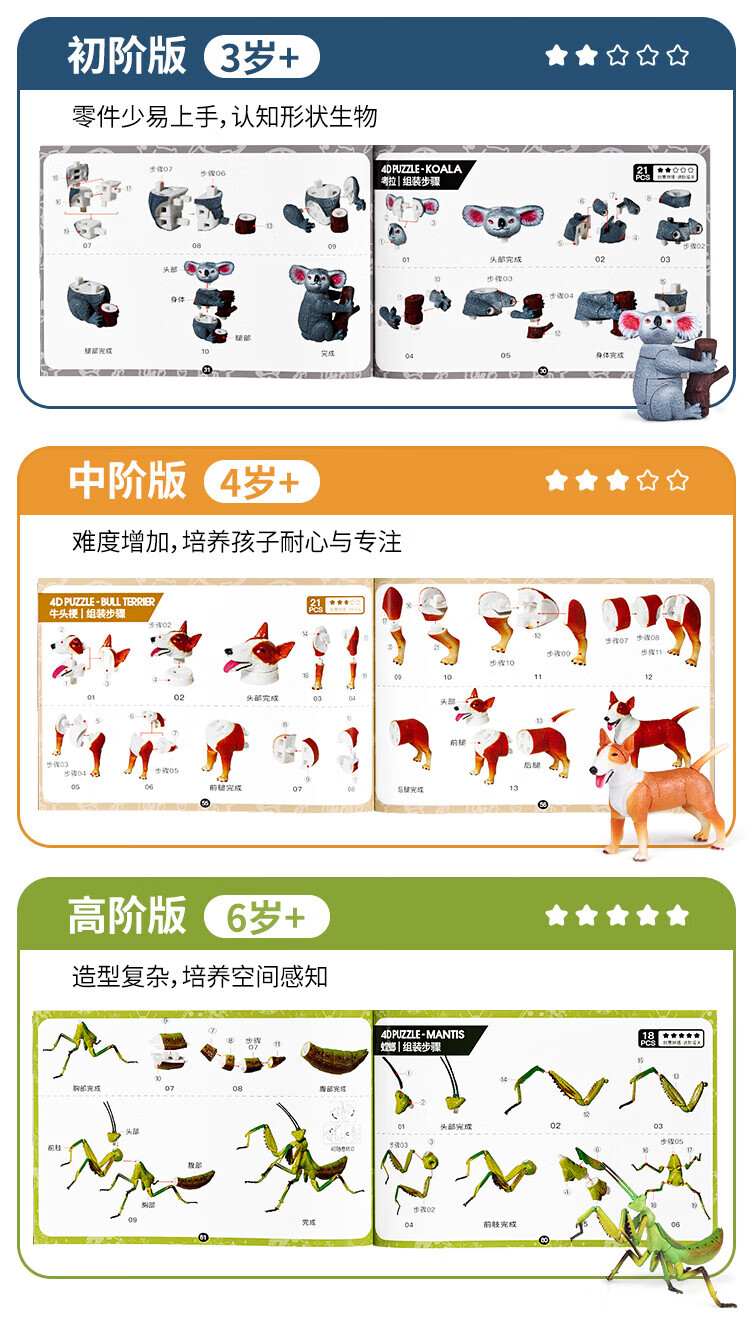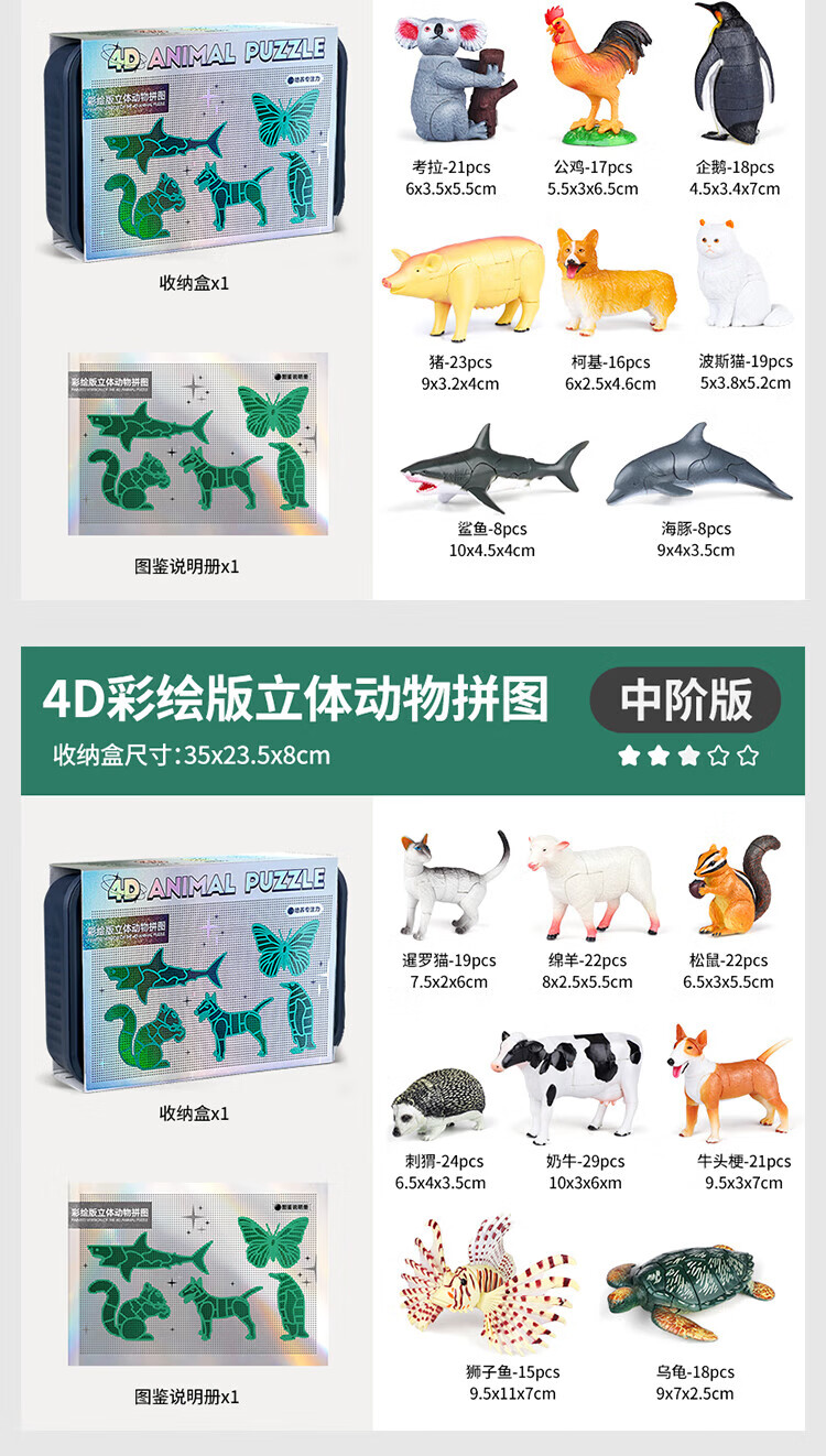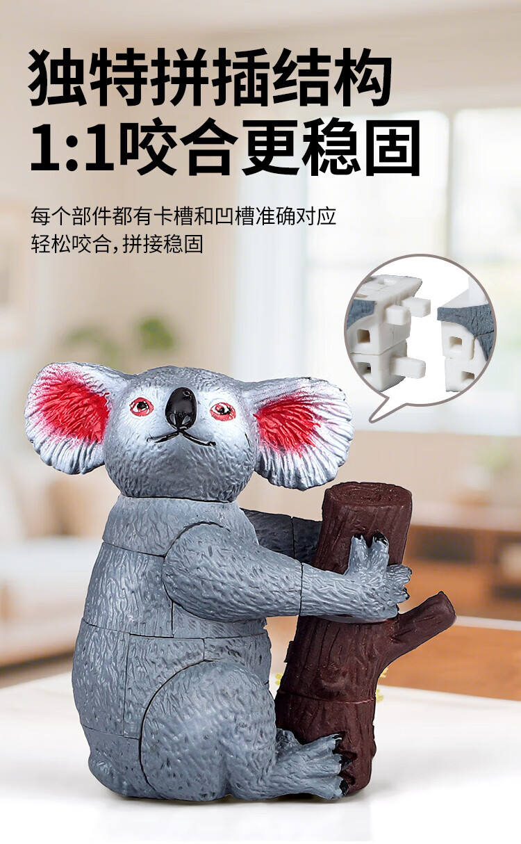 纽奇动物模型玩具diy拼插立体拼图儿童早教益智高级认知生日礼物盒
