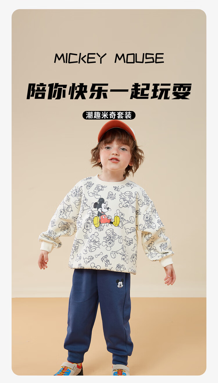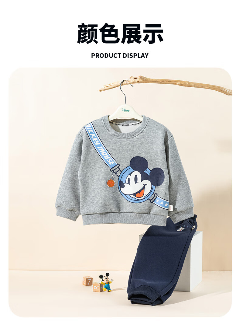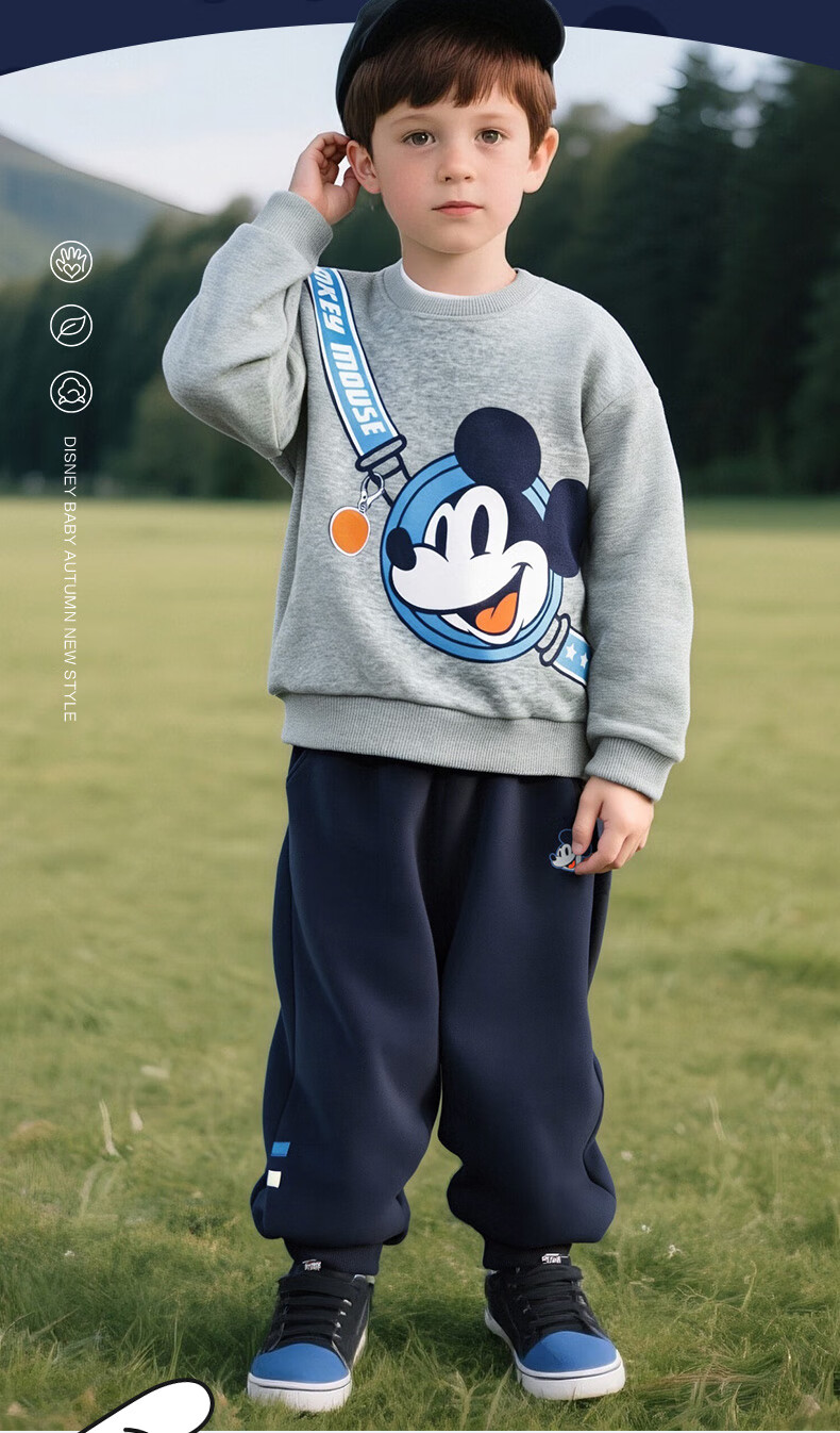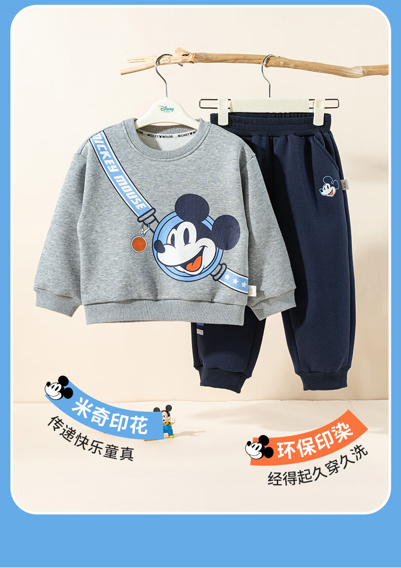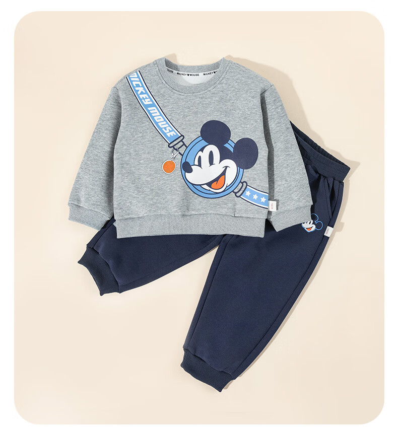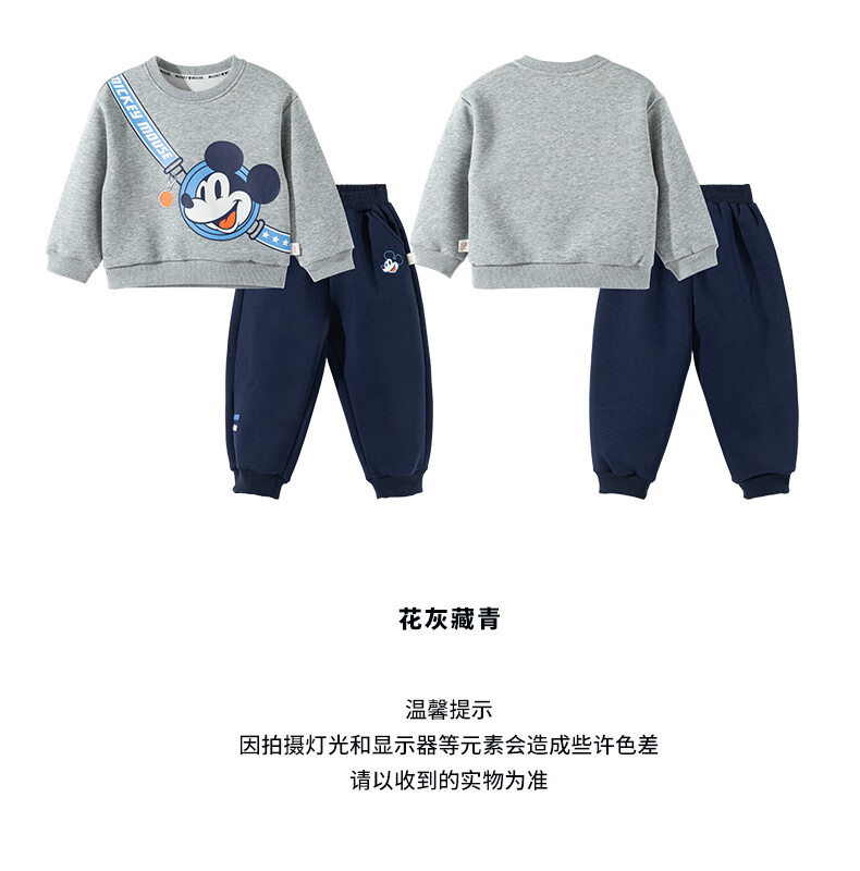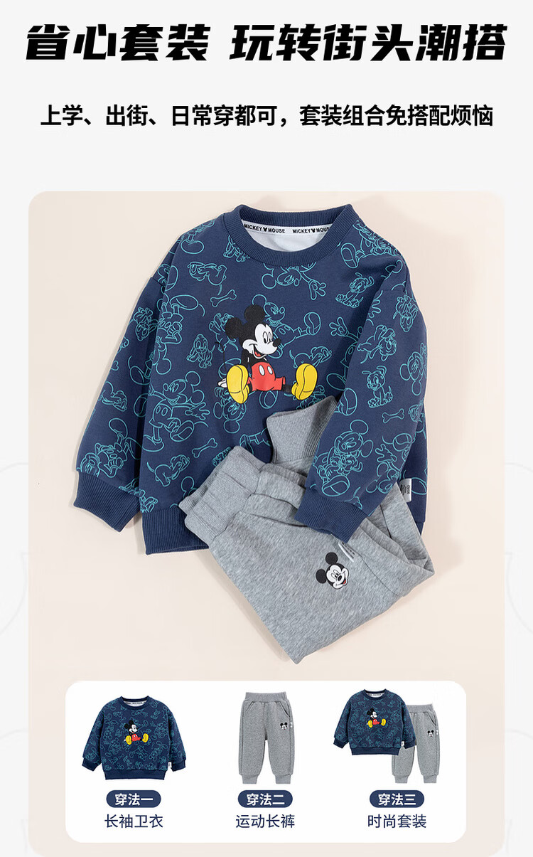 迪士尼秋季童装男童米奇卡通卫衣套装时尚休闲保暖百搭套装 藏青 100