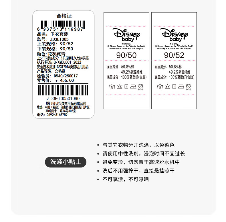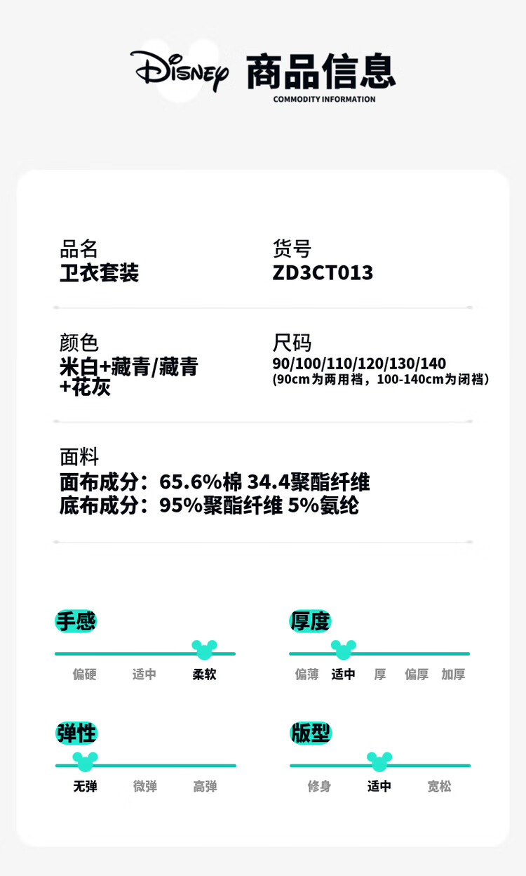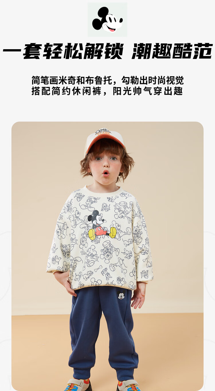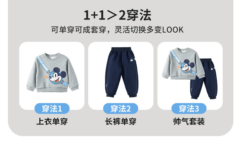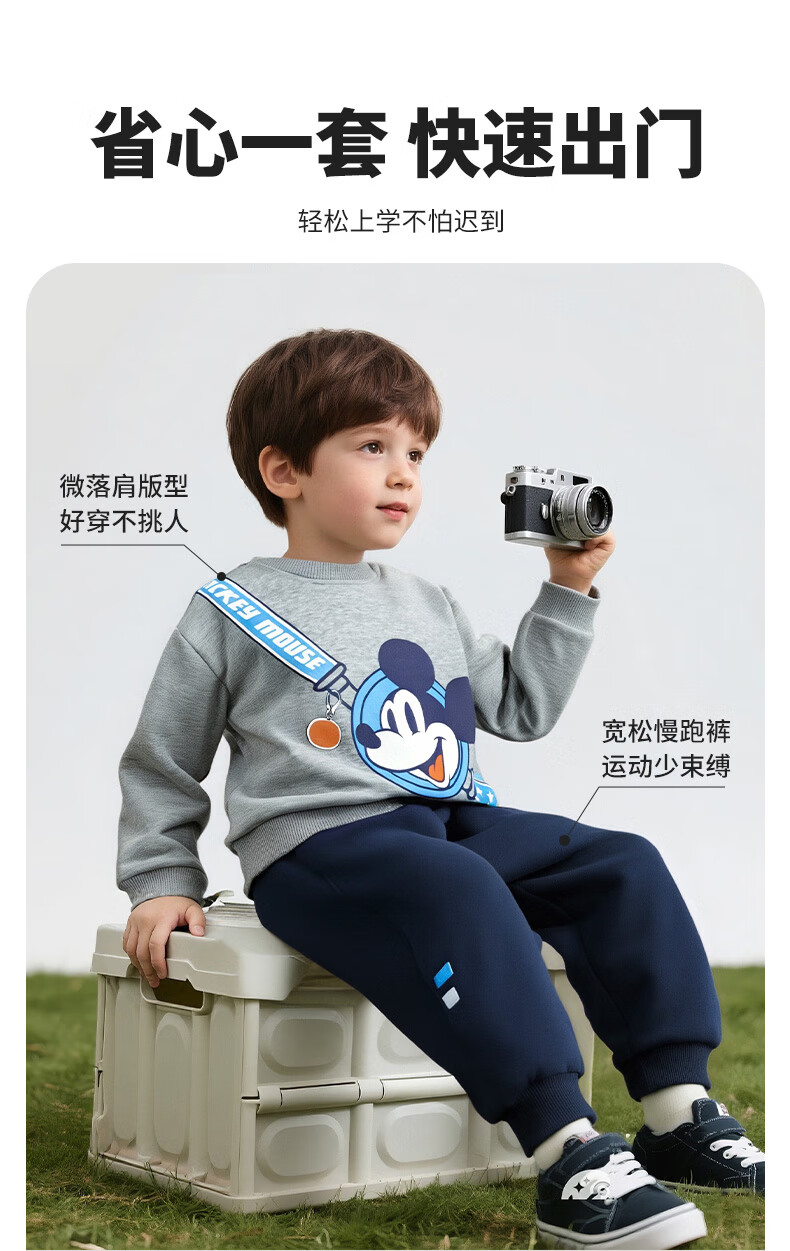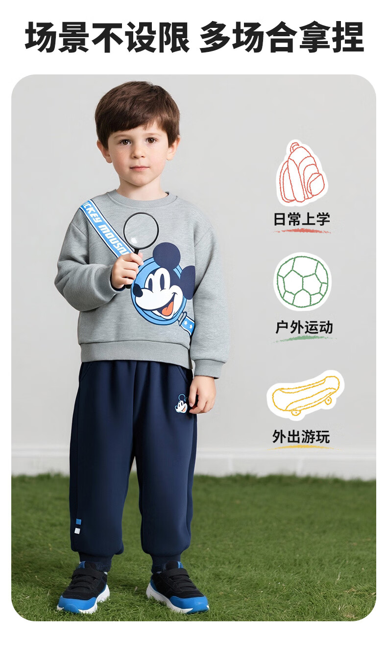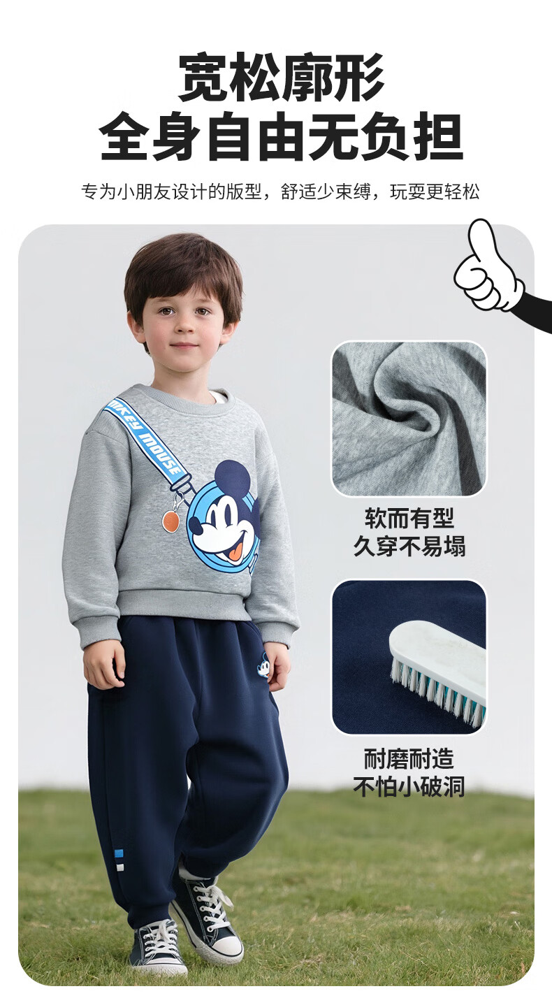 迪士尼秋季童装男童米奇卡通卫衣套装时尚休闲保暖百搭套装 藏青 100