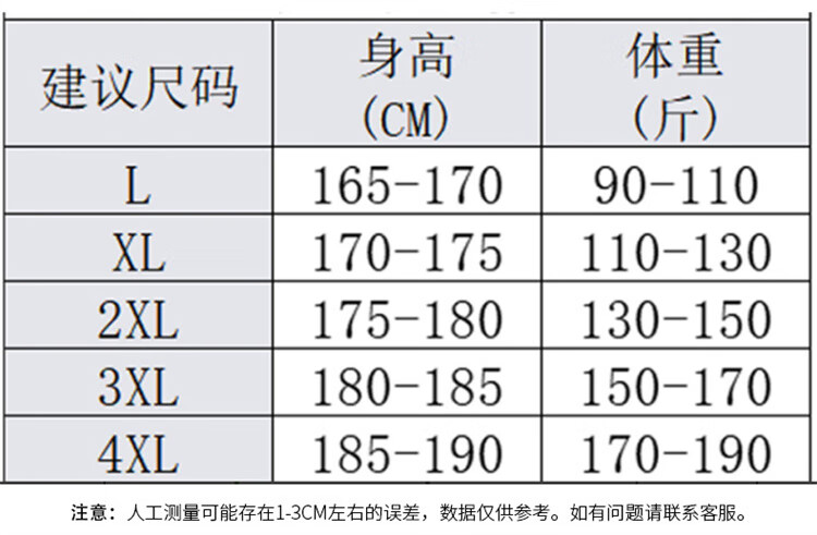 China (cm) 165 / 88-90 170 / 96-98 175 / 108-110 180 / 118-122 185 / 126-130