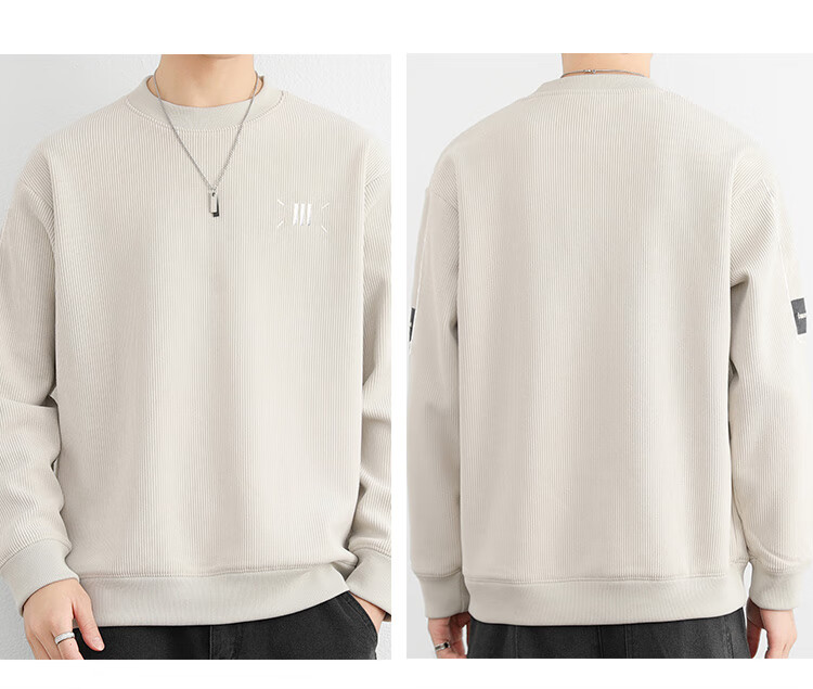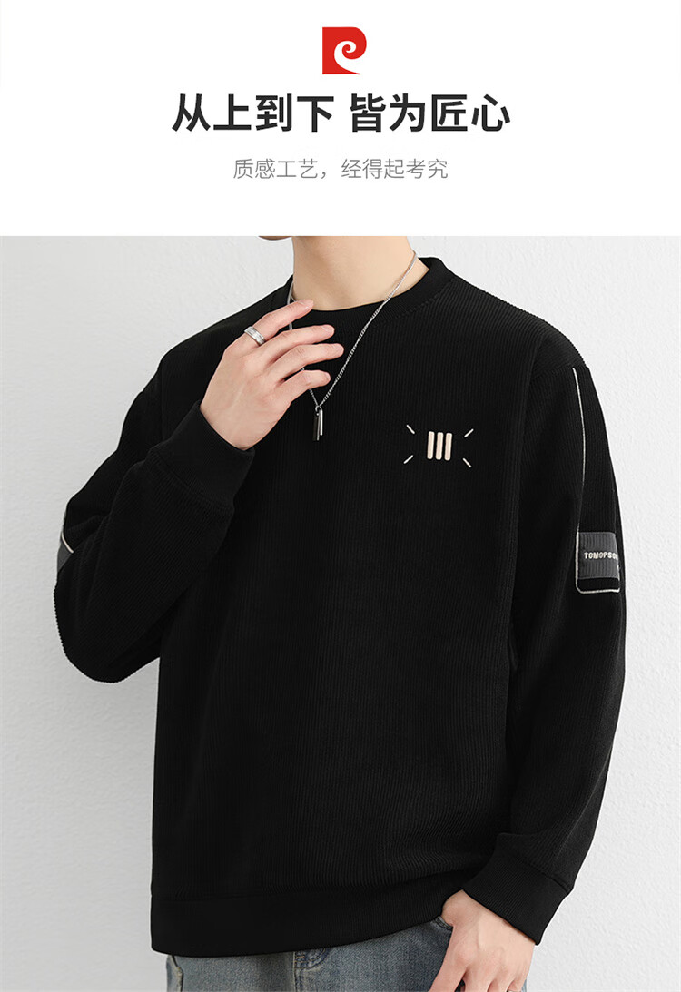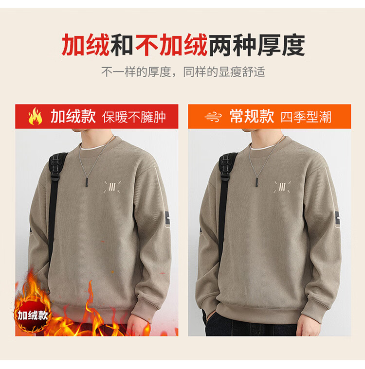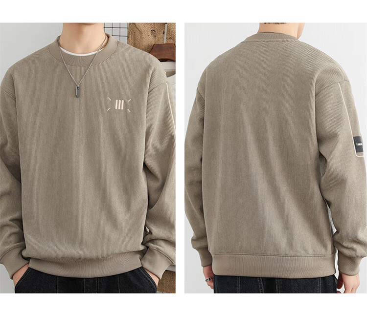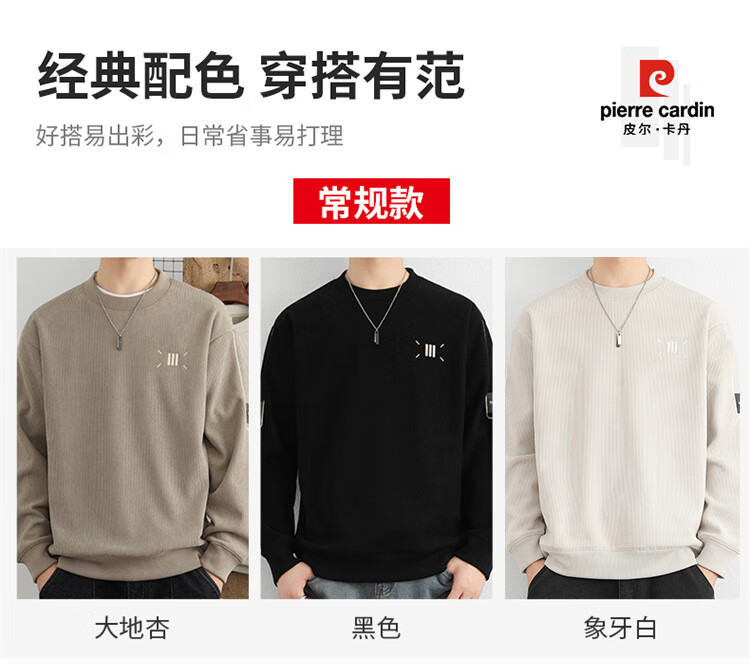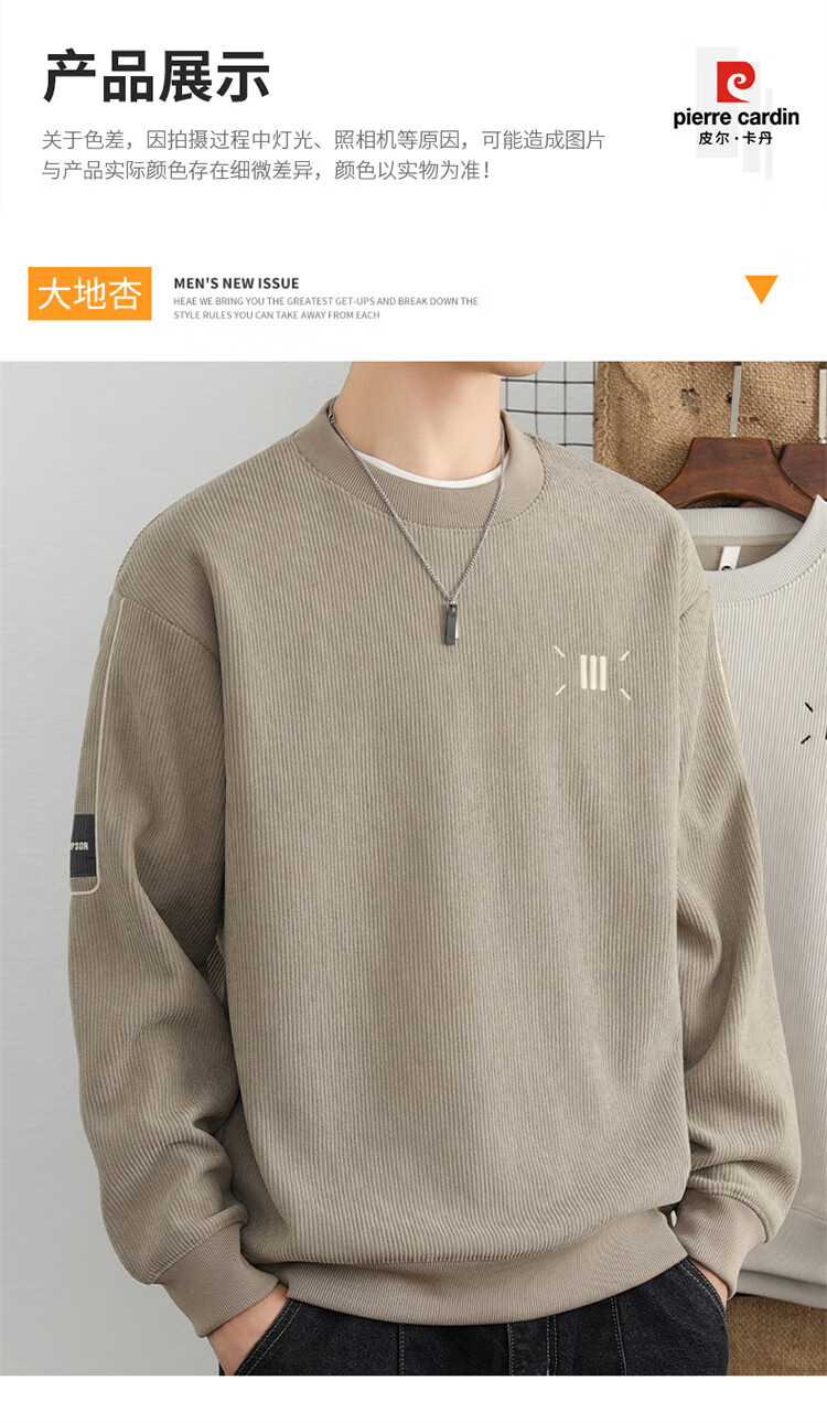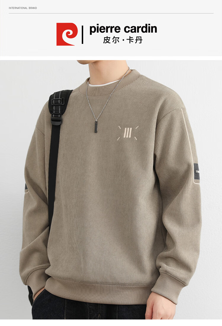 Pierre Cardin sweatshirt men's spring, autumn and winter Korean style trendy loose round neck long-sleeved T-shirt men's tops Dadi Apricot XL