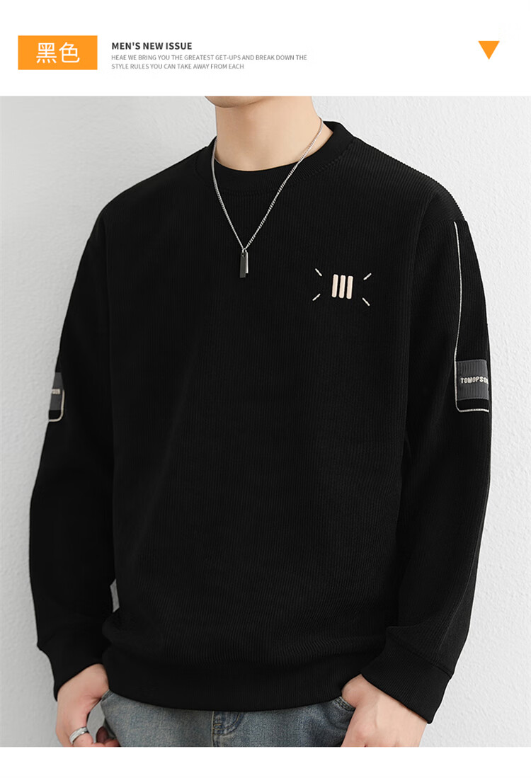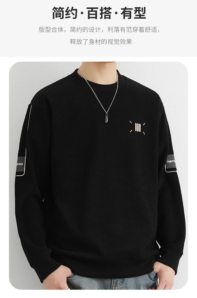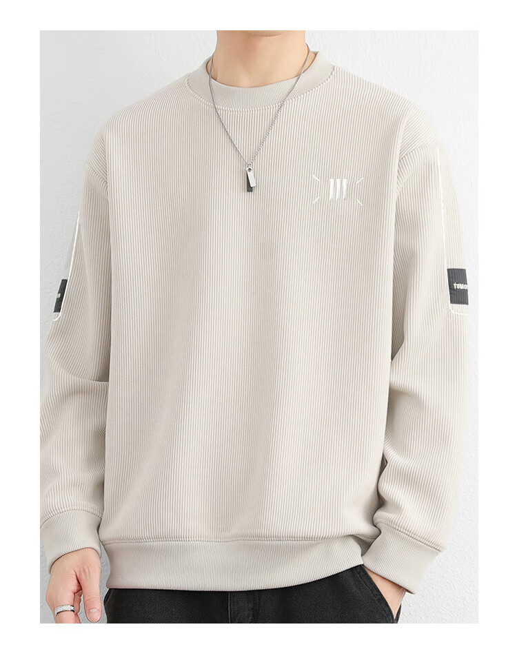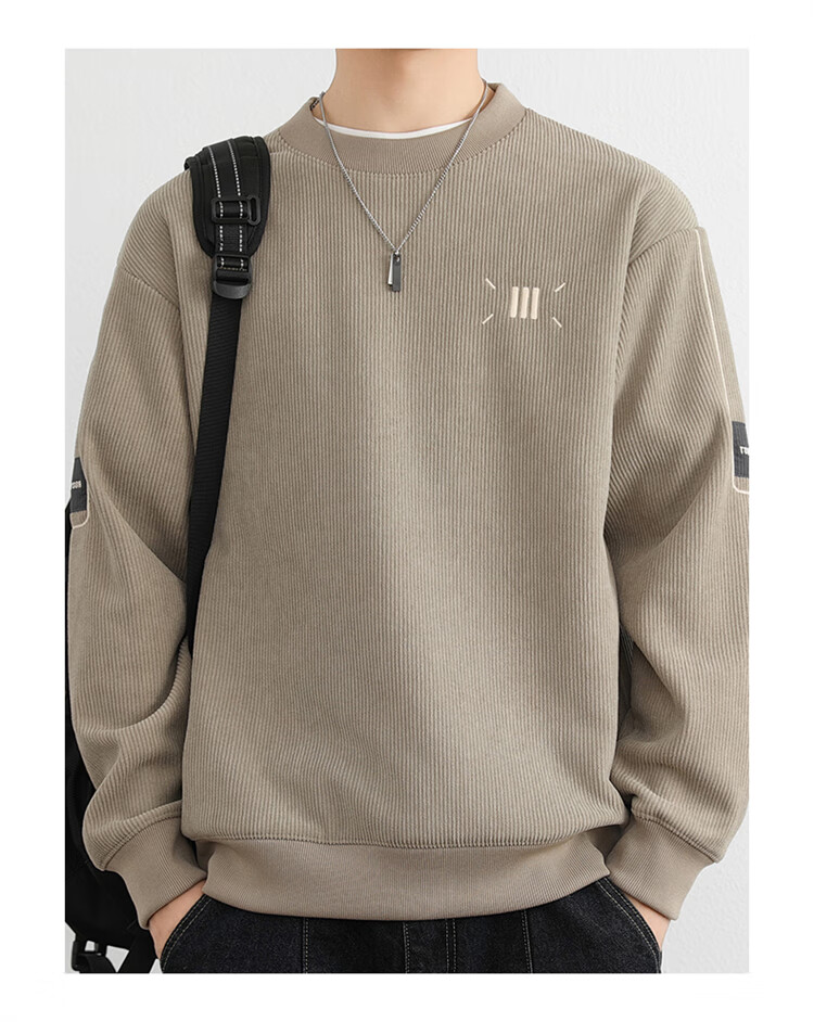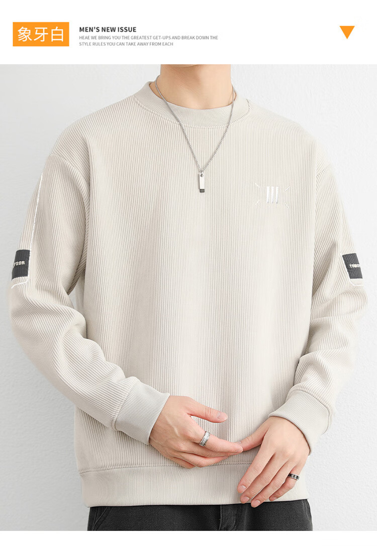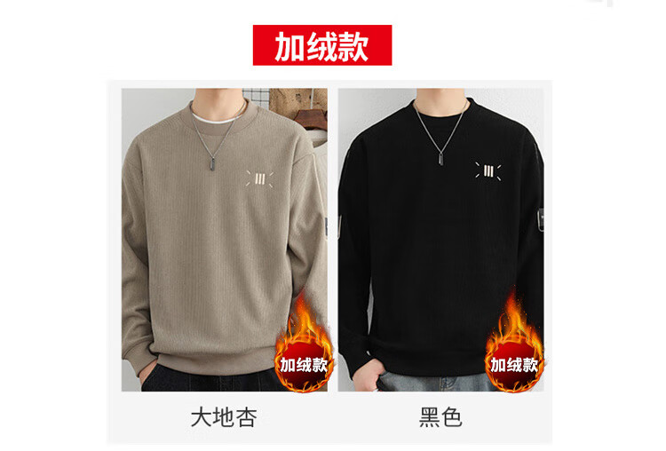 Pierre Cardin sweatshirt men's spring, autumn and winter Korean style trendy loose round neck long-sleeved T-shirt men's tops Dadi Apricot XL