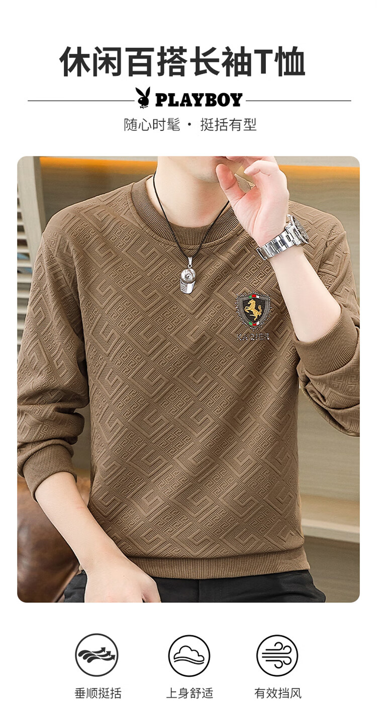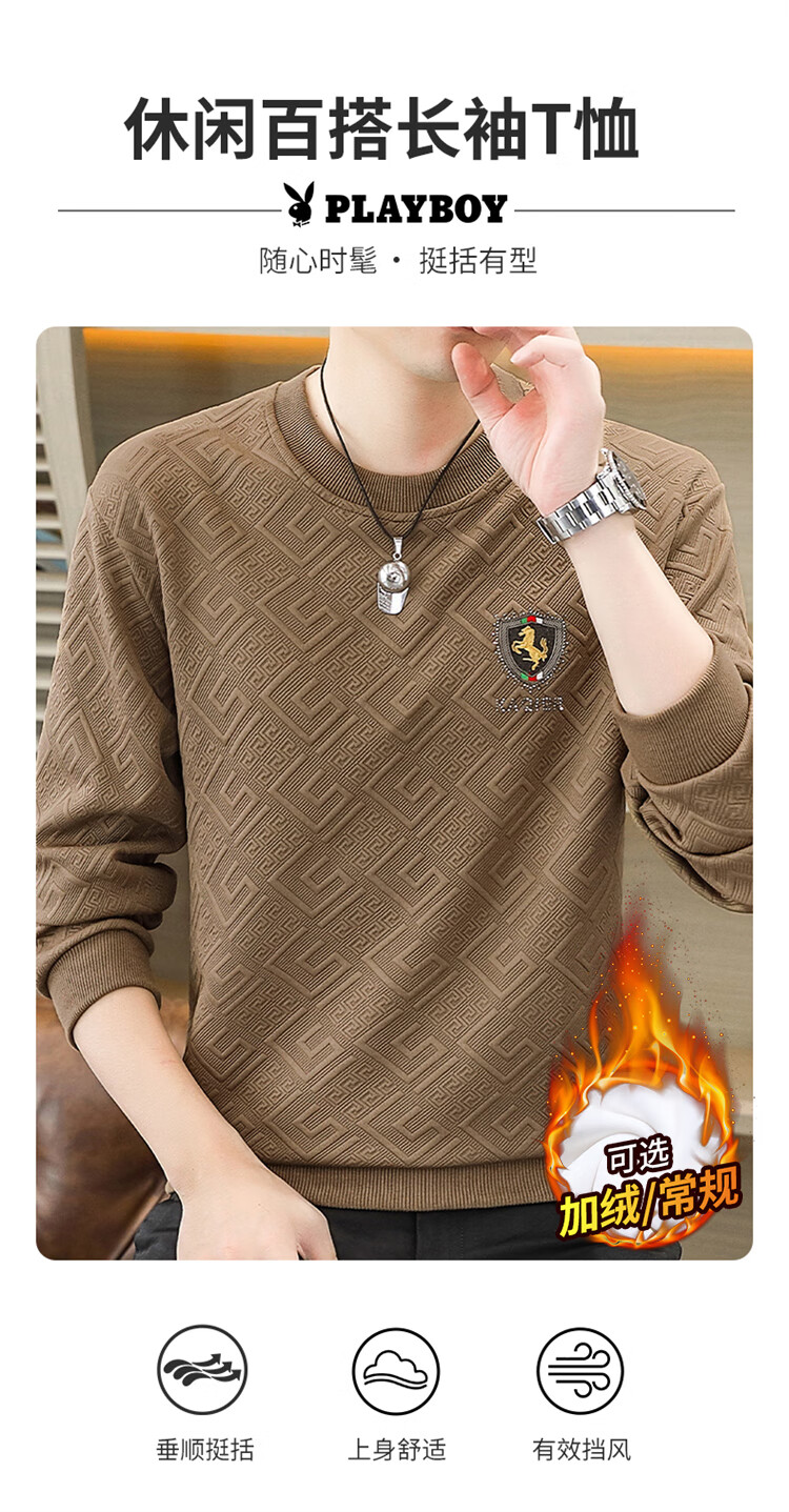 Playboy (PLAYBOY) sweatshirt men's jacket men's autumn and winter men's long-sleeved T-shirt trendy sports bottoming shirt round neck casual top