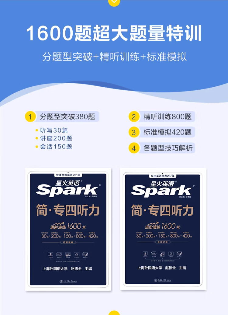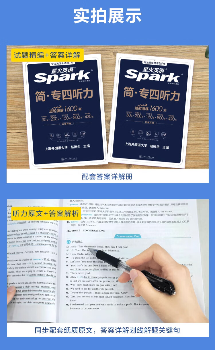 正版 星火专四听力 2026星火英语专业四级听力1600题 搭专4阅读完形语法与词汇单词专项训练全套