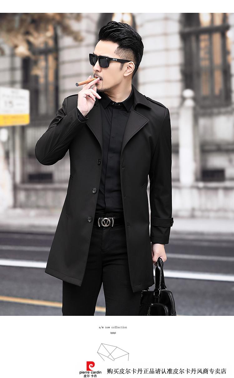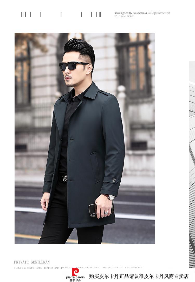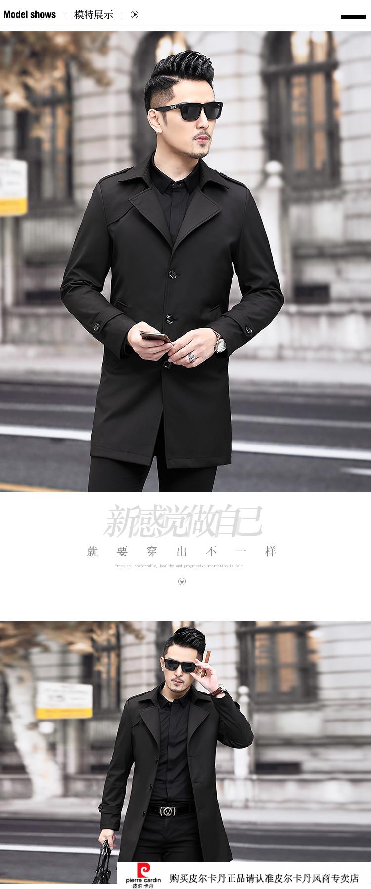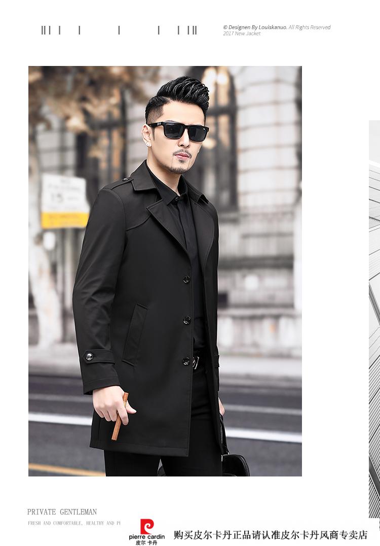 Pierre Cardin Herren-Windbreaker mit Revers, mittellang, für Herren, 2021, Frühjahr, neues mittleres Alter, große Größe, Business-Casual, Frühling und Herbst, britische Strickjacke, Schwarz, 170/M