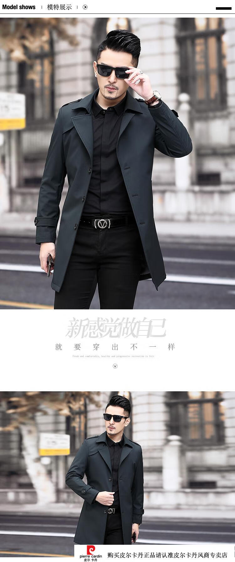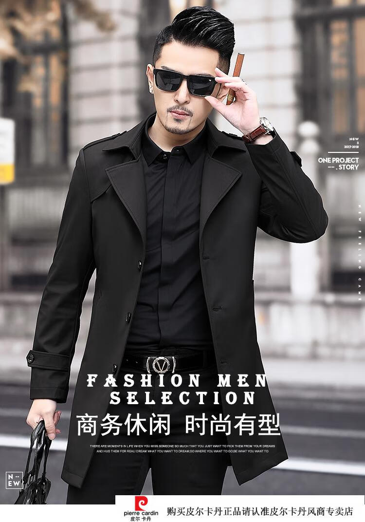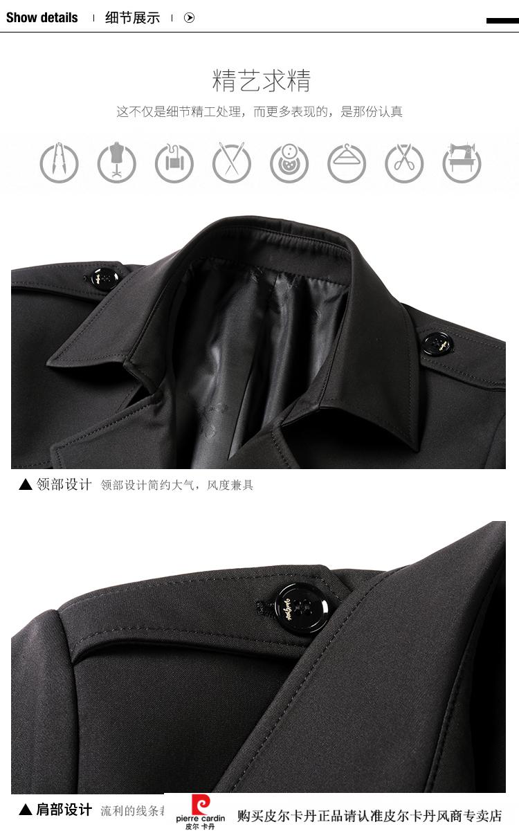 Pierre Cardin Herren-Windbreaker mit Revers, mittellang, für Herren, 2021, Frühjahr, neues mittleres Alter, große Größe, Business-Casual, Frühling und Herbst, britische Strickjacke, Schwarz, 170/M