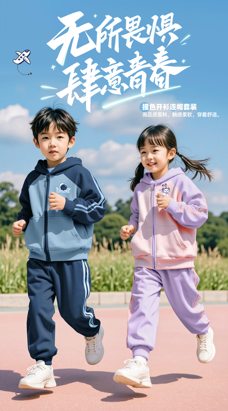 马卡乐(MARCOLOR)女童秋季套装2025新款连帽撞色女大童开衫洋气女孩衣服儿童秋装女