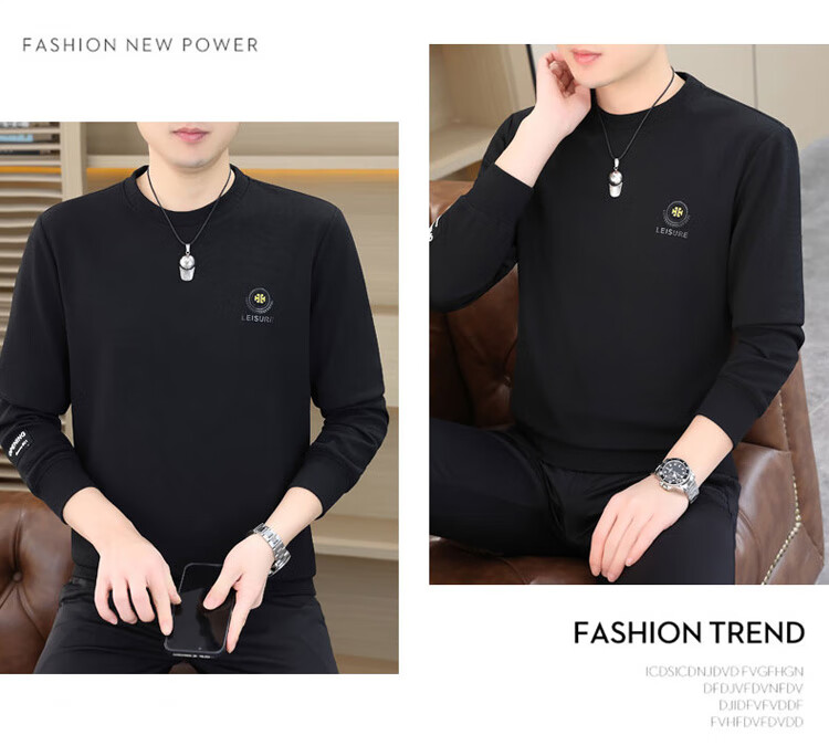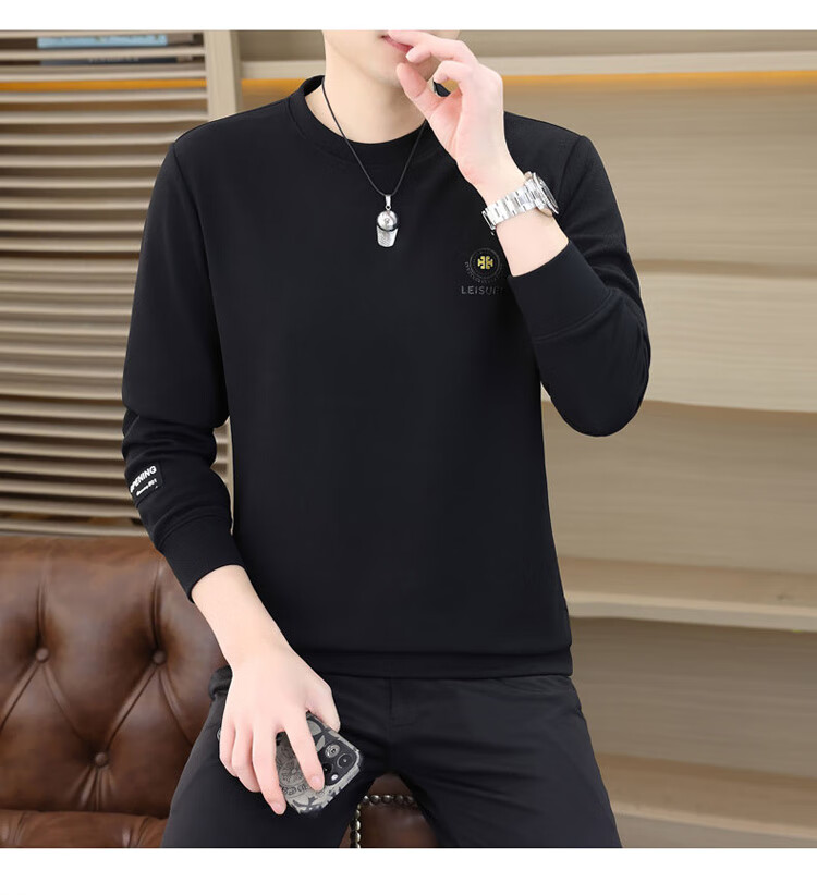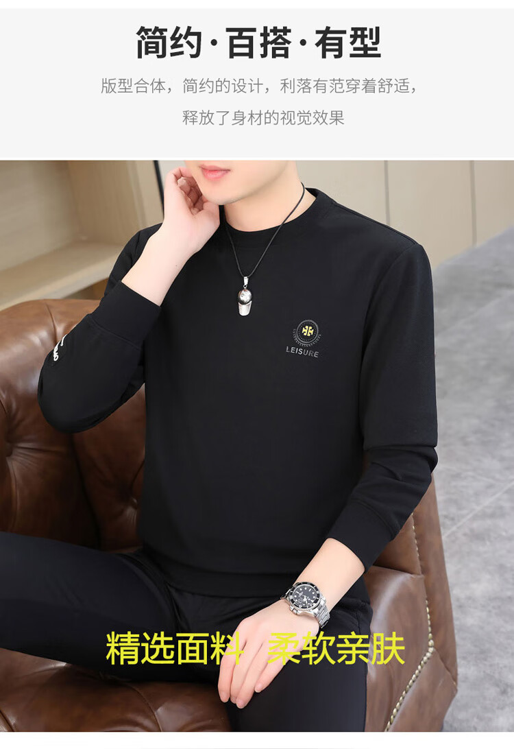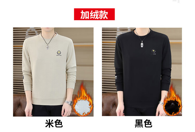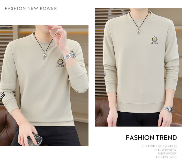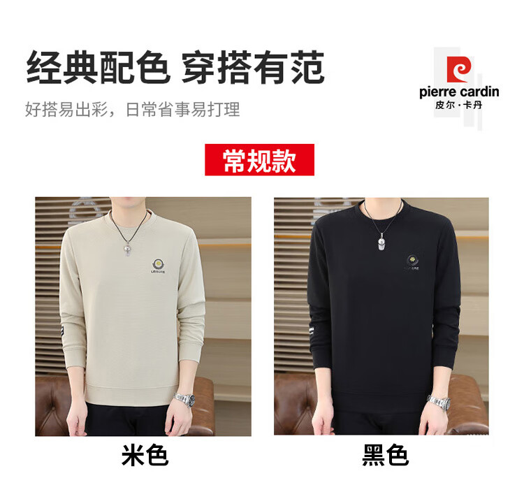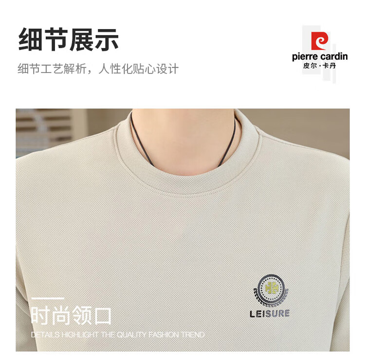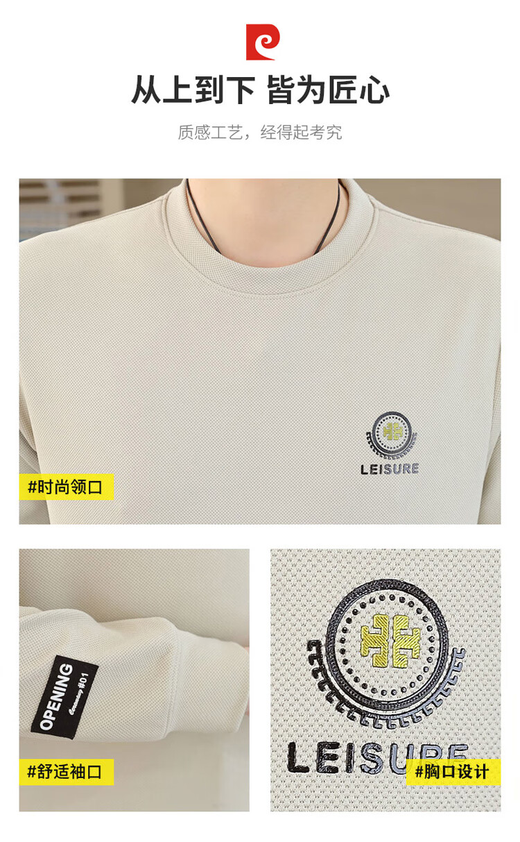 皮尔卡丹(pierre cardin)圆领卫衣男春秋冬季潮流休闲长袖t恤高端打底衫男装 米色 XL
