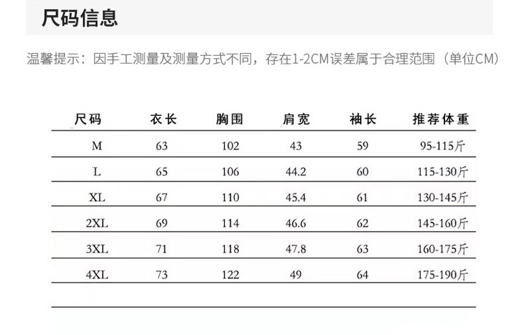 Size (cm) 42 44 46 48 50