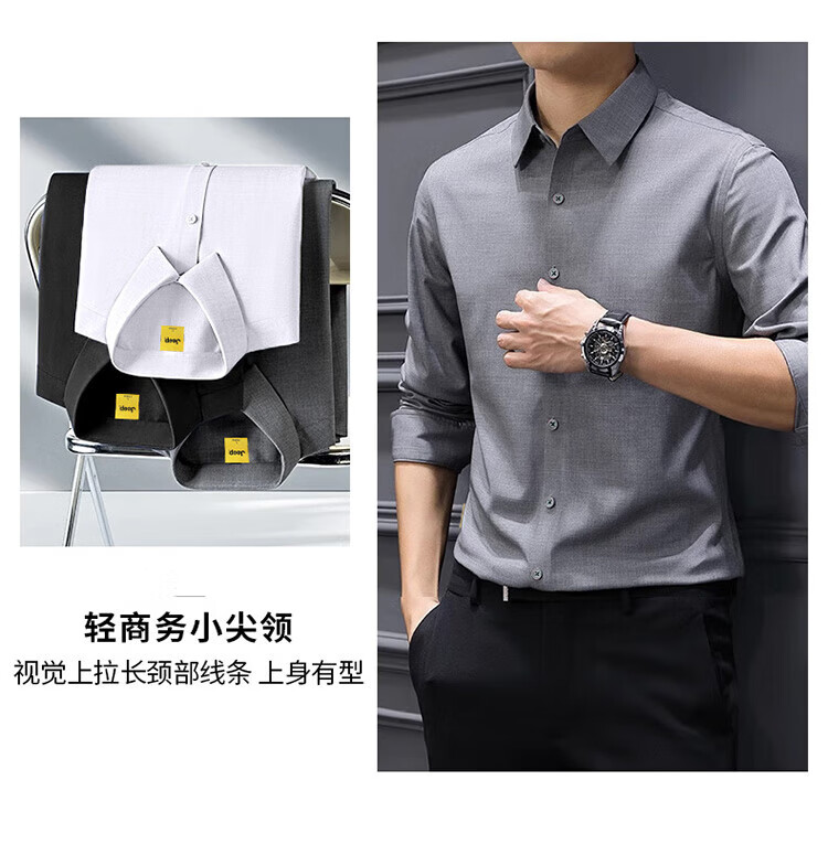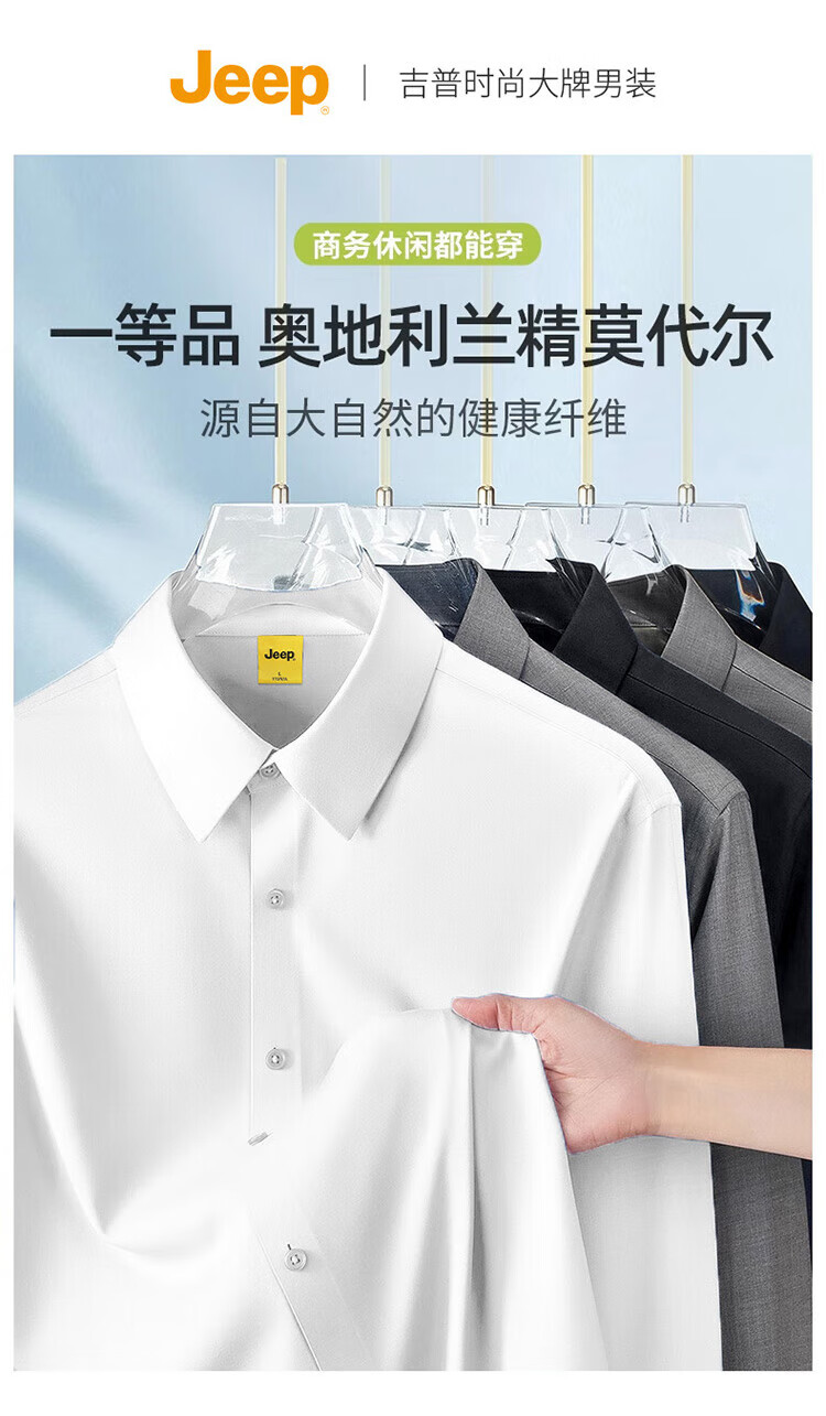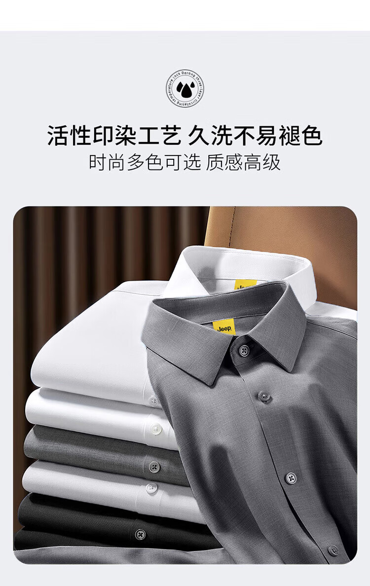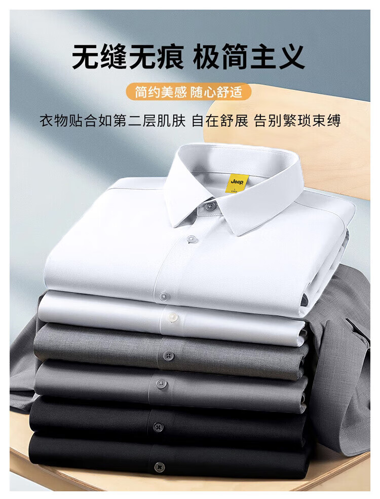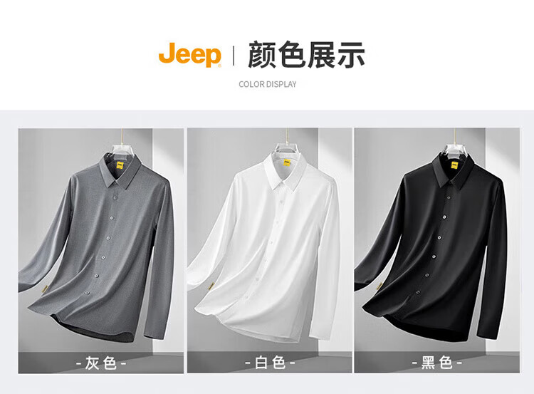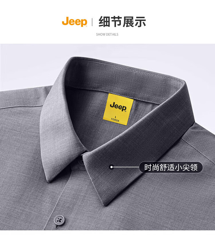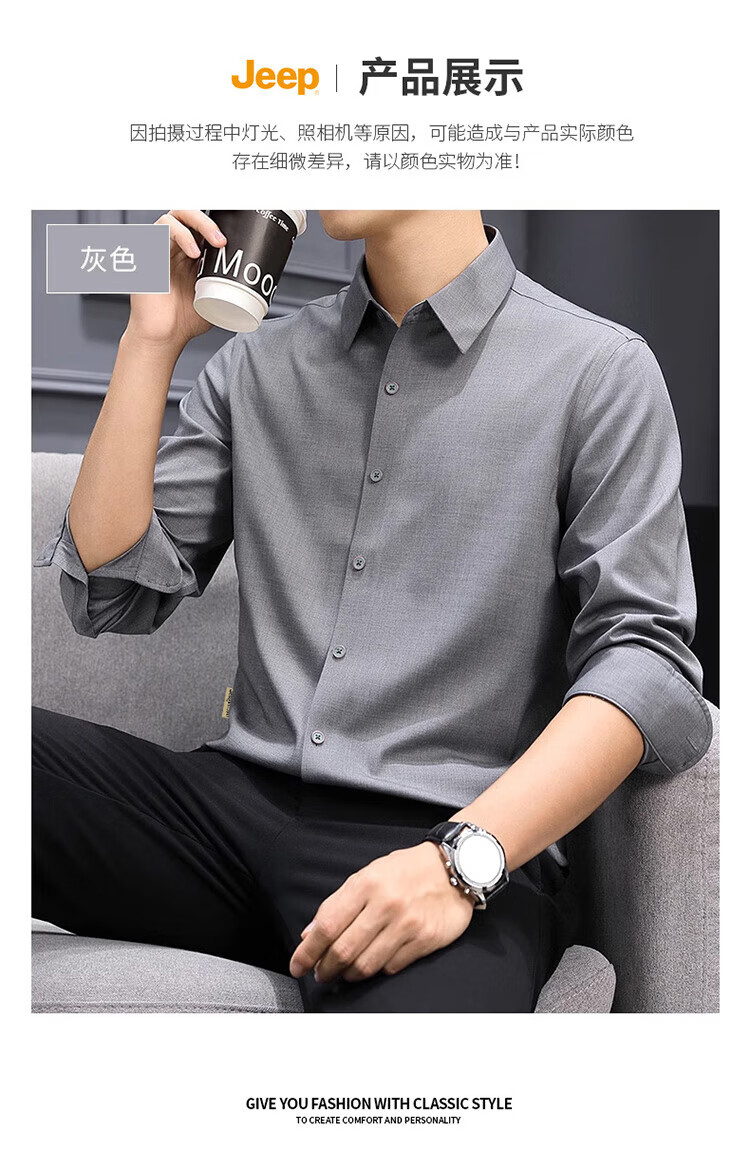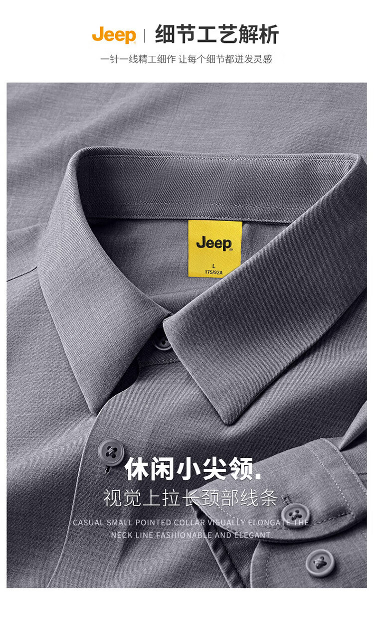 JEEP吉普长袖衬衫男秋冬季商务休闲衬衣男士宽松上衣服男装 灰色 2XL
