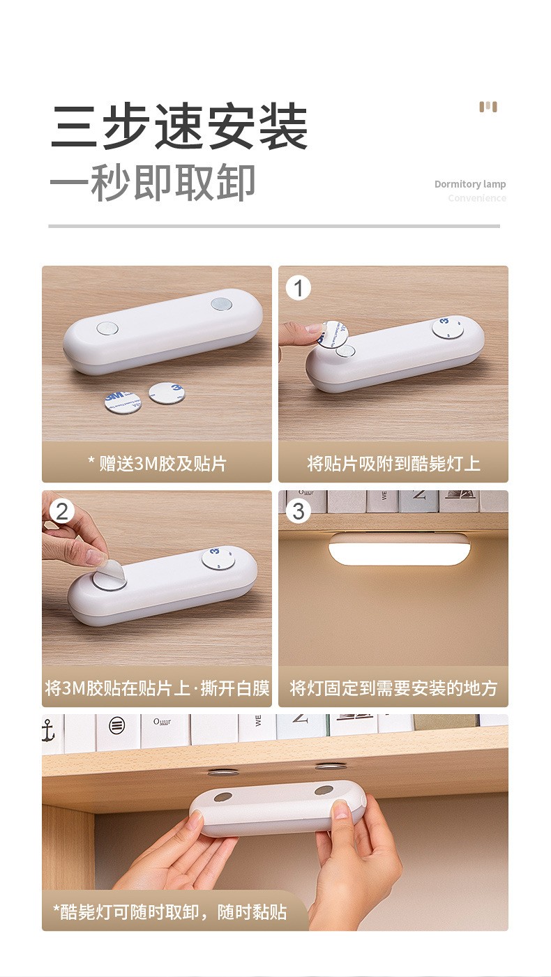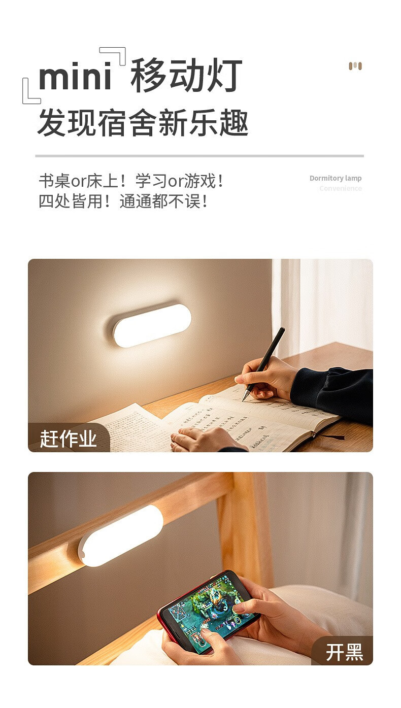 梓宇 led宿舍灯磁铁可吸附usb充电酷毙灯学生学习可调光书桌灯卧室床头灯上下铺夜读灯无线便携小夜灯 【1个单磁吸款充电灯】触摸无极调光自然光款+充电头