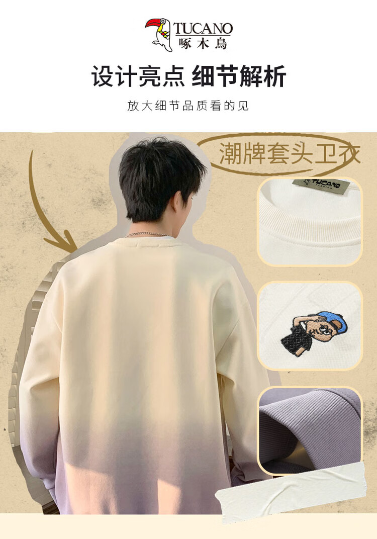 Толстовка Woodpecker (TUCANO), мужская футболка с длинными рукавами, мужская осенне-зимняя рубашка с градиентным низом, топ с круглым вырезом, мужской бежевый 2XL