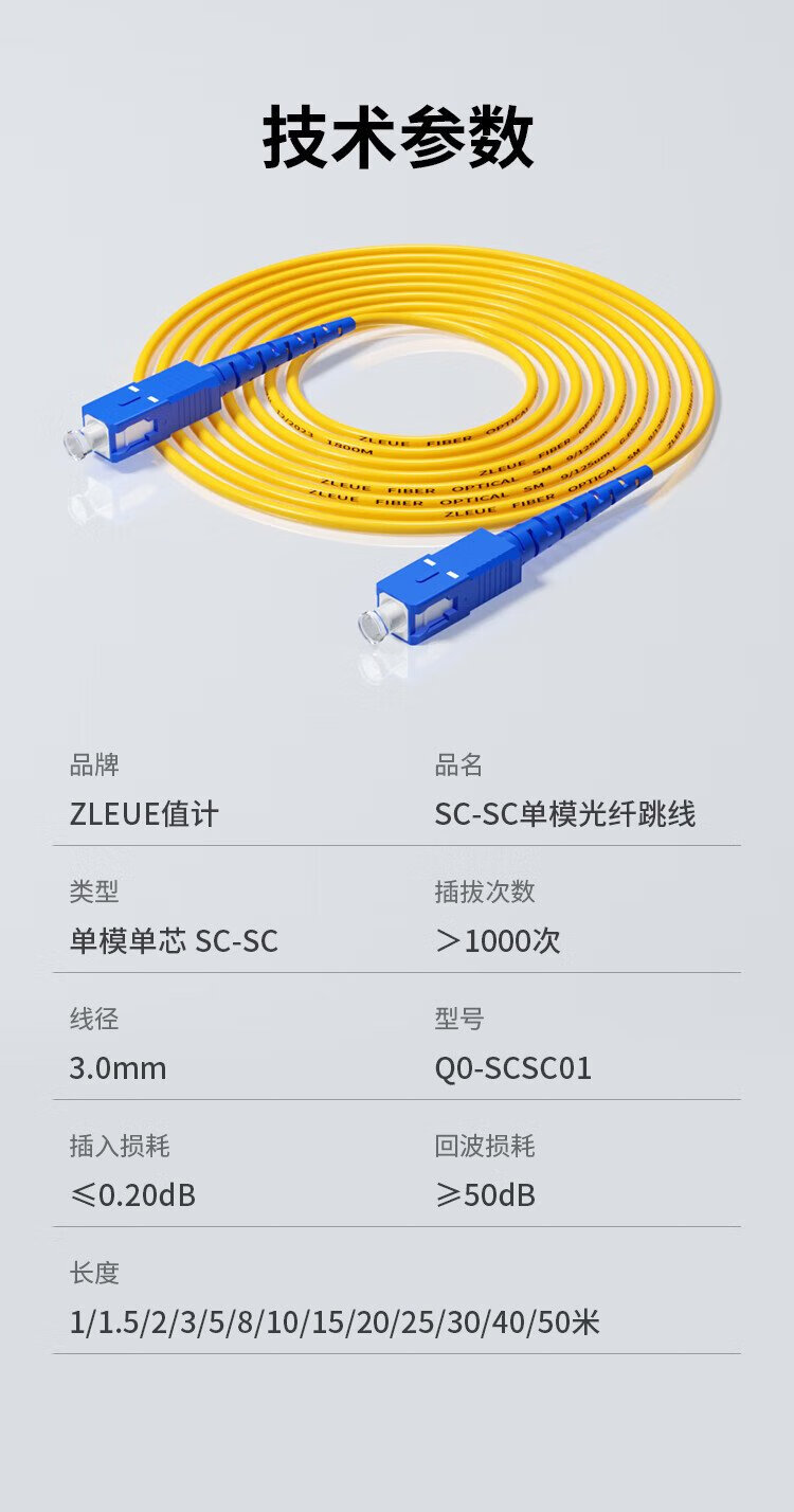 值计光纤跳线 工程电信级SC-SC(UPC) 单模单芯 低烟无卤环保入户光纤线 收发器尾纤 1米 Q0-SCSC01
