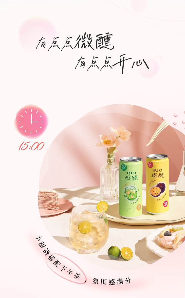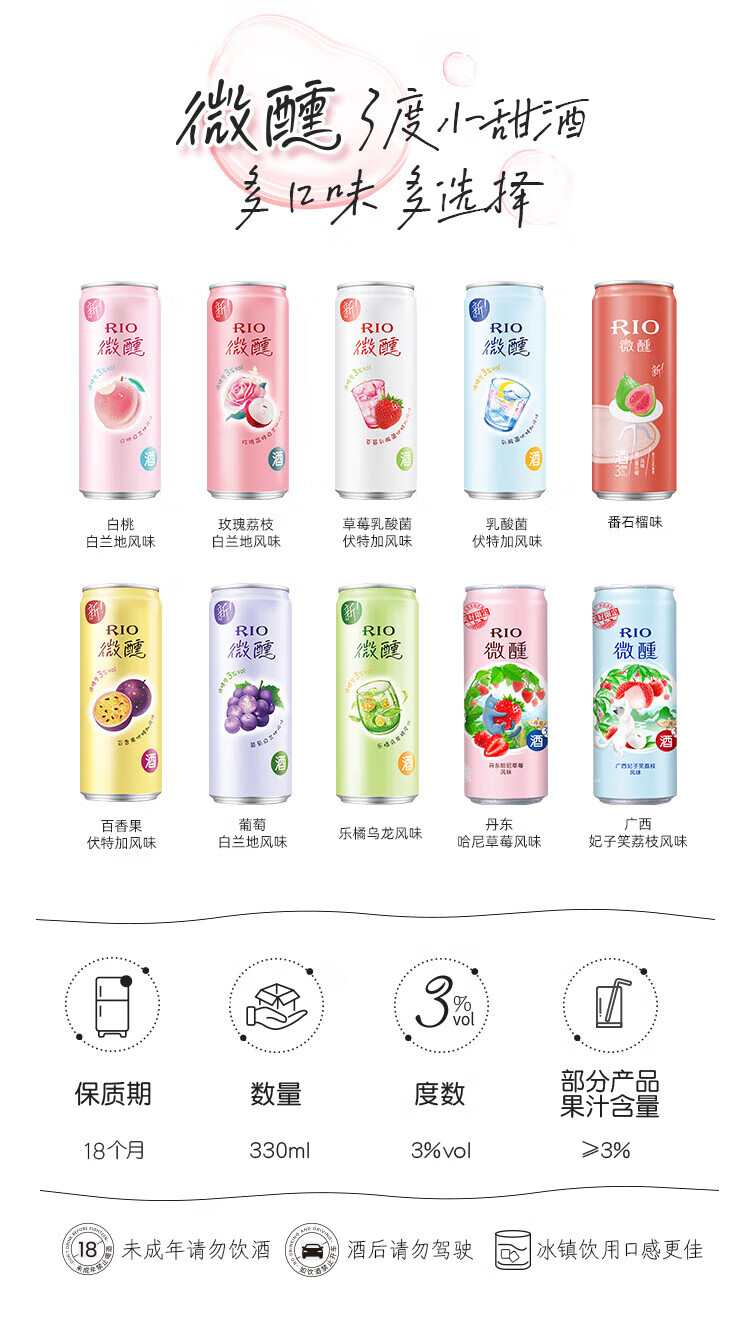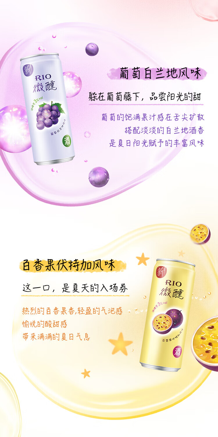 锐澳(RIO)洋酒预调鸡尾酒果酒微醺系列330ml3度口味自可选限定青梅龙井中秋 葡萄白兰地*24