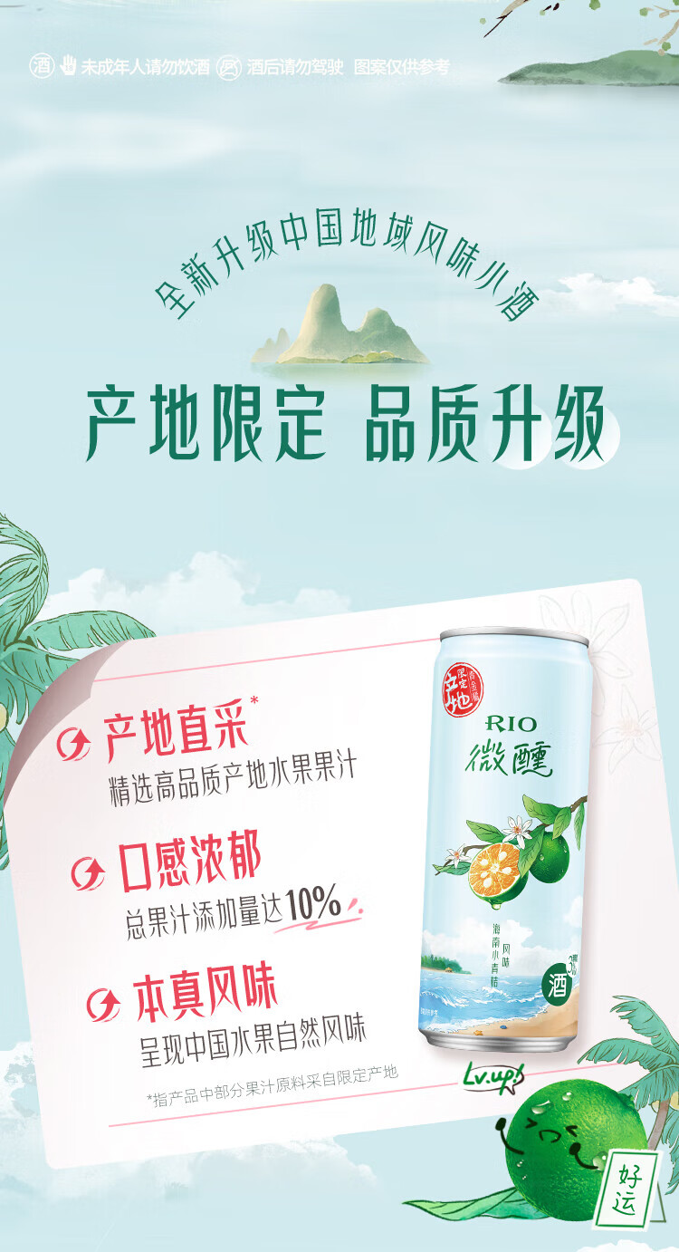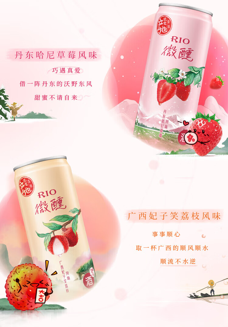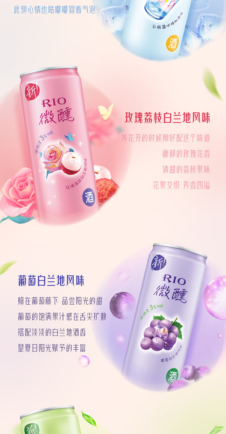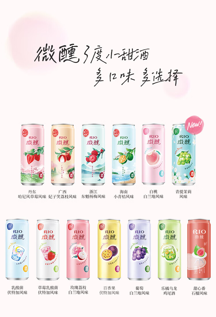 锐澳(RIO)洋酒预调鸡尾酒果酒微醺系列330ml3度口味自可选限定青梅龙井中秋 葡萄白兰地*24