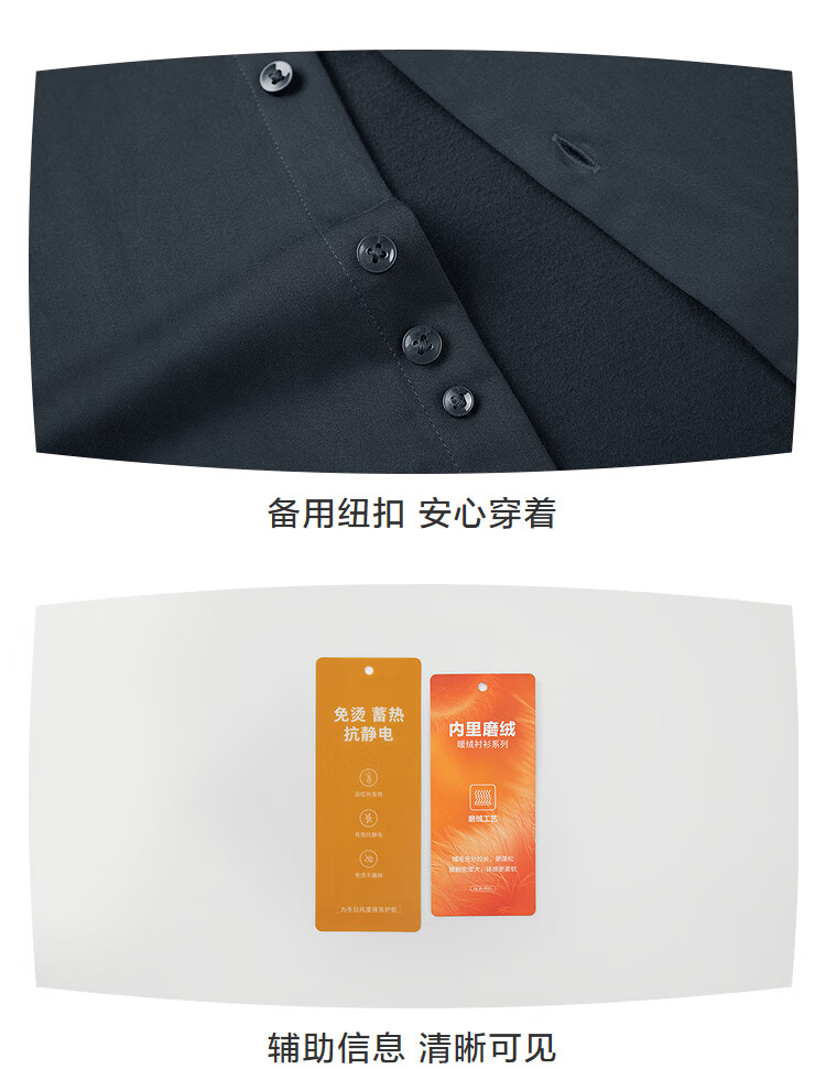 HLA海澜之家长袖衬衫男冬25磨绒保暖翻领免烫刺绣衬衣男