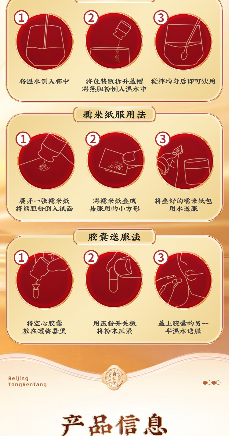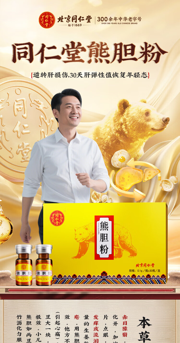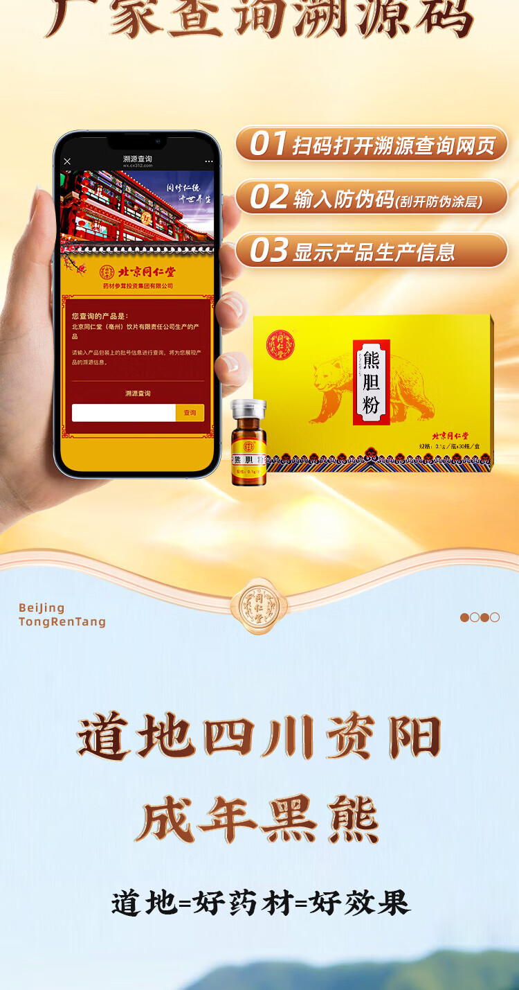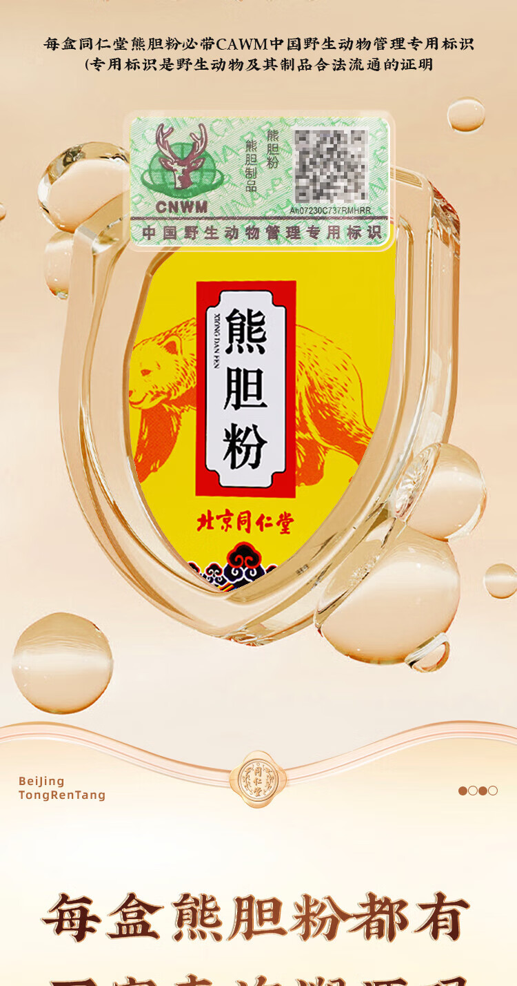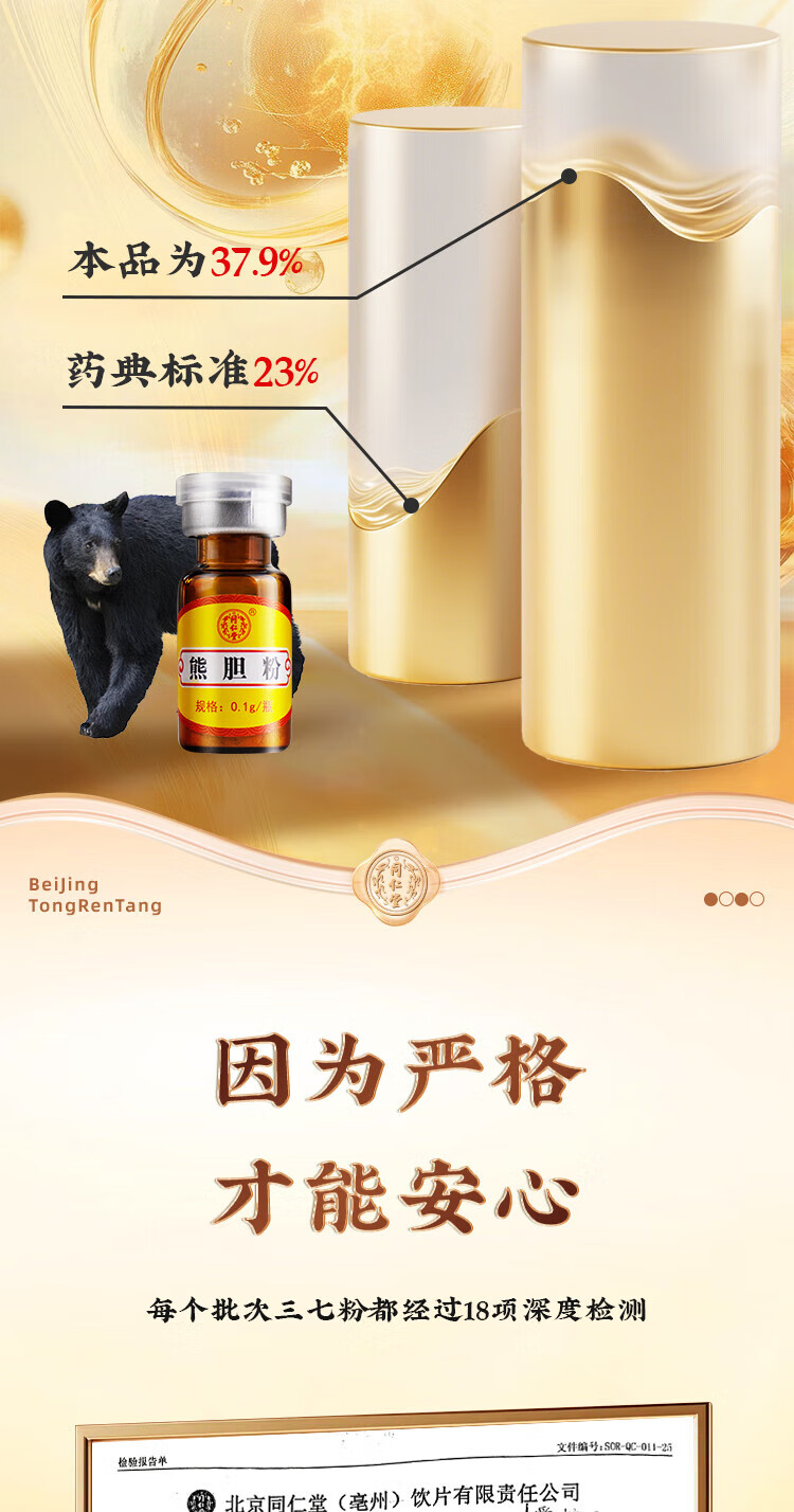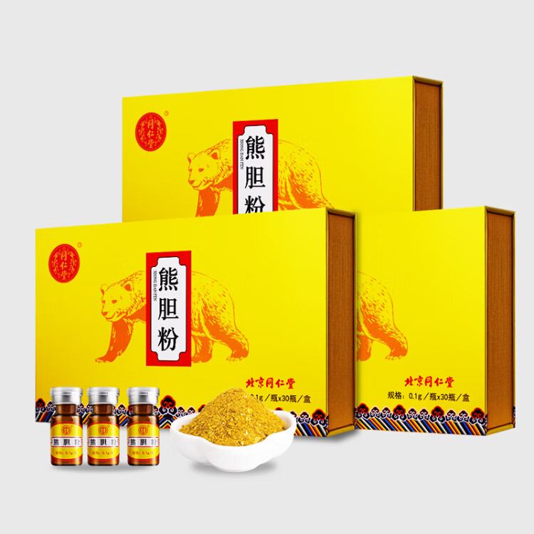 北京同仁堂自营 熊胆粉0.1g*30瓶/3盒礼盒装 金粉黑熊金胆粉精制饮片 平肝明目清热护肝 高端礼品礼物送男士