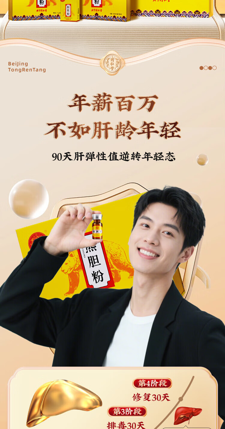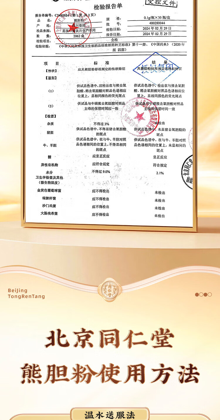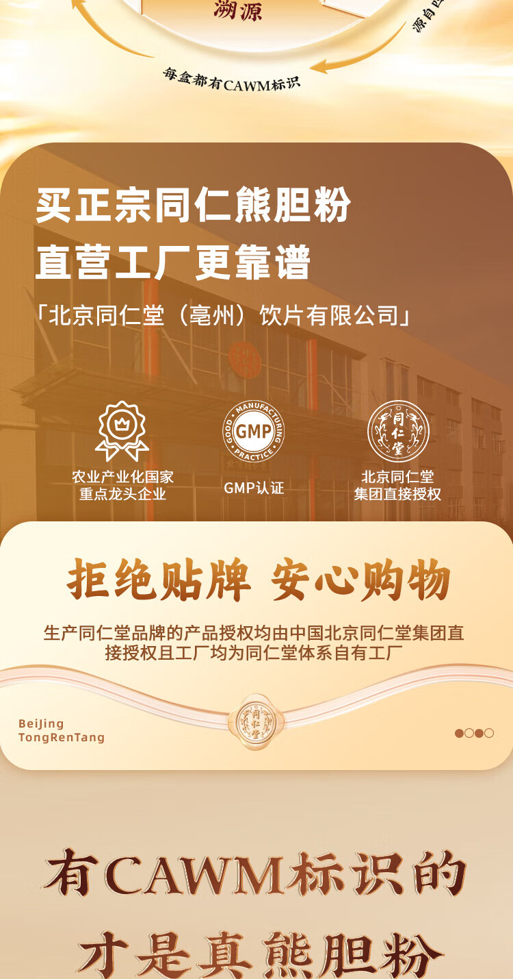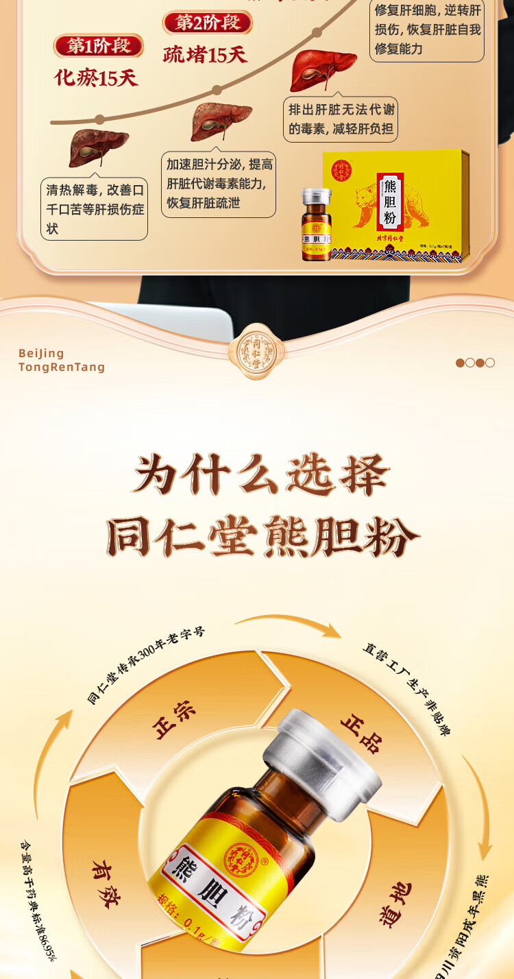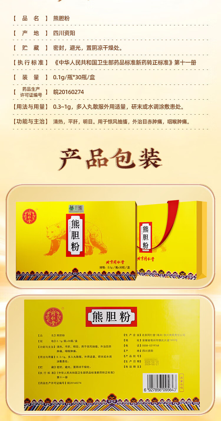 北京同仁堂自营 熊胆粉0.1g*30瓶/3盒礼盒装 金粉黑熊金胆粉精制饮片 平肝明目清热护肝 高端礼品礼物送男士