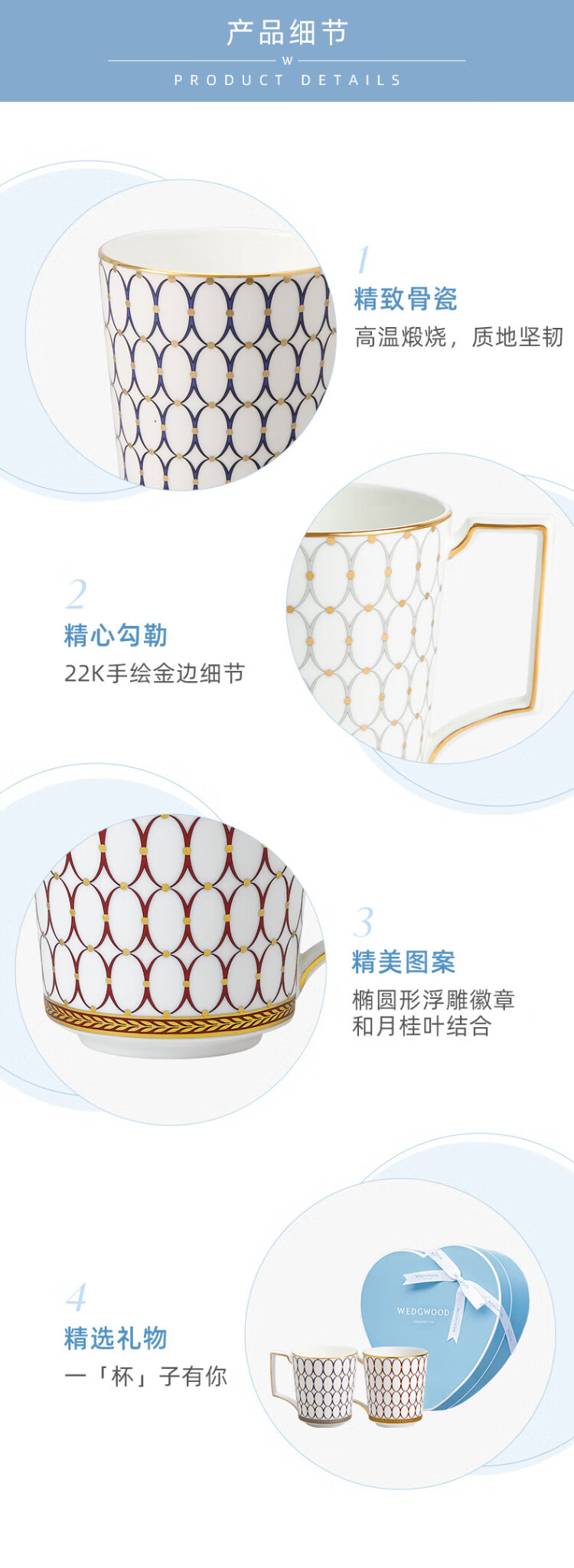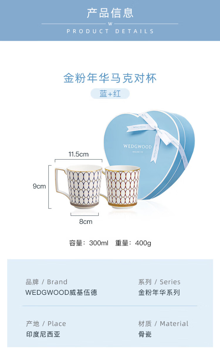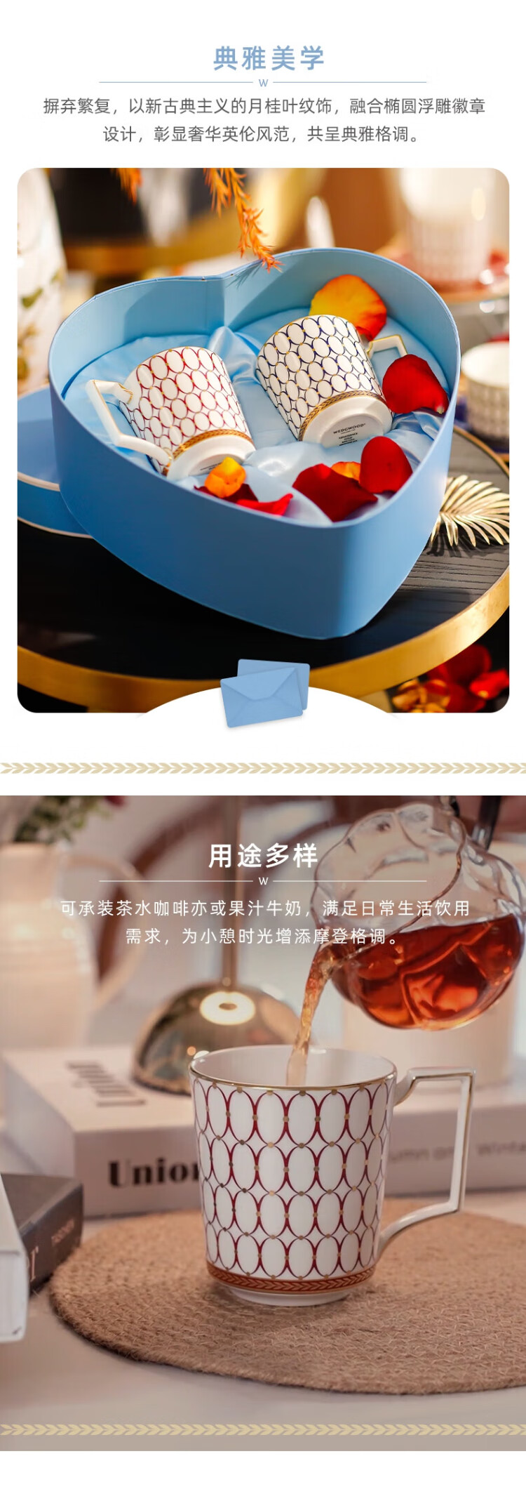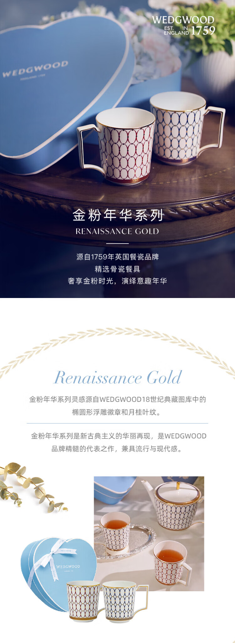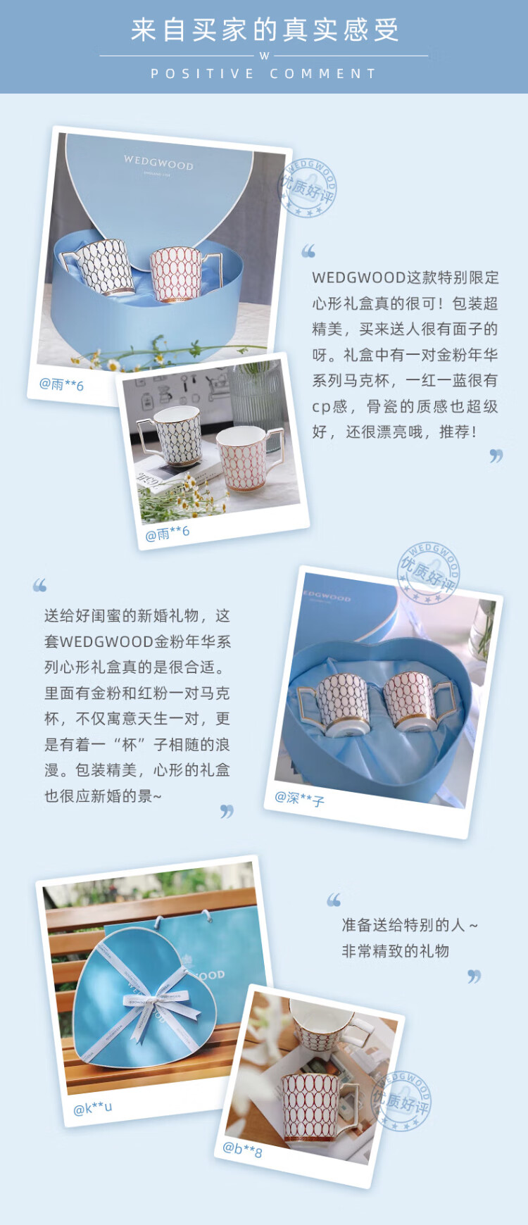 Wedgwood[圣诞礼物]金粉年华马克对杯心形礼盒高颜值情侣杯水杯咖啡杯 金粉年华马克杯心形礼盒