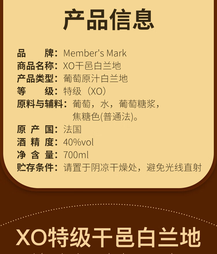 Member s Mark XO Cognac imported from France 700ml 700mL 1 bottle
