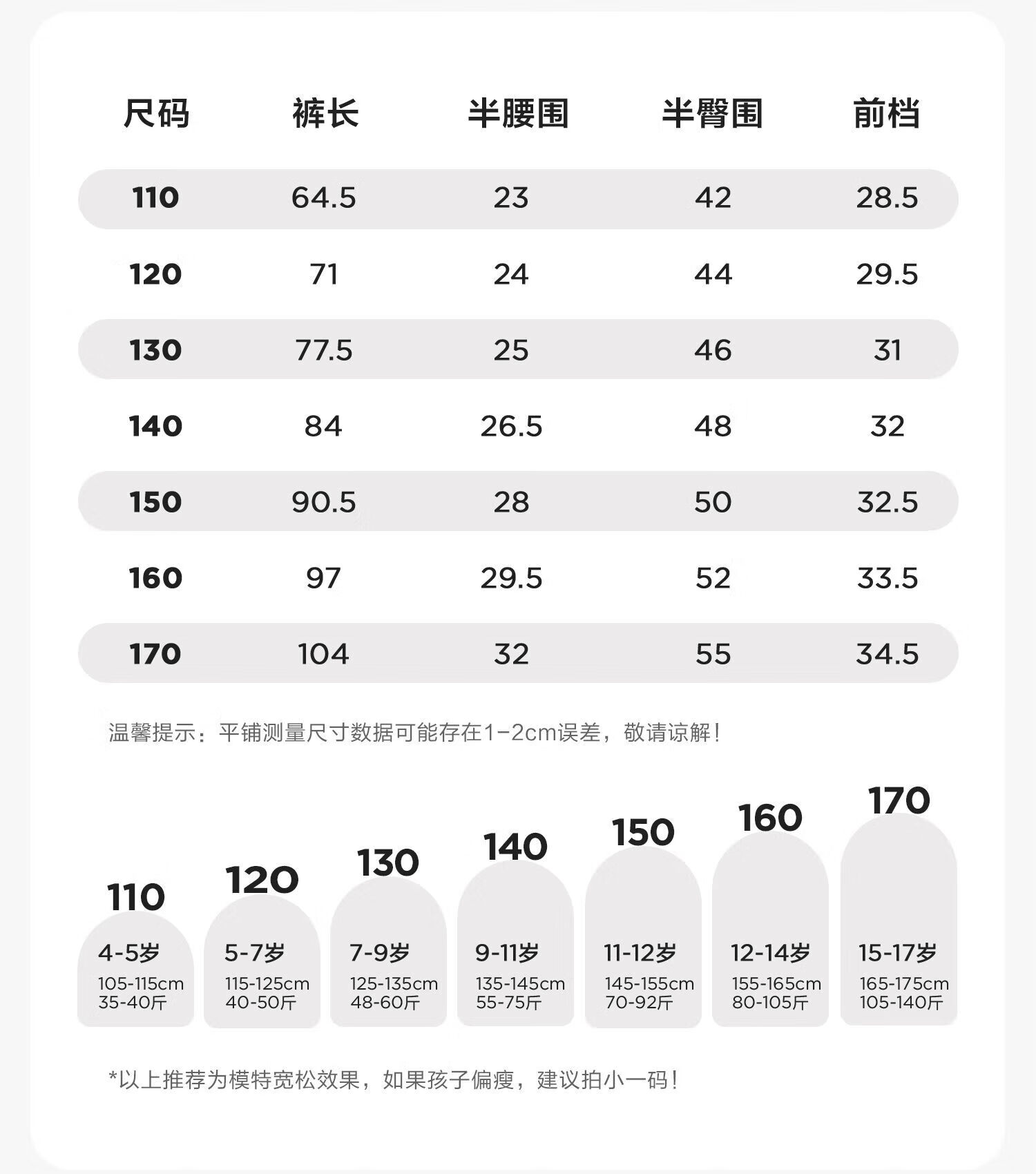 China (cm) 160-165/84-86 165-170 / 88-90 167-172 / 92-96 168-173 / 98-102 170-176 / 106-110