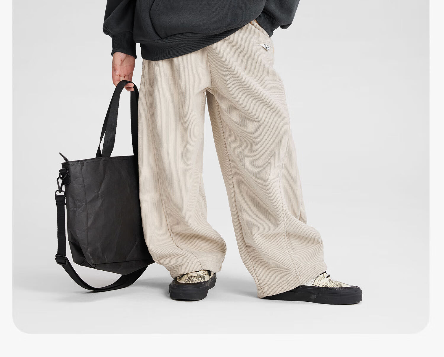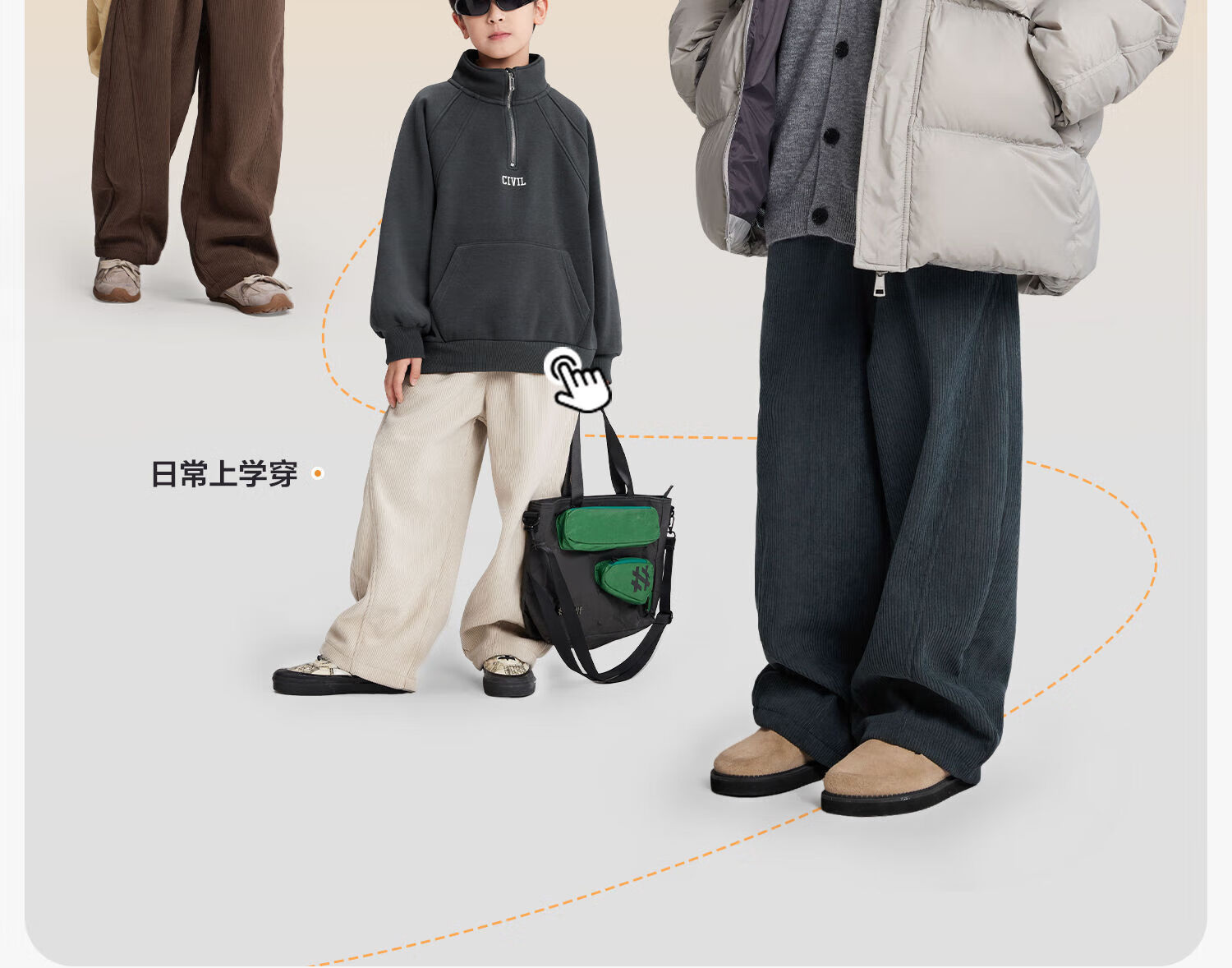 Zuoxi boys' fleece trousers to keep warm in winter 2025 new children's one-piece velvet corduroy trousers dark gray 150