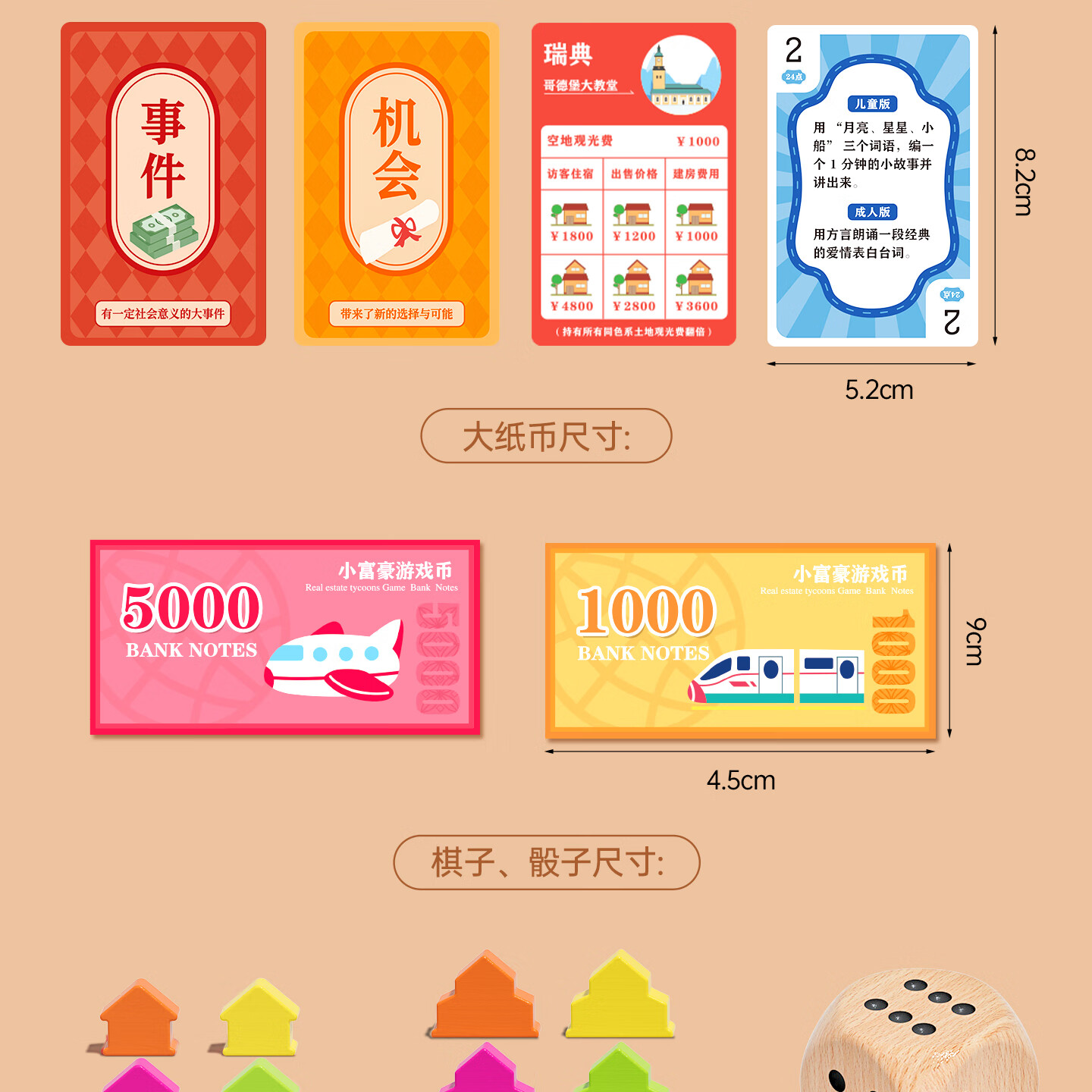 小顽豆大号富翁飞行棋地毯6桌面游戏棋盘8儿童地产桌游大亨棋类益智玩具