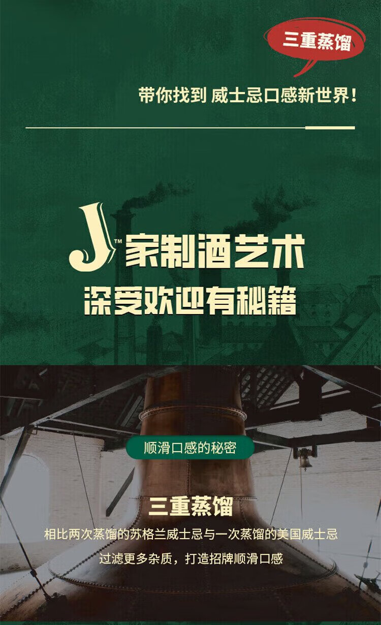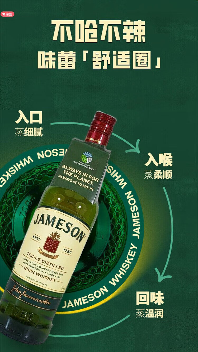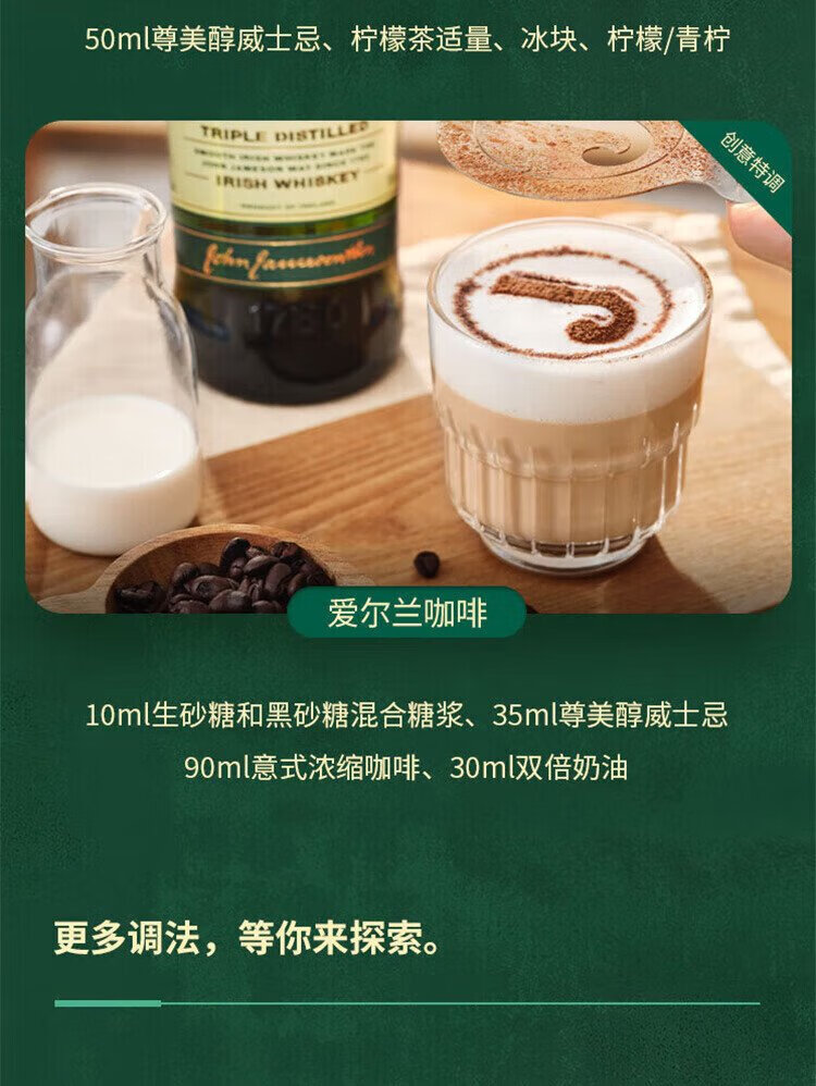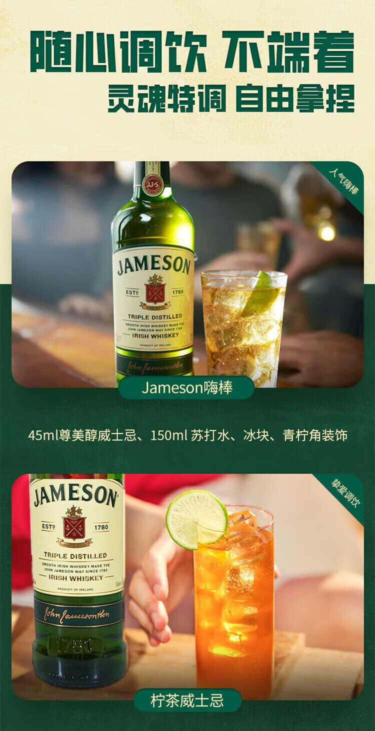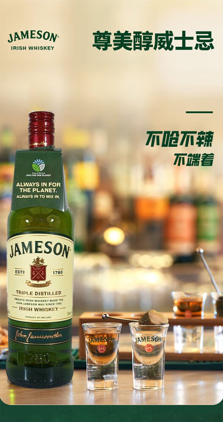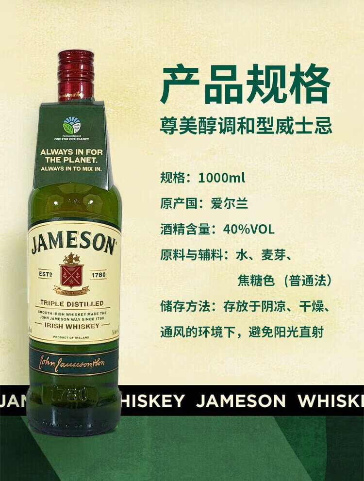 尊美醇(Jameson)爱尔兰 调和型威士忌 1000ml 40度 进口洋酒