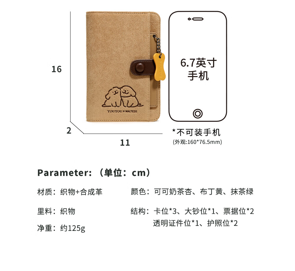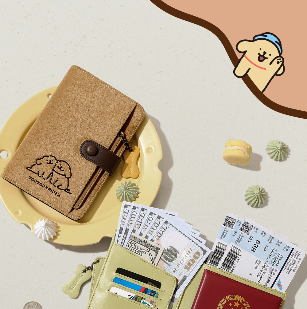 Toutou2025 Damen-Geldbörsen-Linie, Welpe, großes Fassungsvermögen, Reisepasstasche, Reisen ins Ausland, Reisepasshülle