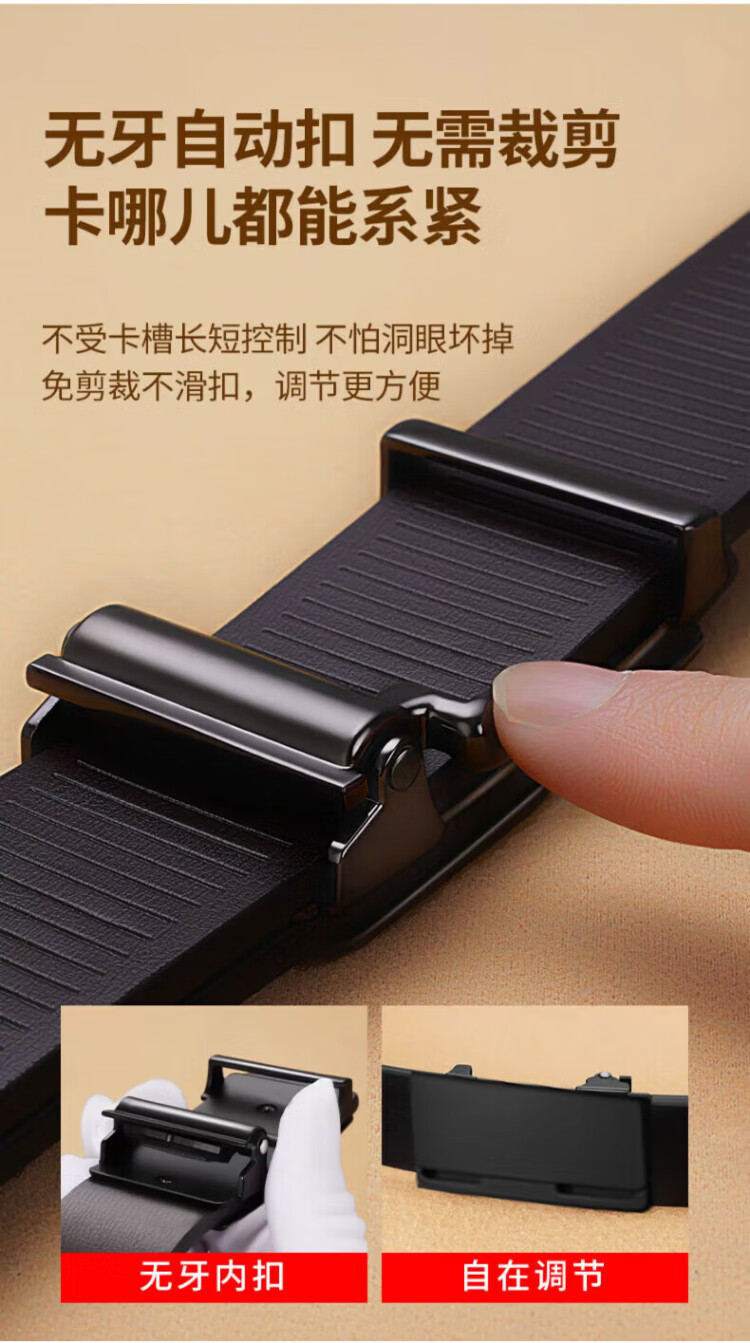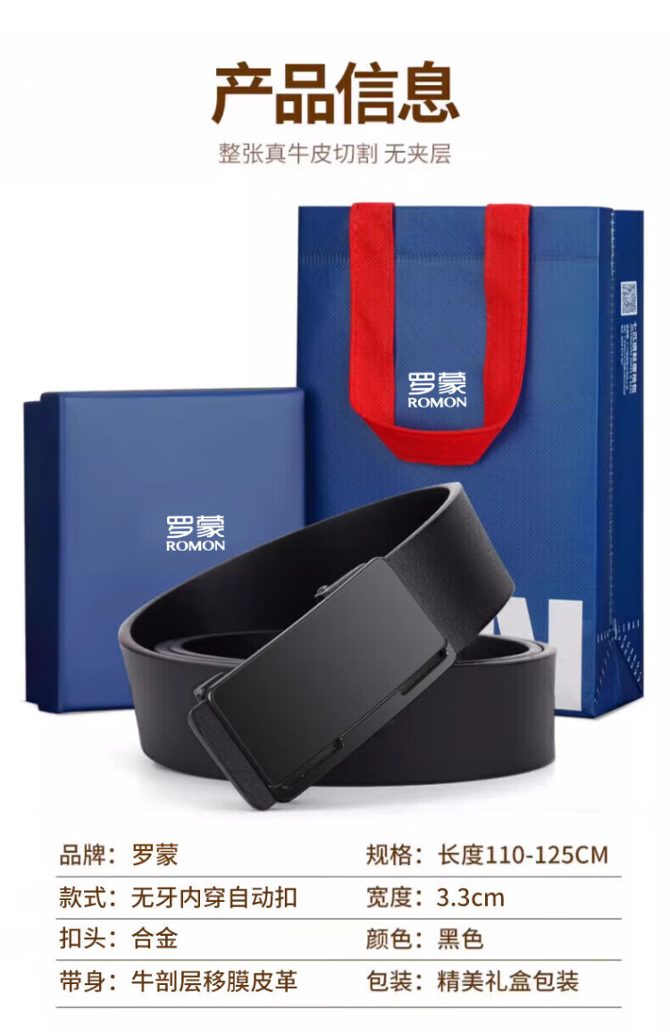 Romon Gürtel für Herren, echtes Leder, Innenschnalle, automatischer Schnallengürtel, zahnloser Unterwäschegürtel, praktisches Geburtstagsgeschenk für Freund