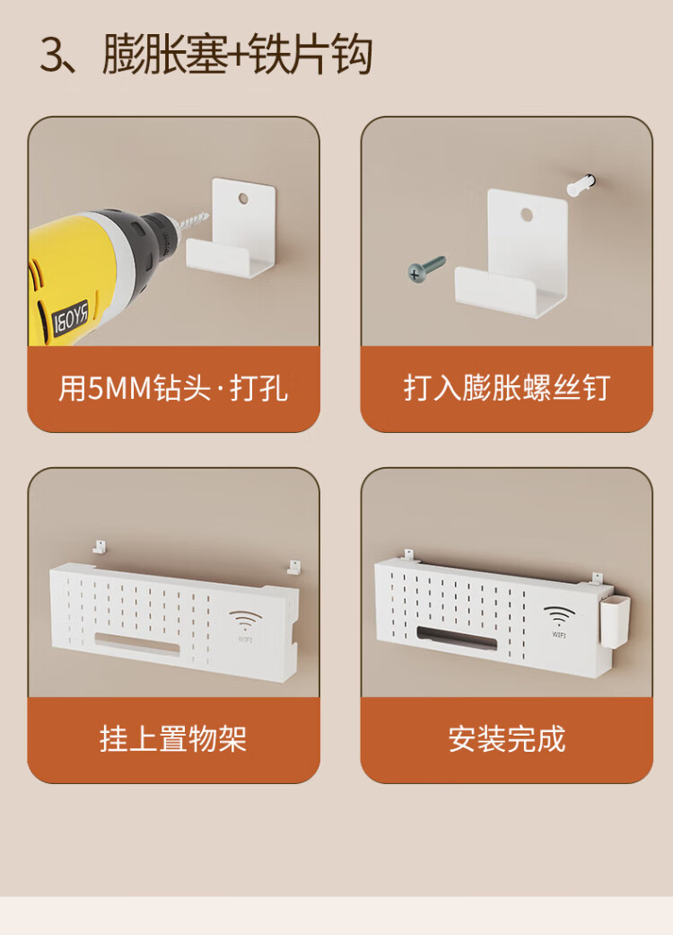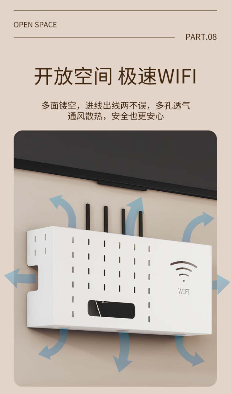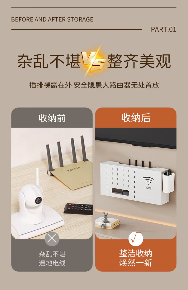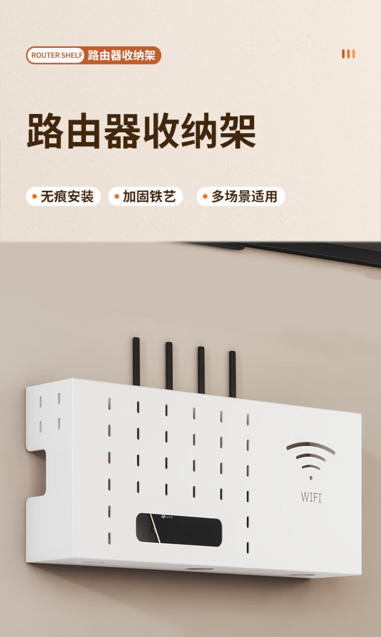 蜗家路由器放置架免打孔壁挂机顶盒架固定插排插座遮挡上墙wifi收纳架