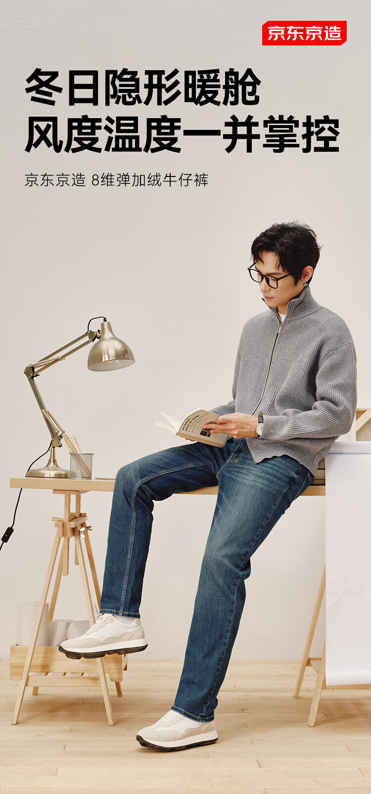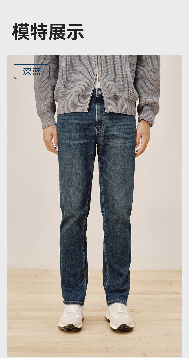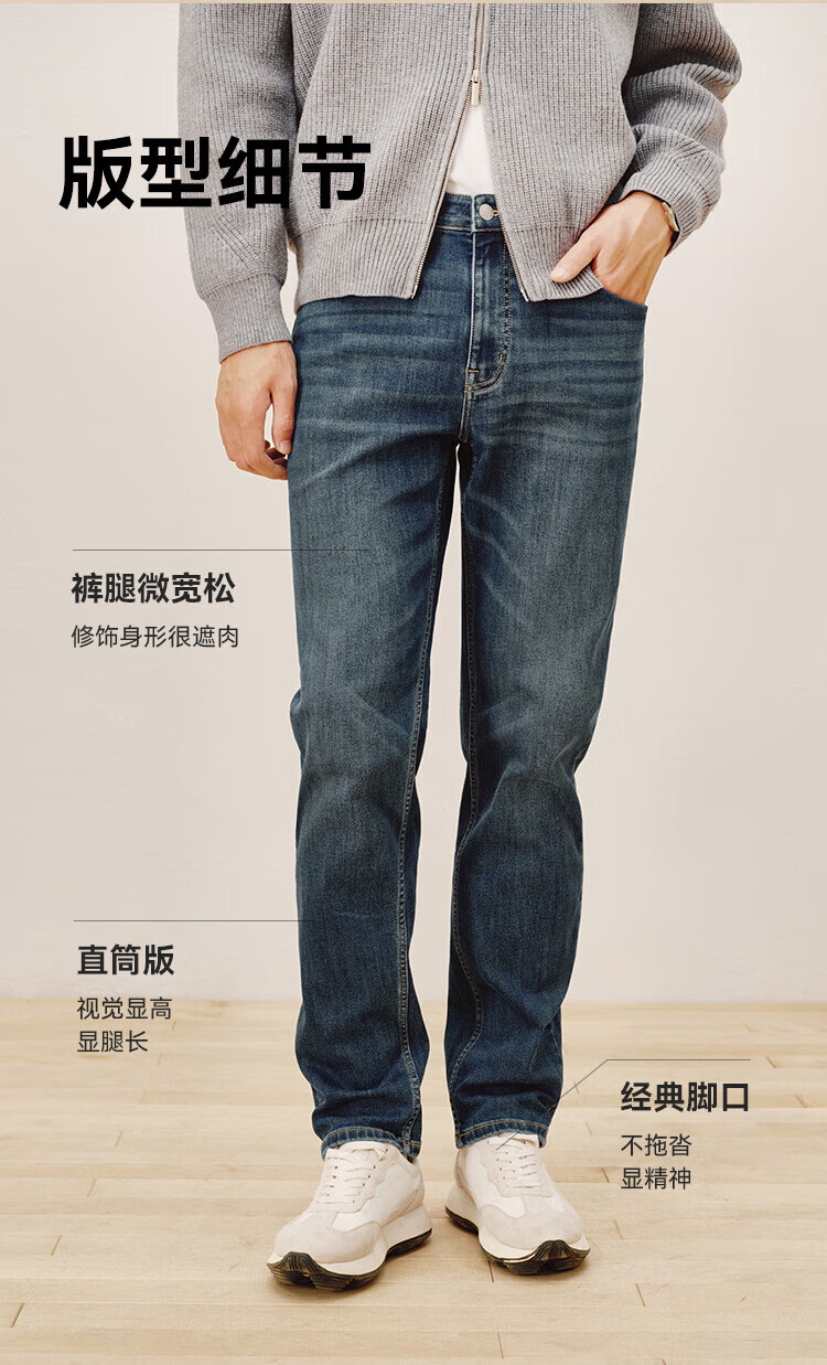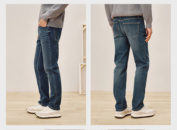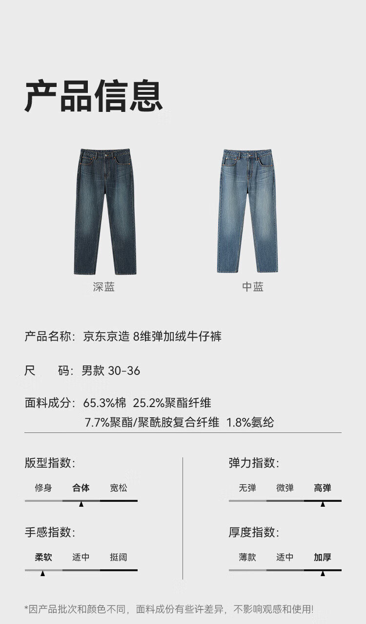 Джинсы Jingdong, мужские джинсы с высокой эластичностью и бархатом, утолщенные мужские 25, осенне-зимние новые повседневные длинные брюки среднего синего цвета 32