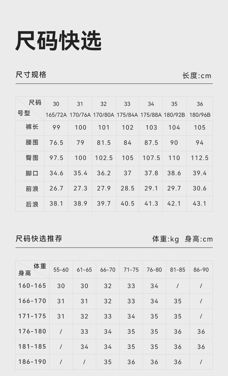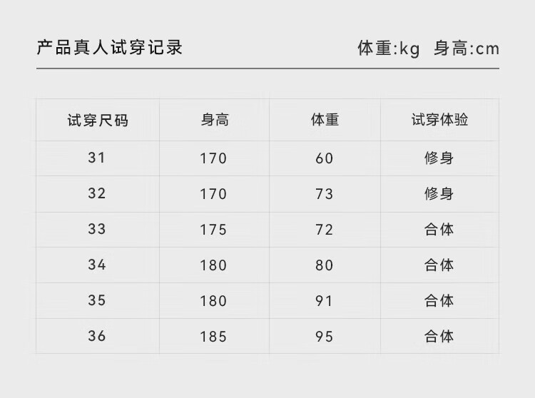 China (cm) 160-165/84-86 165-170 / 88-90 167-172 / 92-96 168-173 / 98-102 170-176 / 106-110