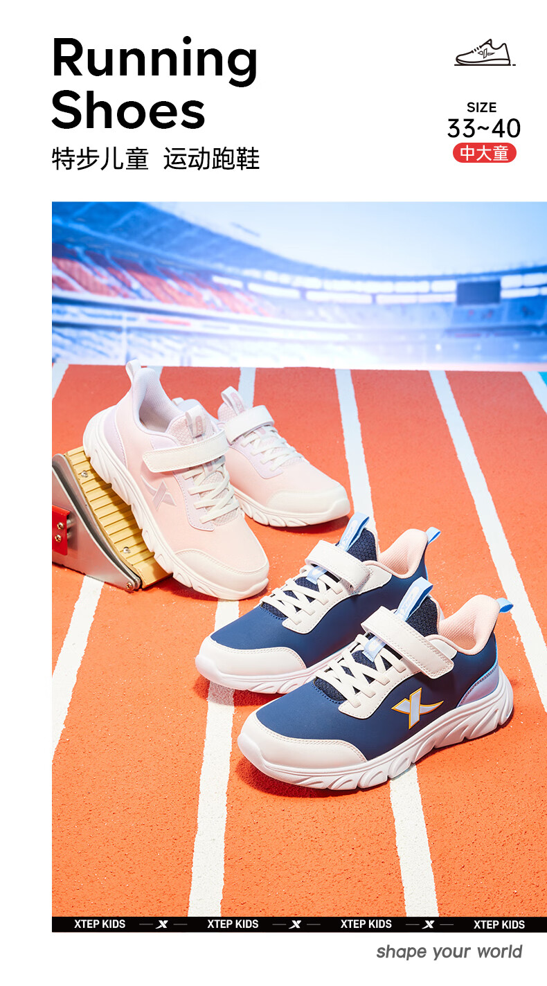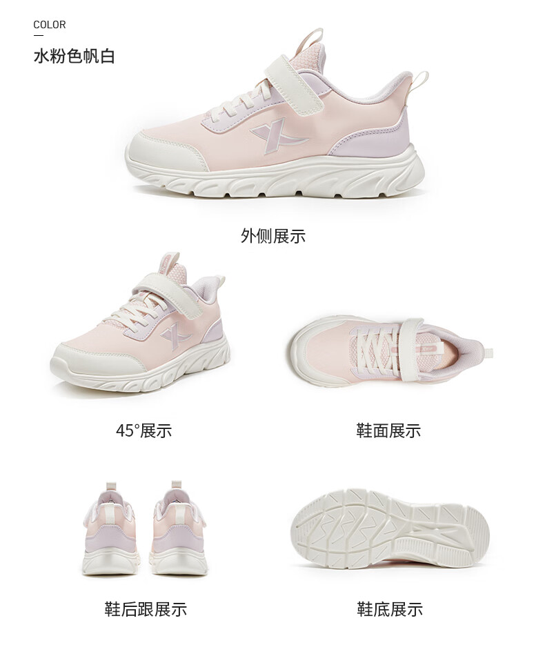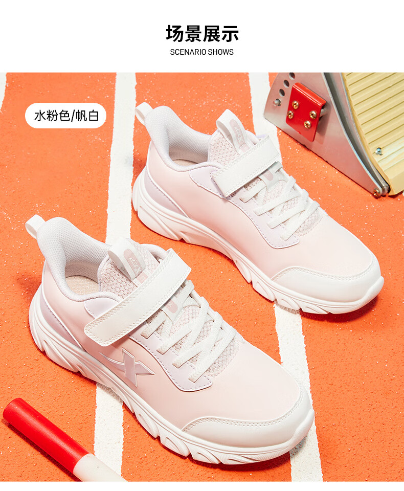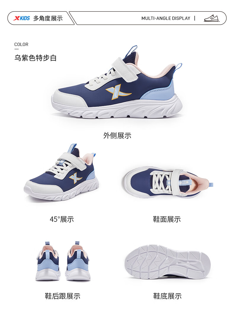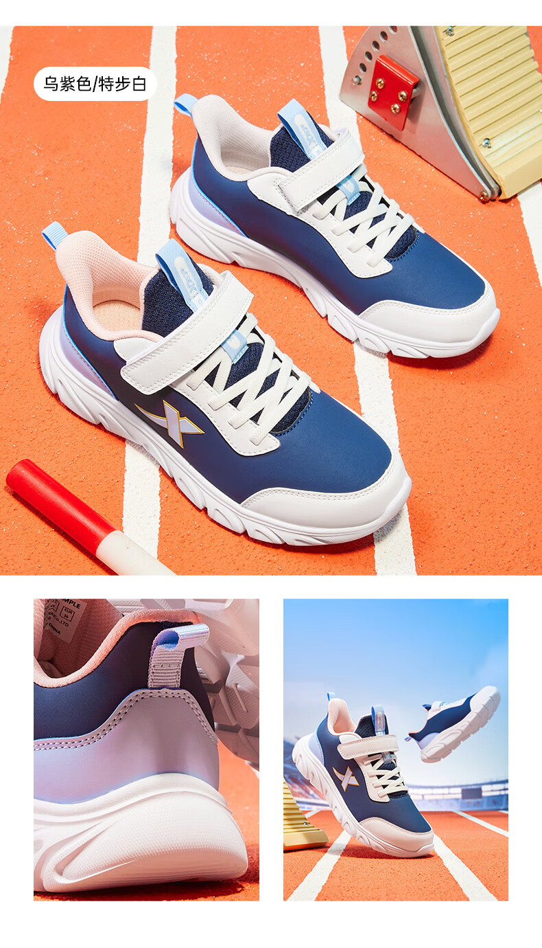 特步儿童童鞋基础跑鞋男女童全革百搭运动鞋 乌紫色/特步白 34