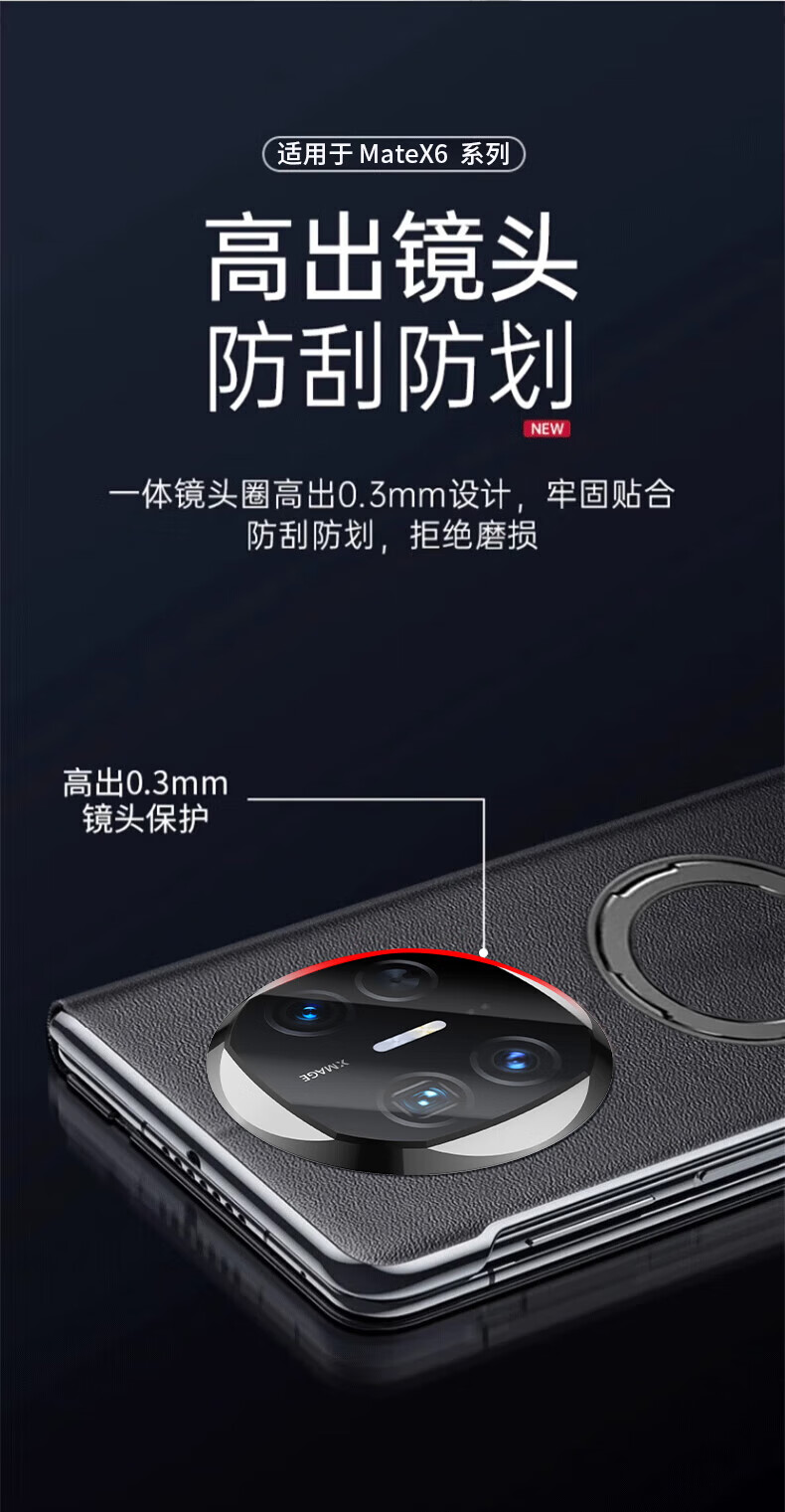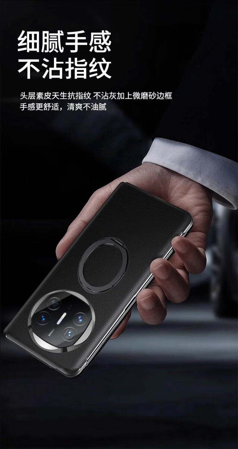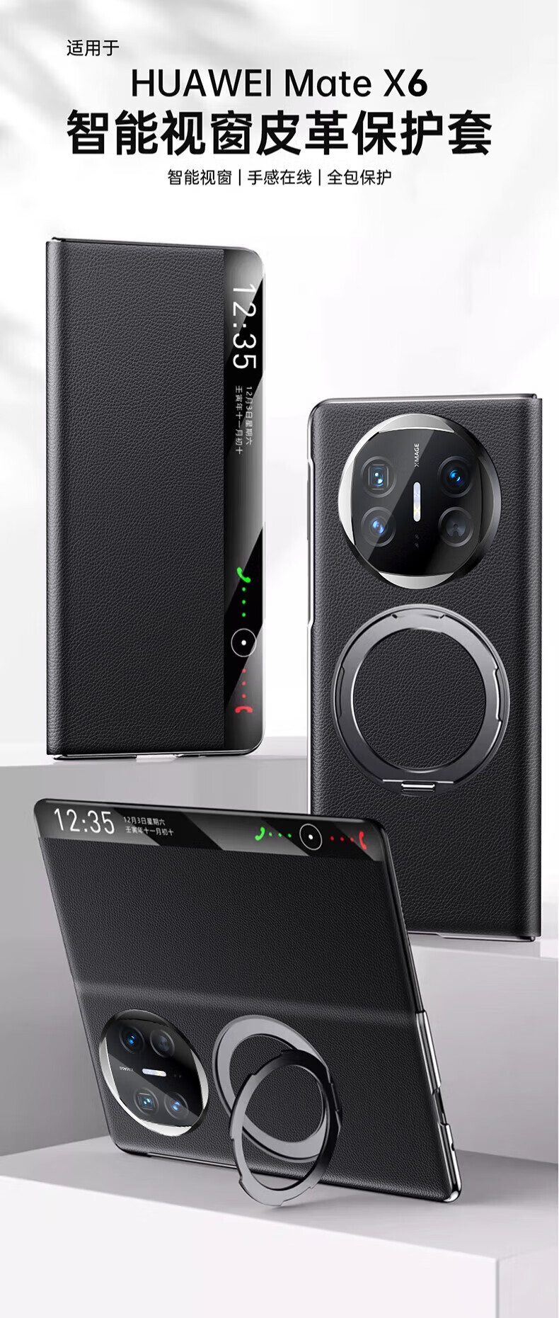 Hannuo Fulcrum Case丨Smart Flip Cover Suitable for Huawei Mate x6 Mobile Phone Case New x6 Protective Case Collection Edition Genuine Leather Multifunctional Ring Magnetic Folding Feather Black