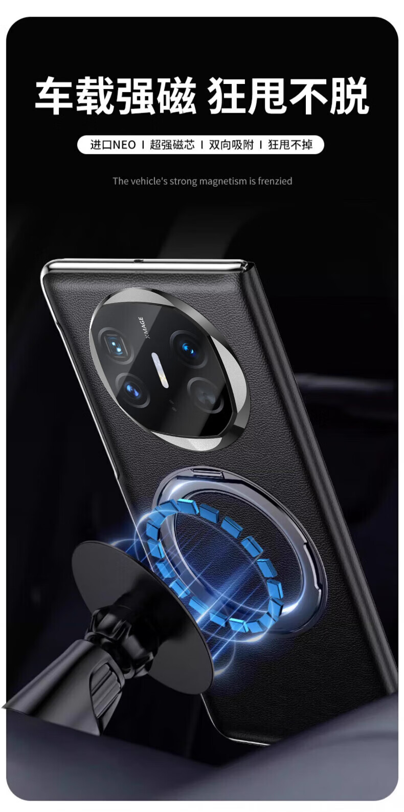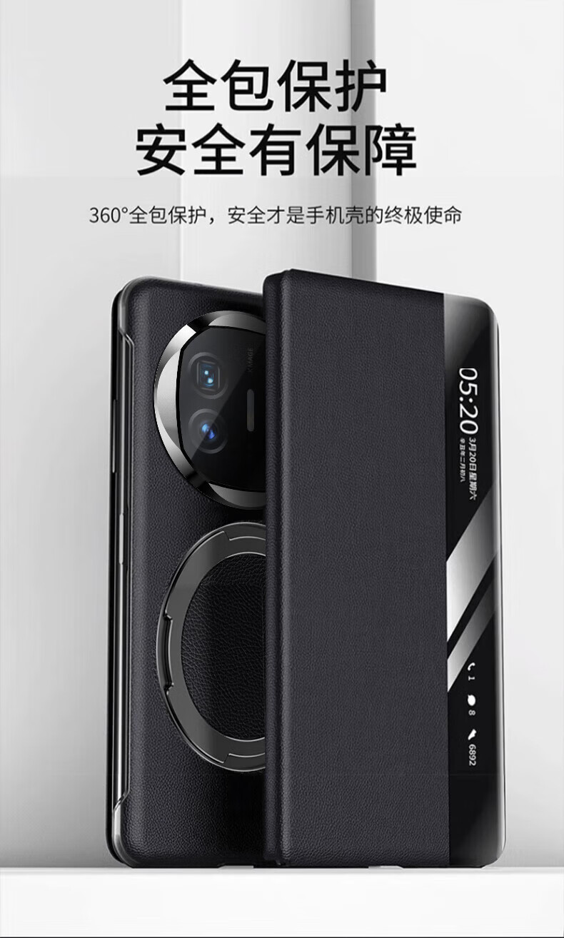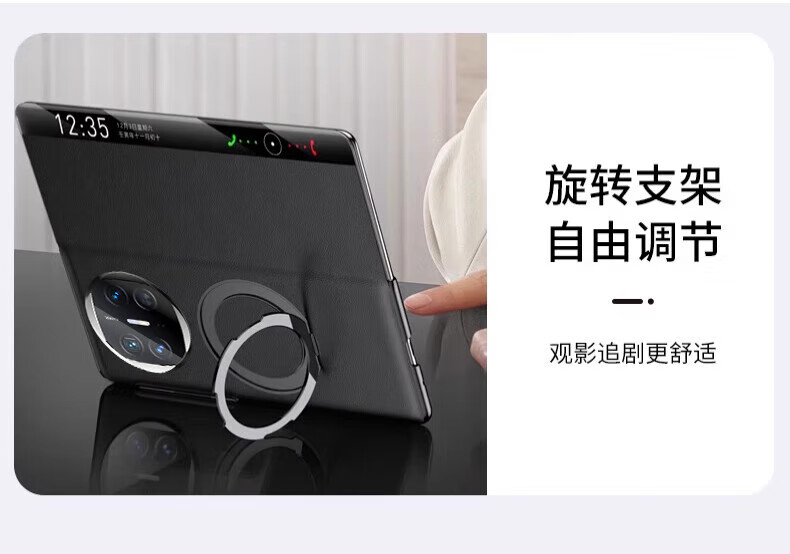 Hannuo Fulcrum Case丨Smart Flip Cover Suitable for Huawei Mate x6 Mobile Phone Case New x6 Protective Case Collection Edition Genuine Leather Multifunctional Ring Magnetic Folding Feather Black