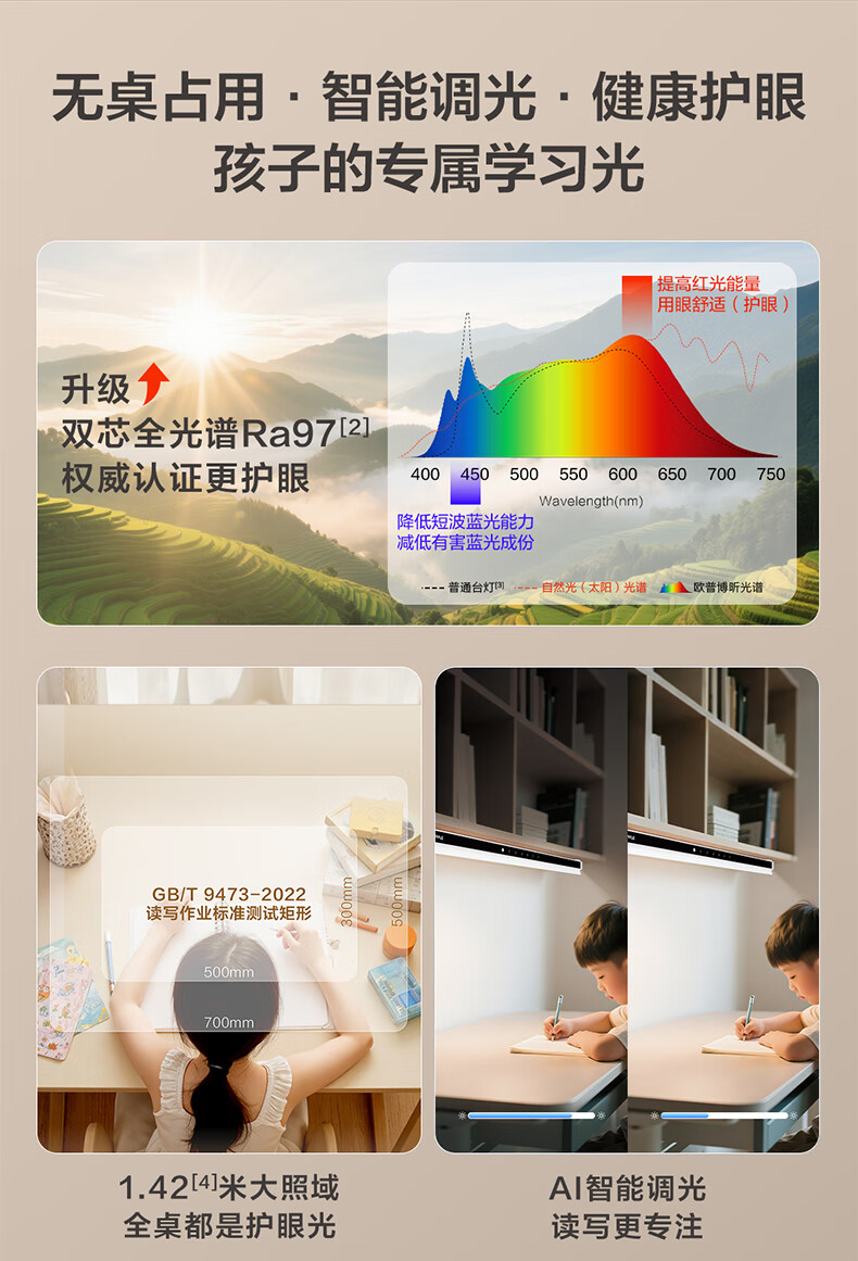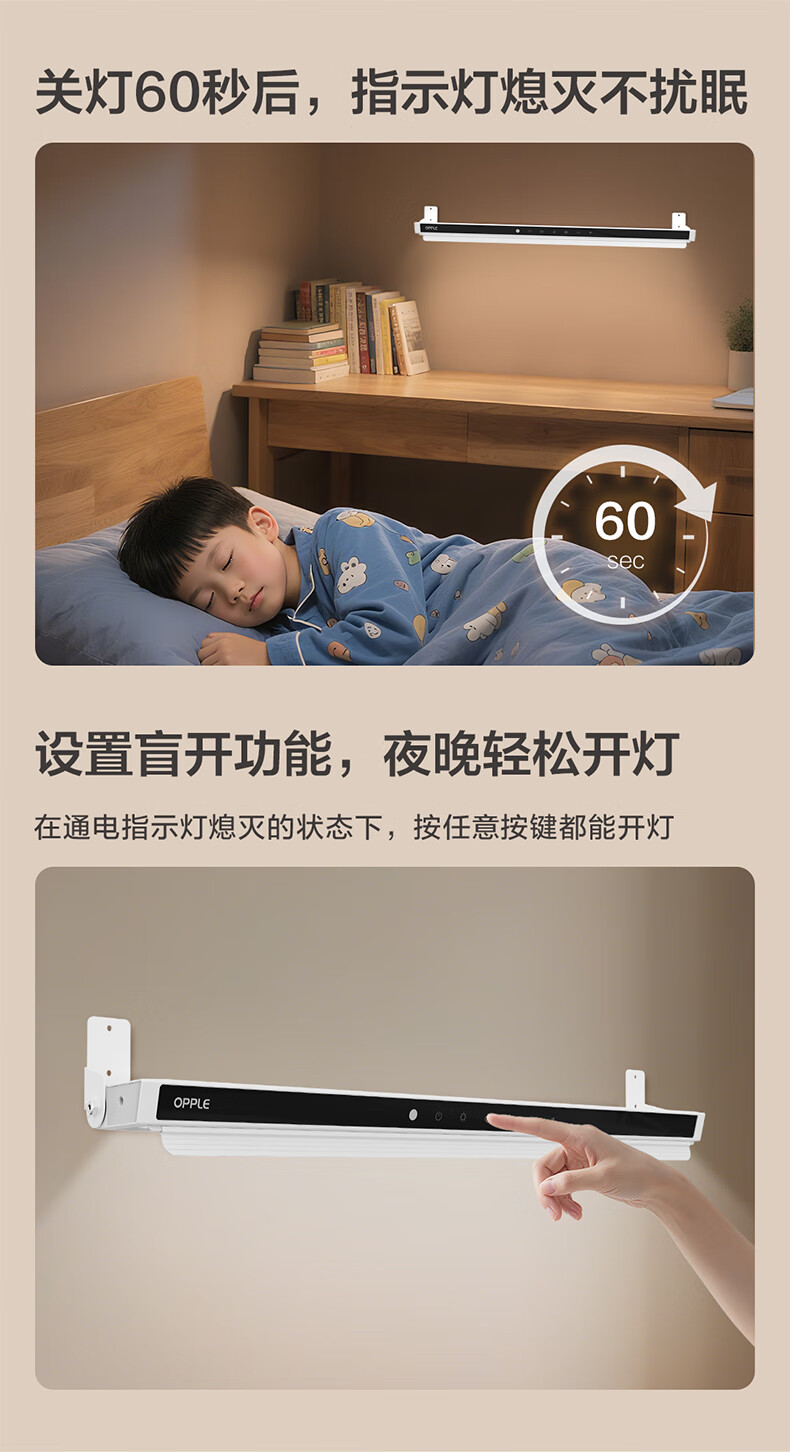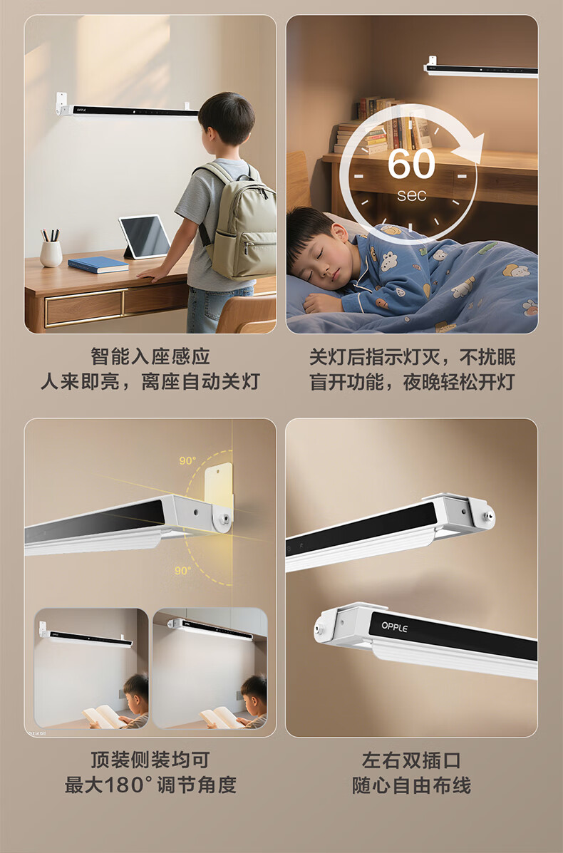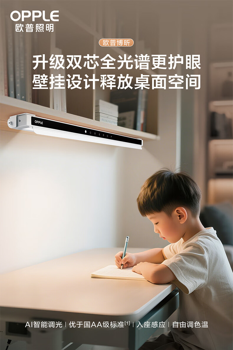 欧普(OPPLE)全光谱护眼国AA学生儿童学习宿舍书桌无座阅读壁挂台灯 博昕