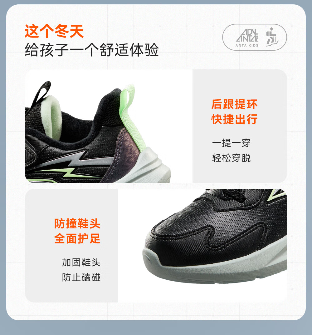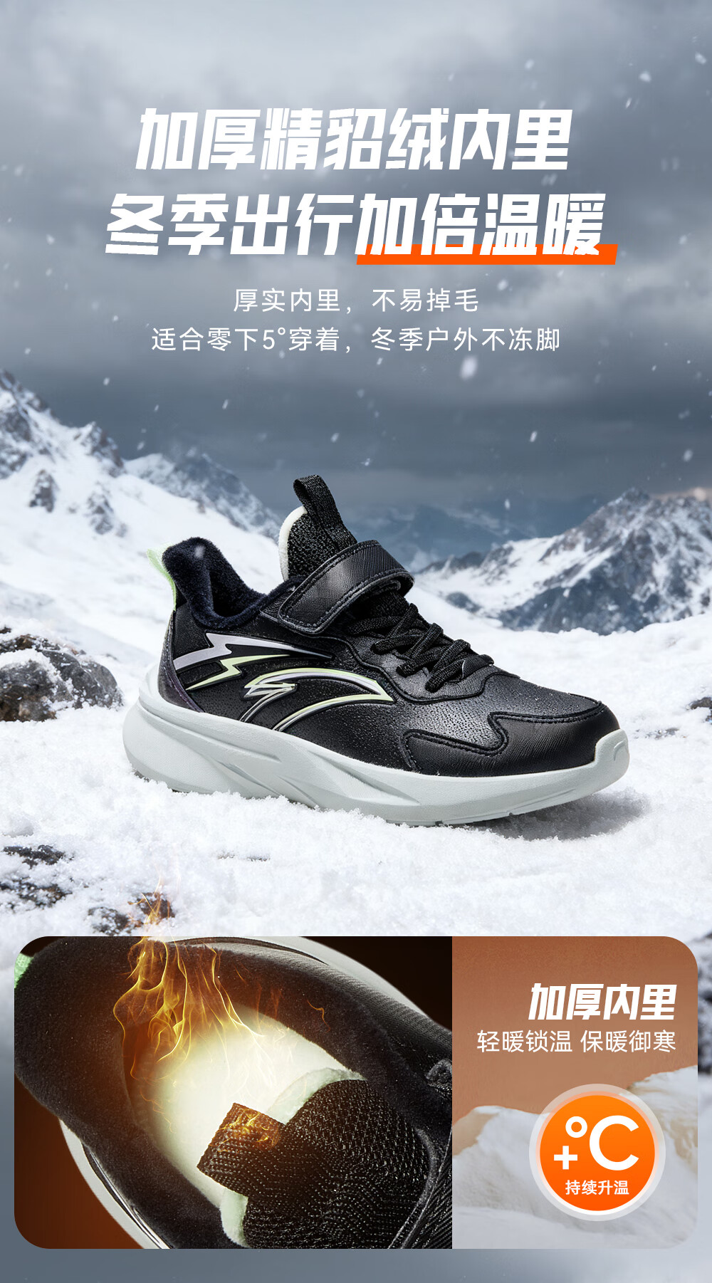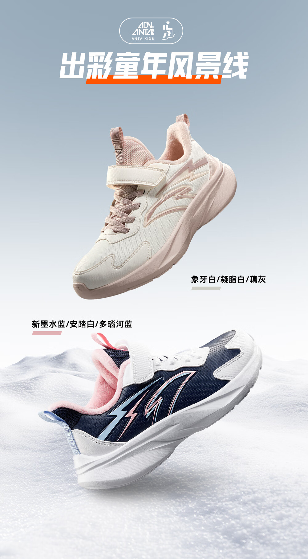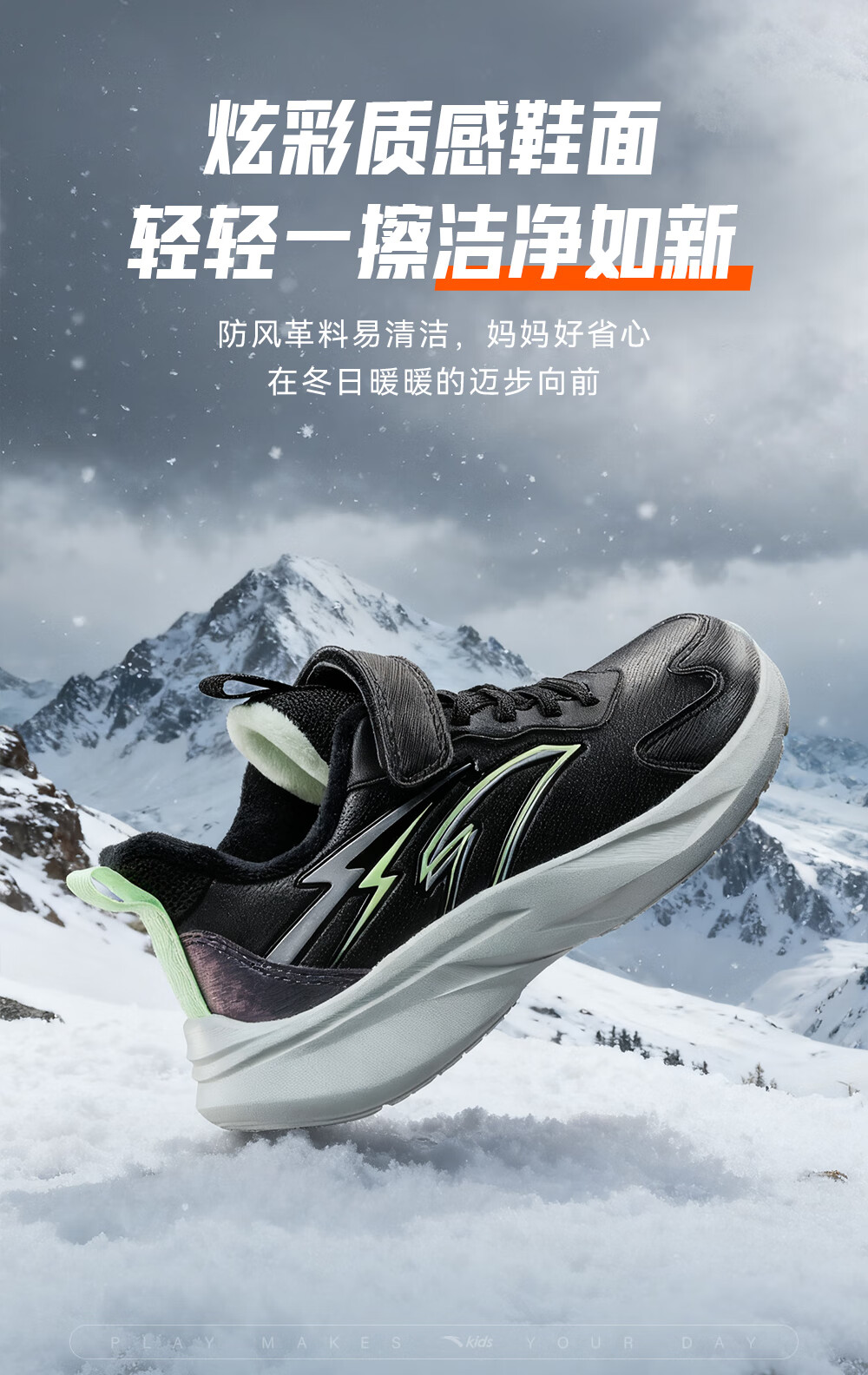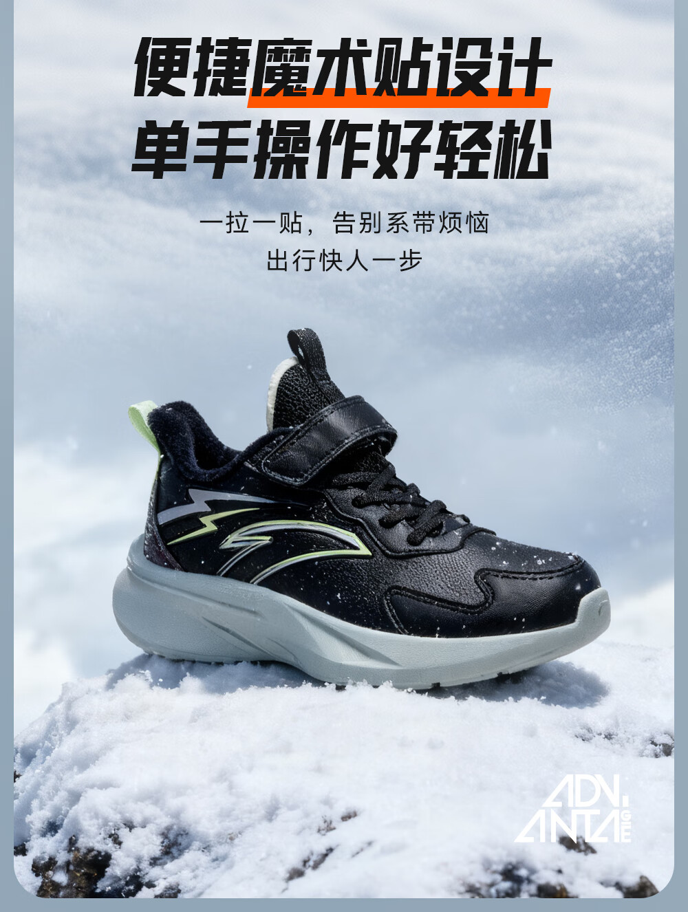 安踏儿童运动鞋女大童加绒跑鞋2025冬户外系列保暖棉鞋A22546927