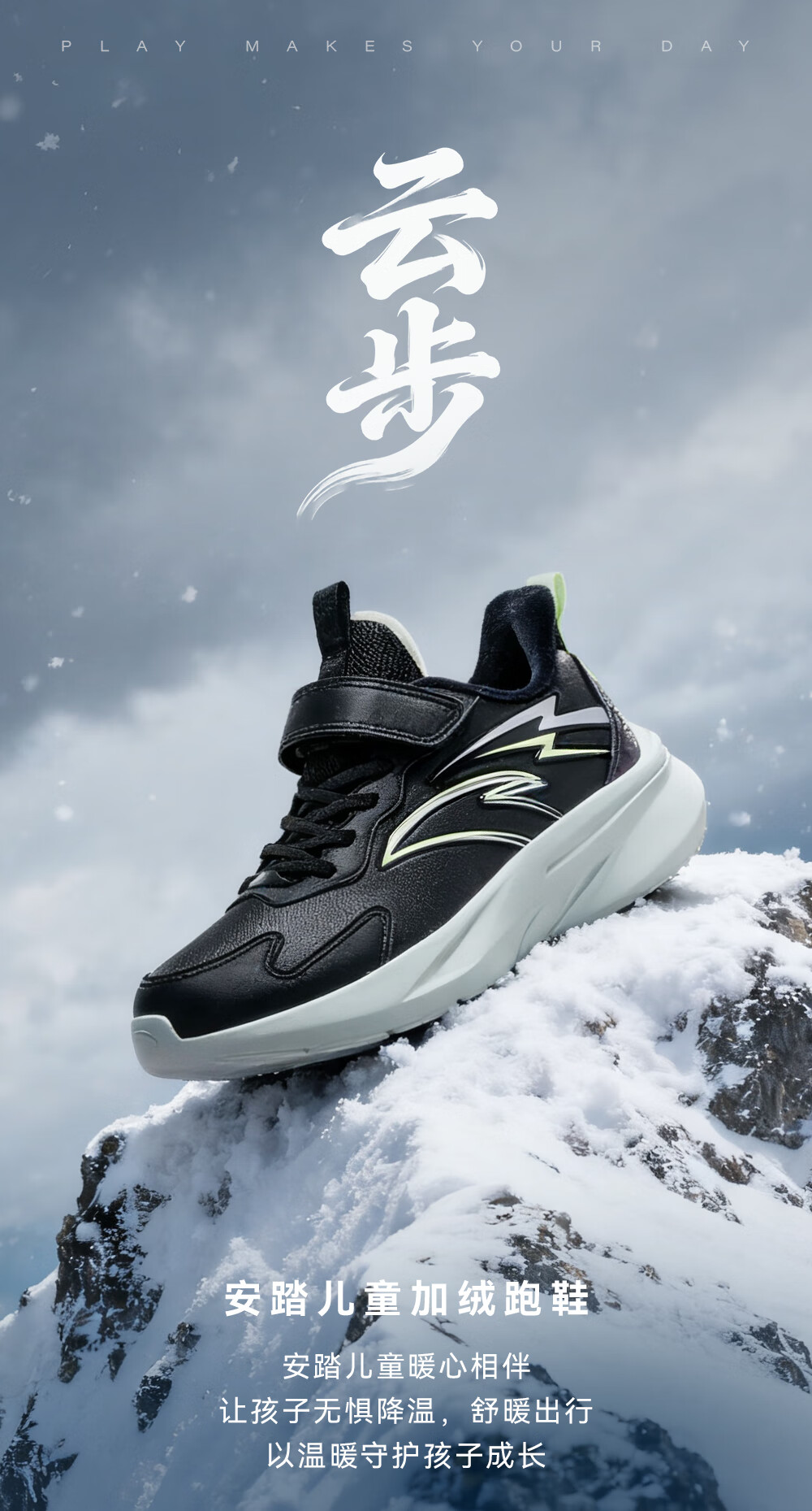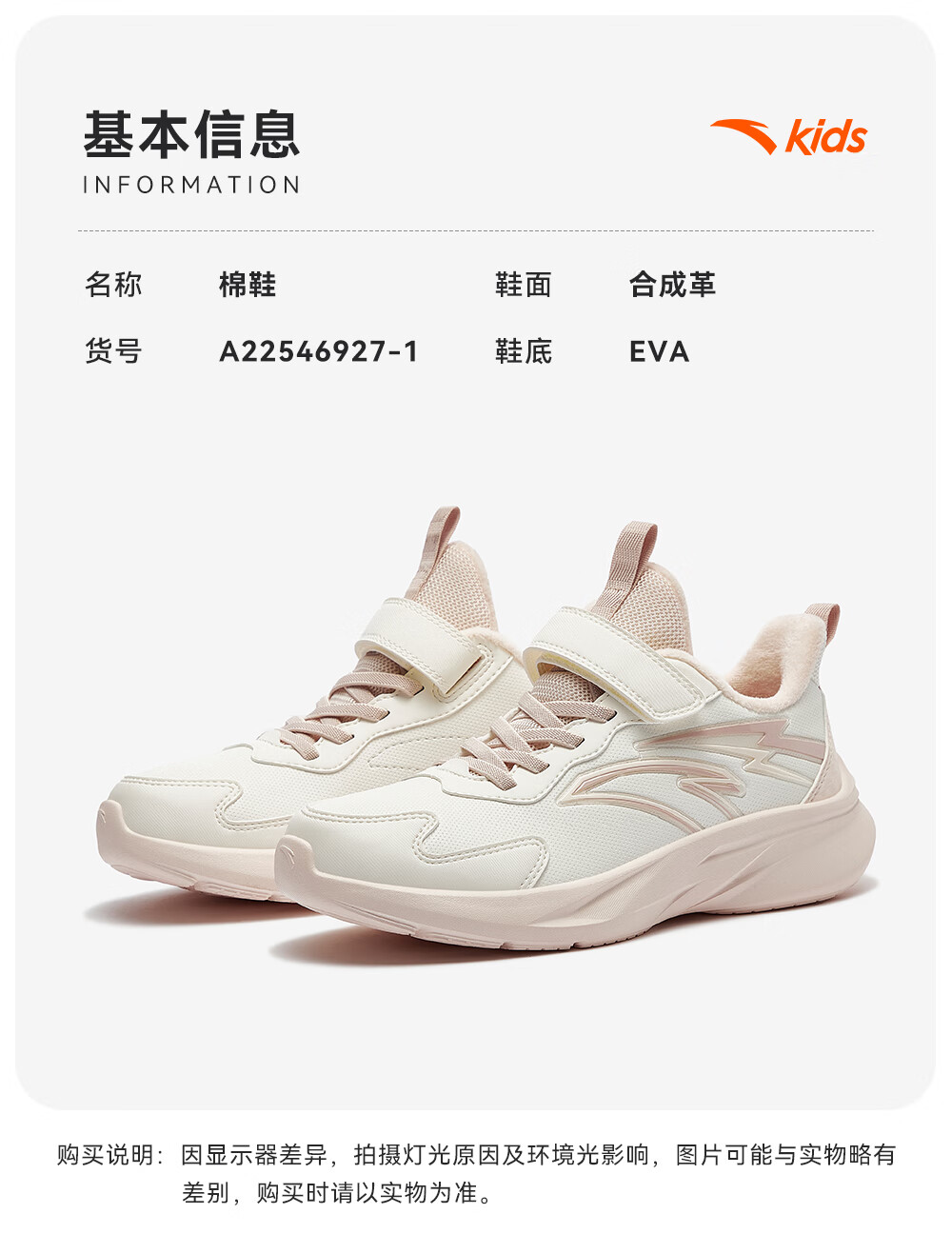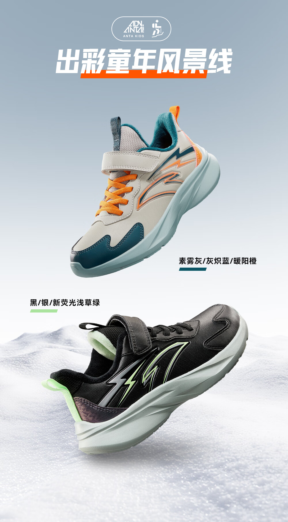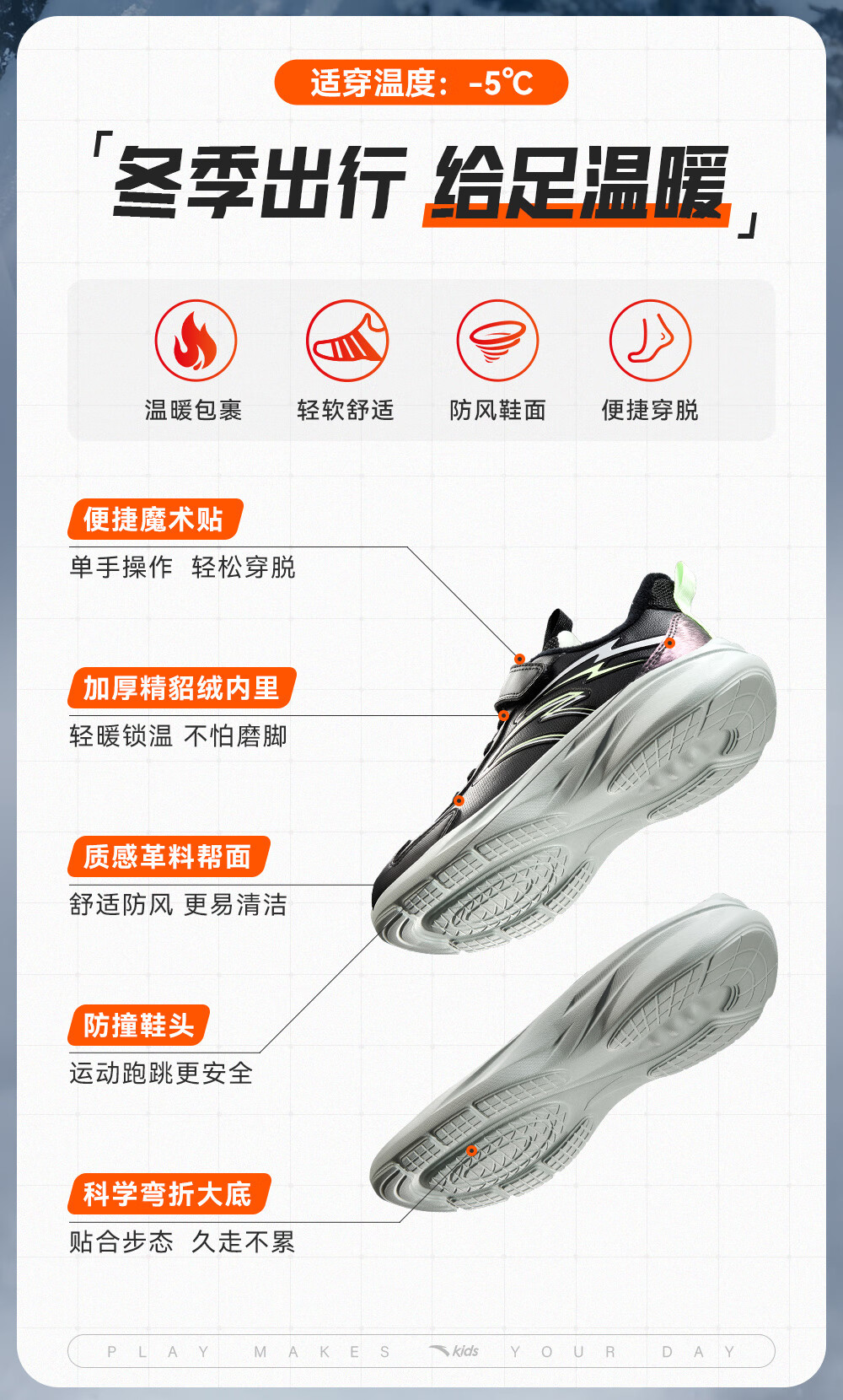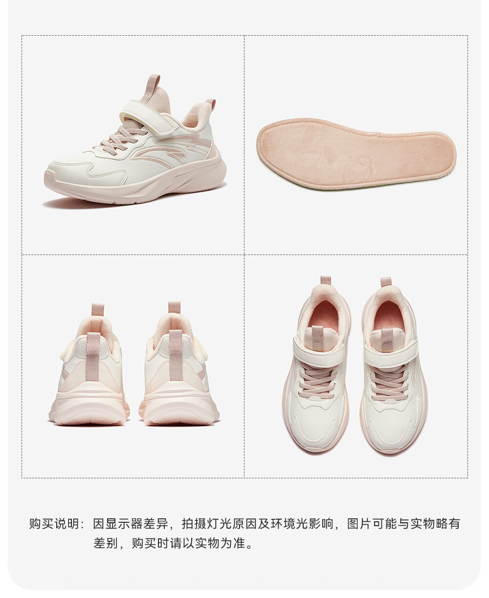 安踏儿童运动鞋女大童加绒跑鞋2025冬户外系列保暖棉鞋A22546927