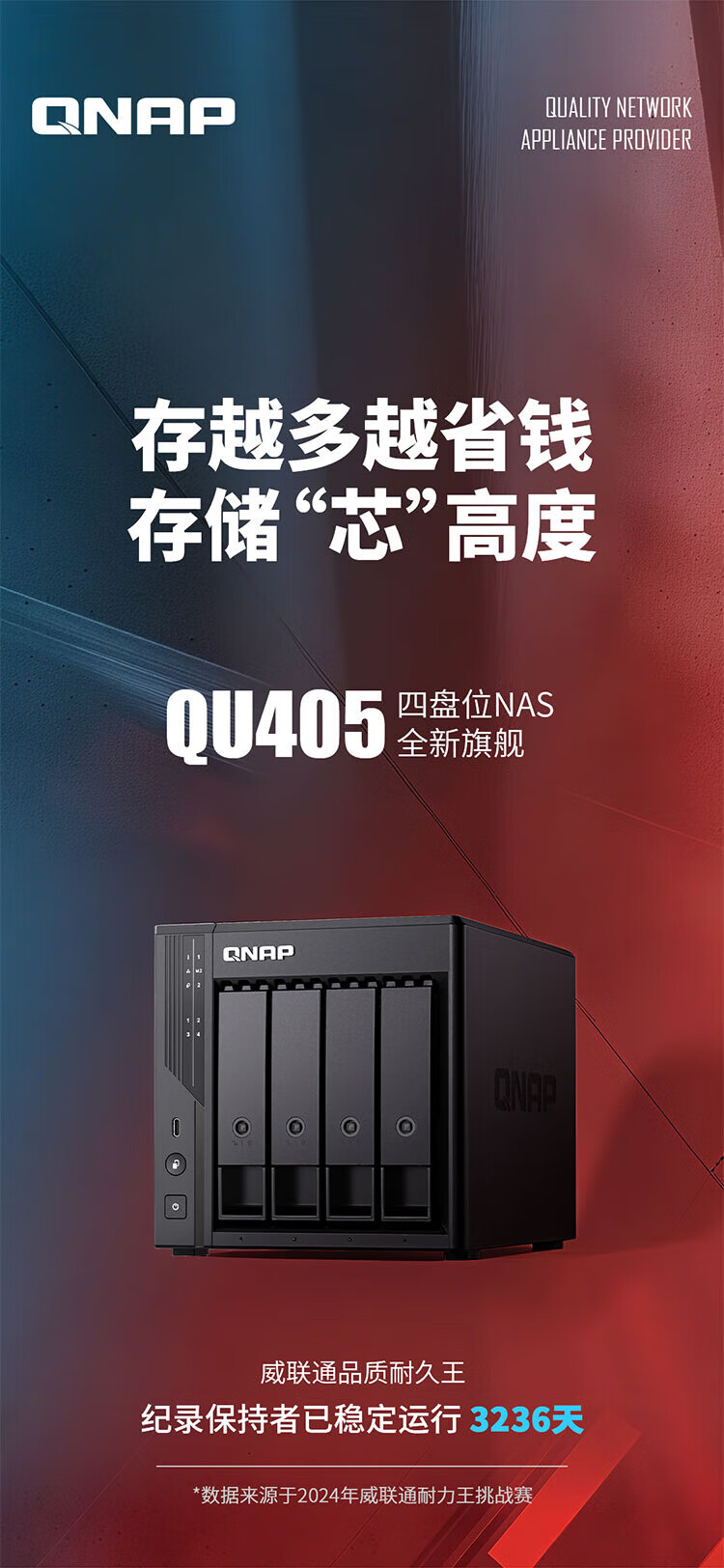 威联通(QNAP)Qu405企业级家庭存储 N355 16G内存 32T容量四盘位网络存储NAS私有云 AI相册手机备份 网盘服务器