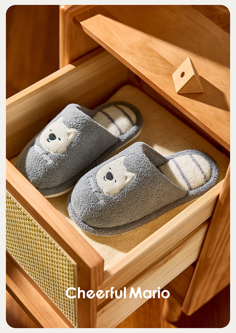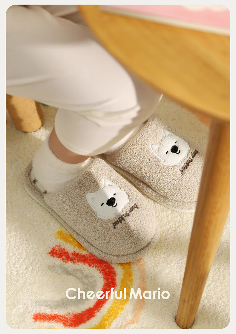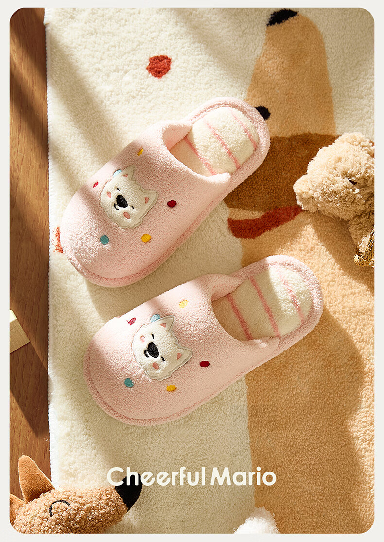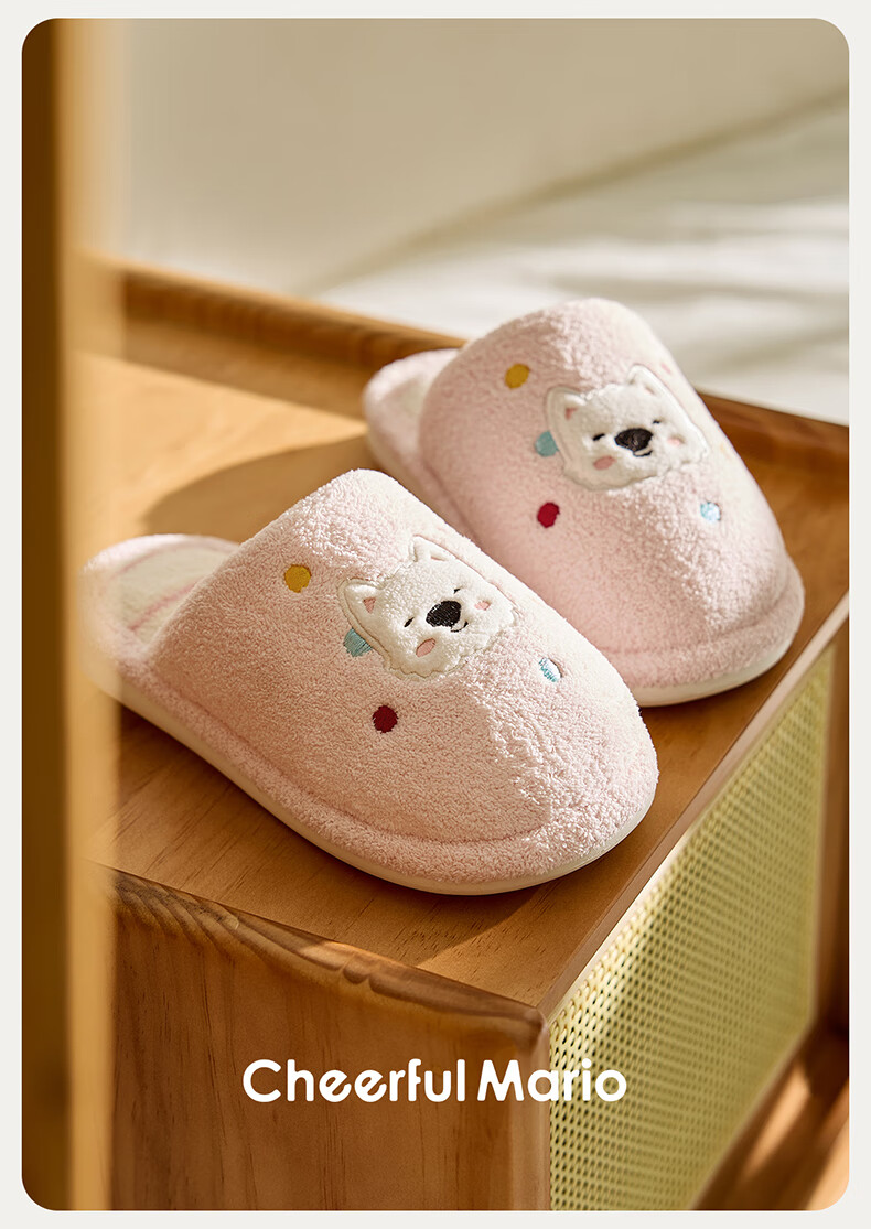 幸福玛丽(Cheerful Mario)小狗狗卡通男童秋季2025新款可爱居家室内宝宝毛毛棉拖鞋