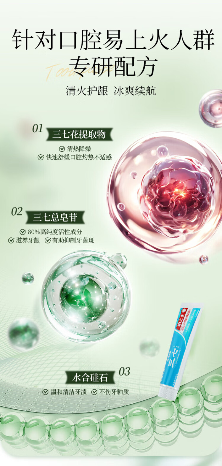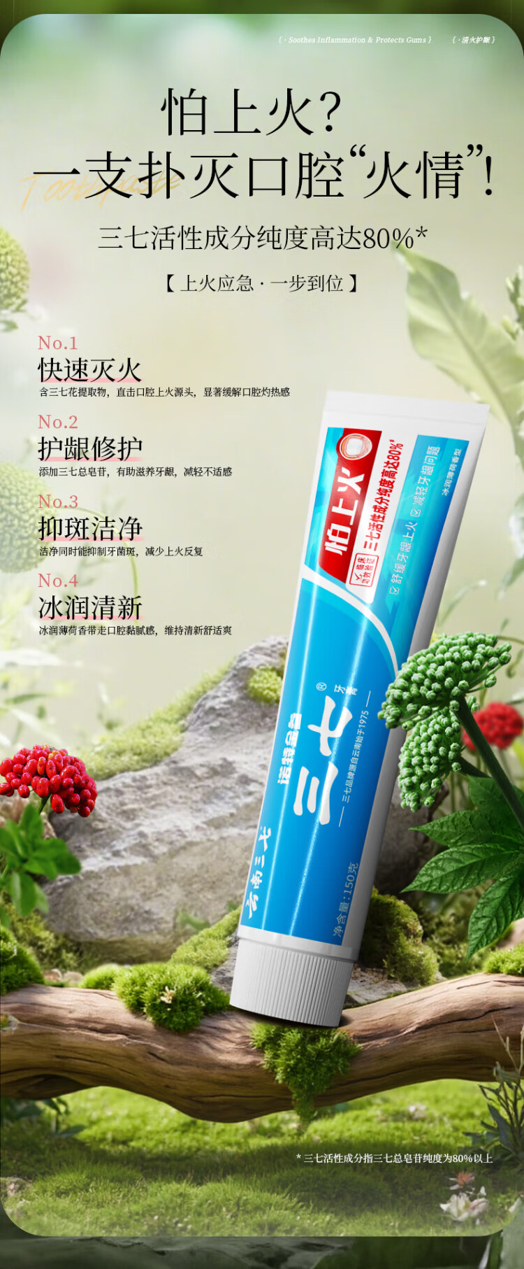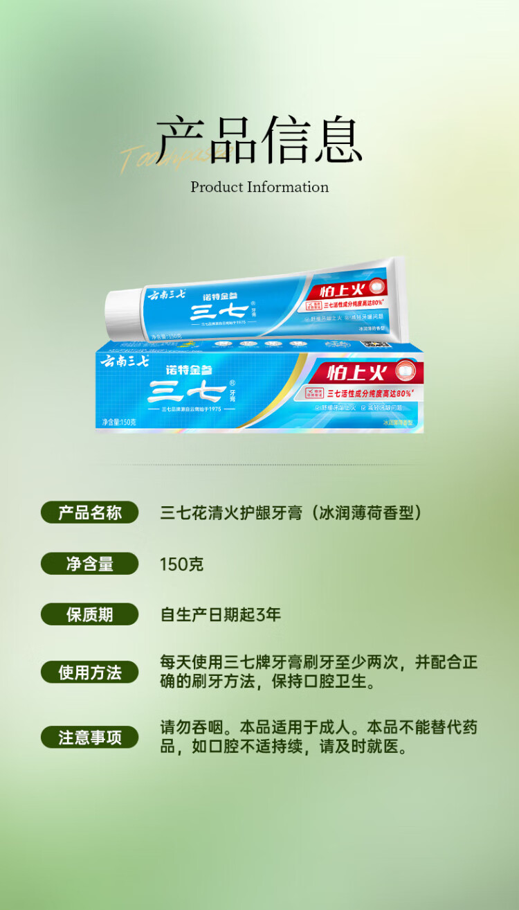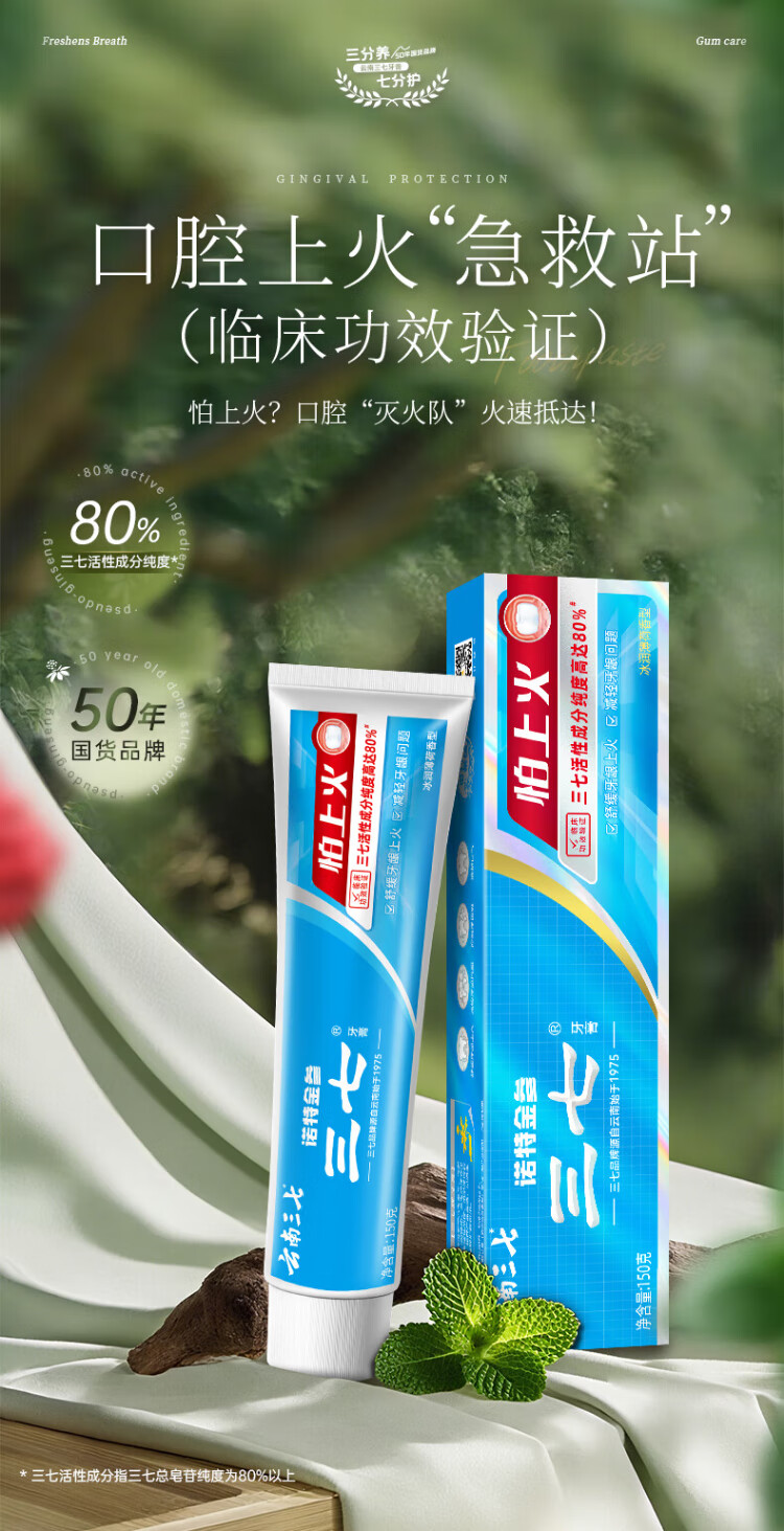 Panax notoginseng flower Qinghuo gum protection toothpaste Yunnan Panax notoginseng is afraid of getting angry, clears breath, inhibits plaque and reduces gum problems 150g