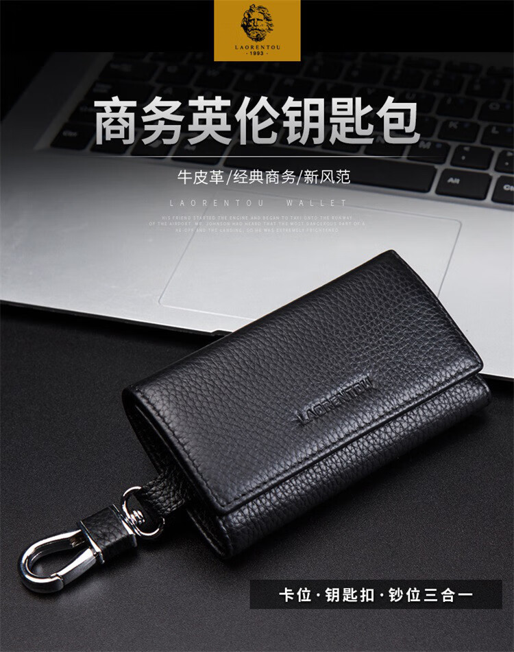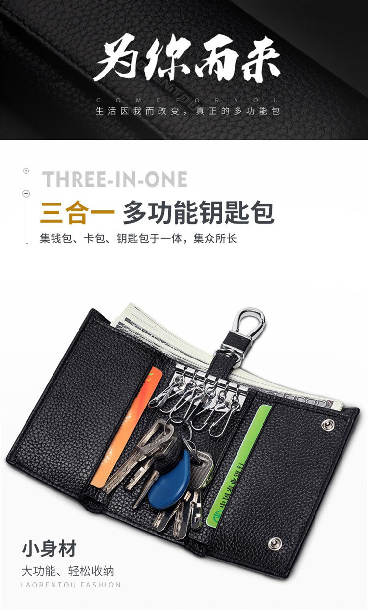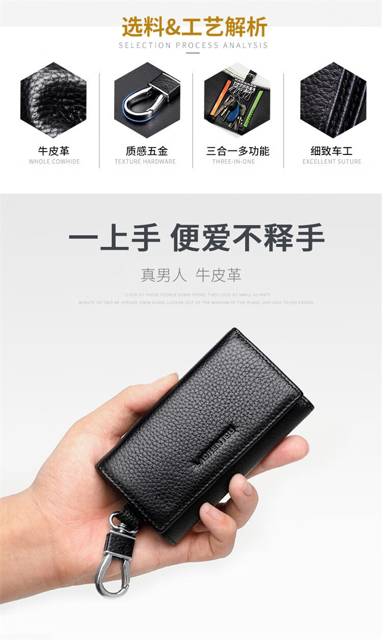 Old men's wallet short business first-layer cowhide vertical key bag three-fold coin purse ticket holder wallet birthday gift