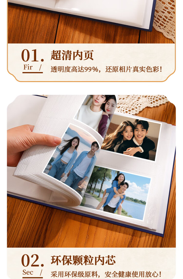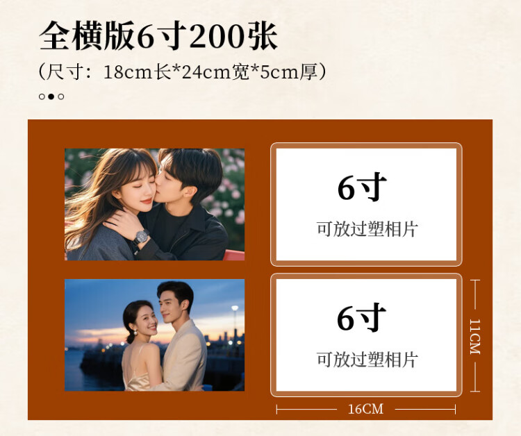 具才6寸相册家庭版宝宝成长收纳册影集写真制作diy小相册本情侣照片纪念册高级大容量可插式可放过塑封