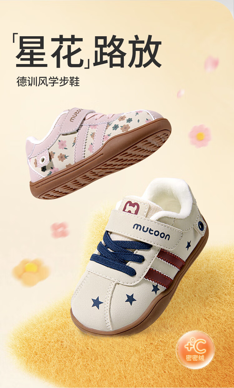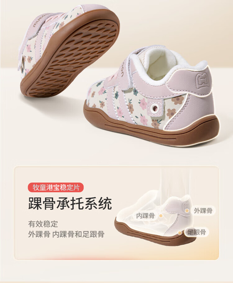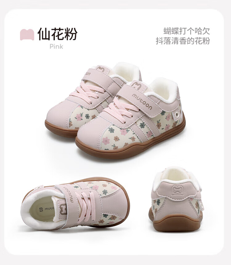牧童宝宝学步鞋25冬季加绒小女孩软底德训鞋儿童机能鞋男 仙花粉19