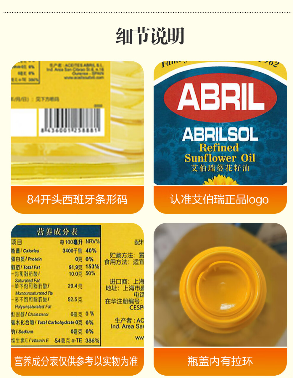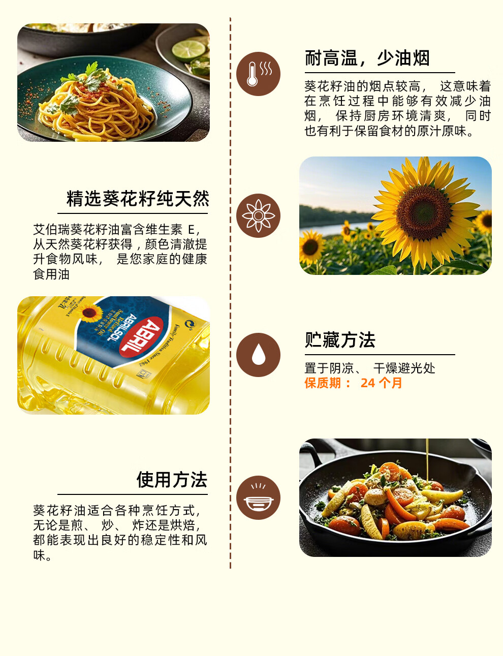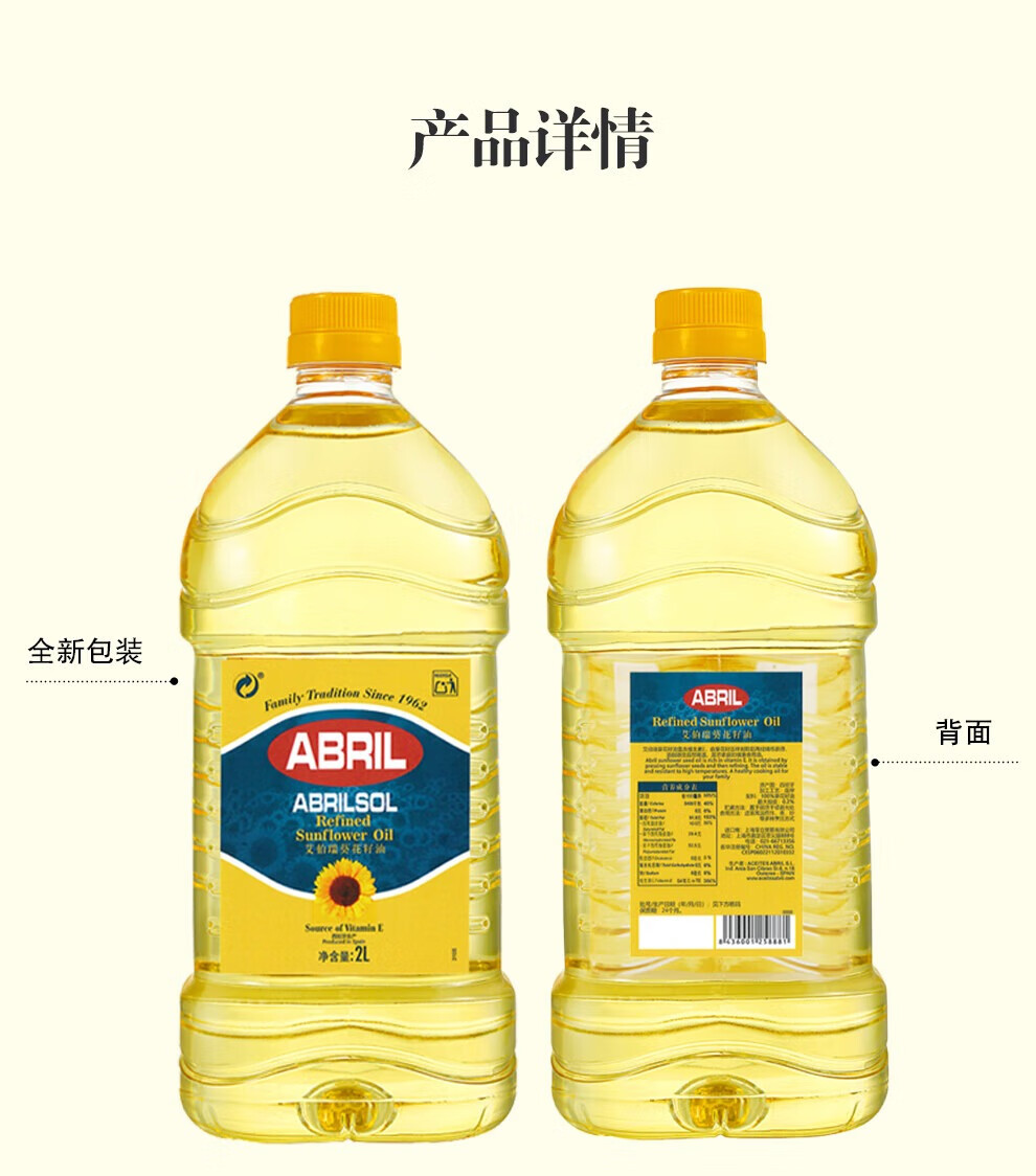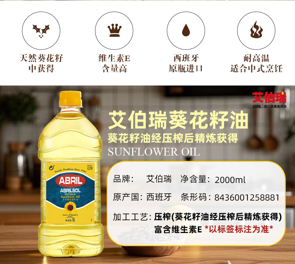 艾伯瑞25年1月生产ABRIL压榨葵花籽油2L西班牙原装原瓶进口 煎炒炸烘焙