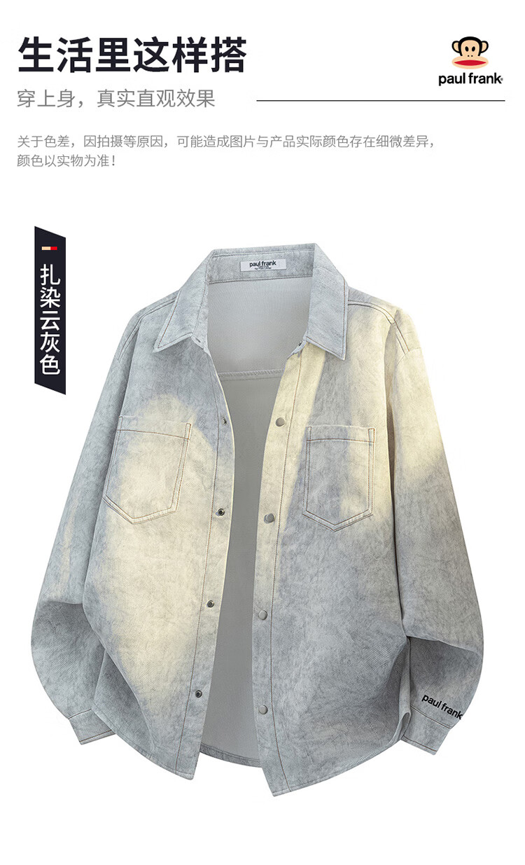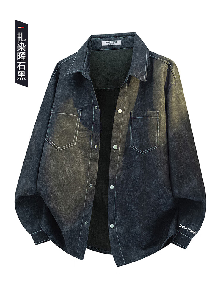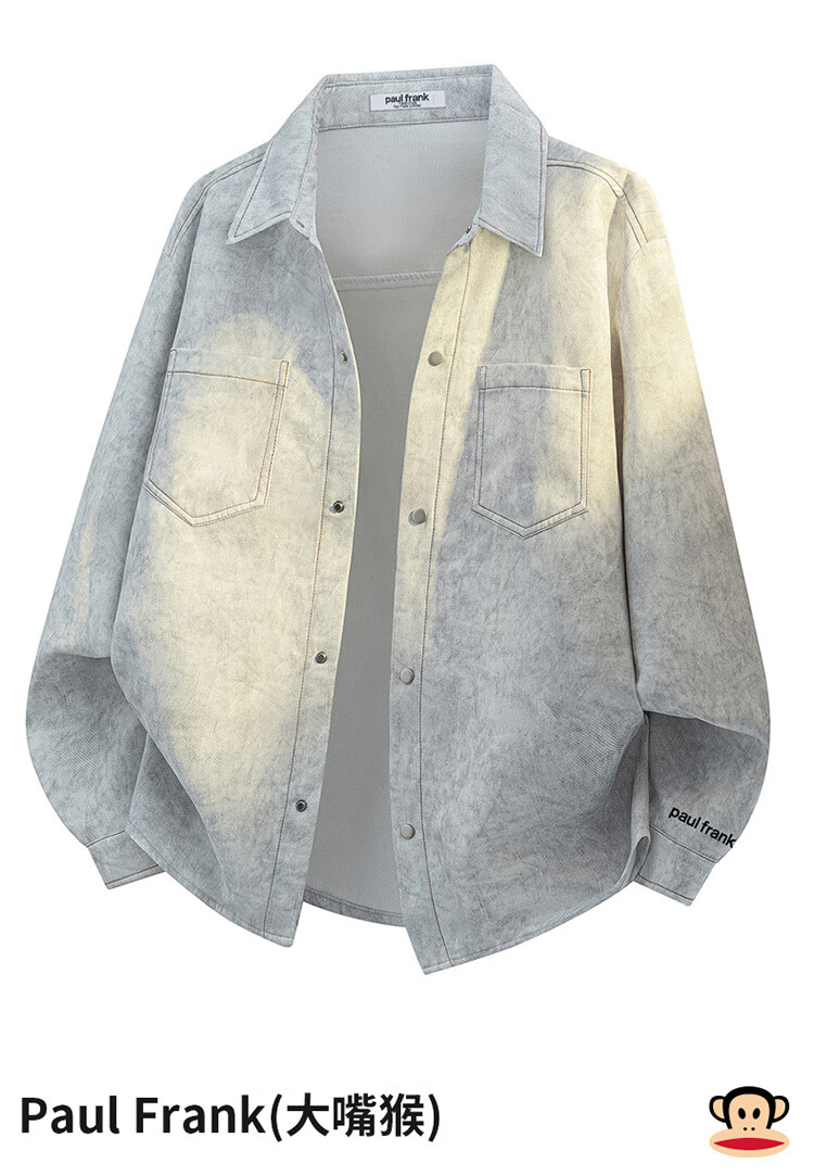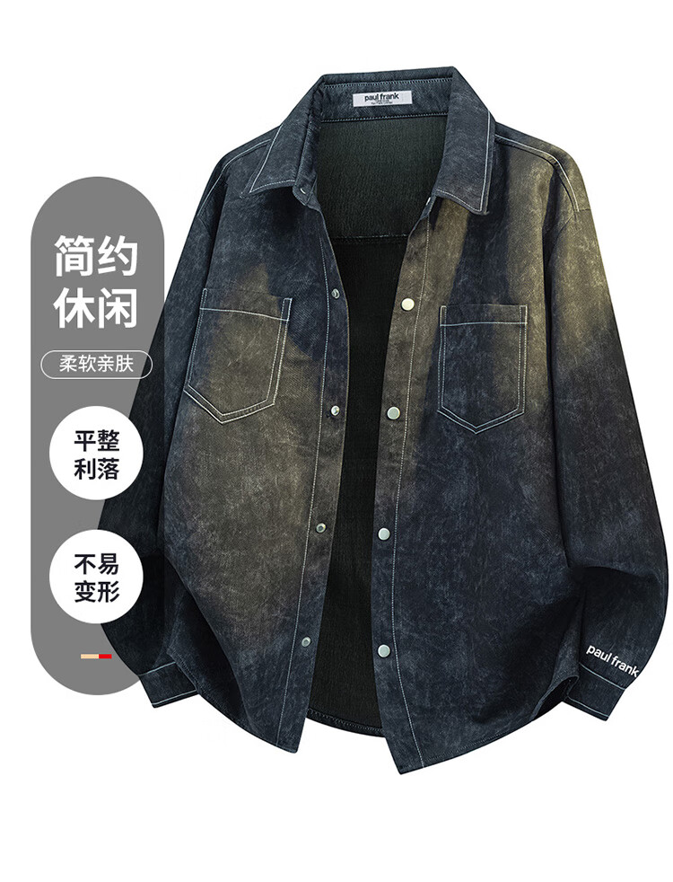 Рубашка с длинными рукавами Paul Frank, мужская осенняя рубашка с принтом тай-дай, мужская повседневная свободная рабочая одежда, куртка, мужская куртка с принтом тай-дай, облачно-серого цвета, XL