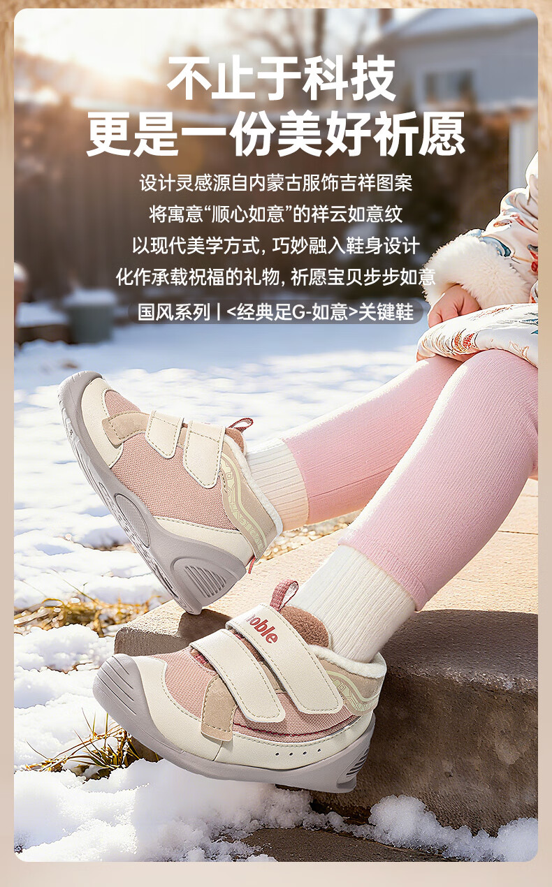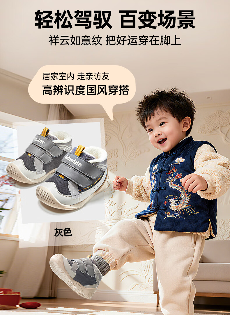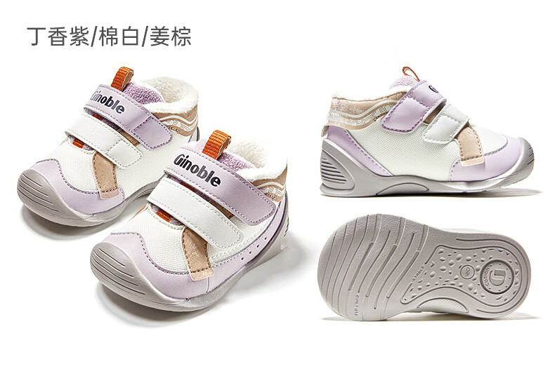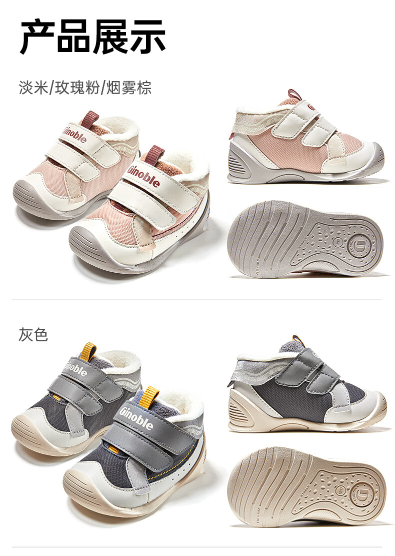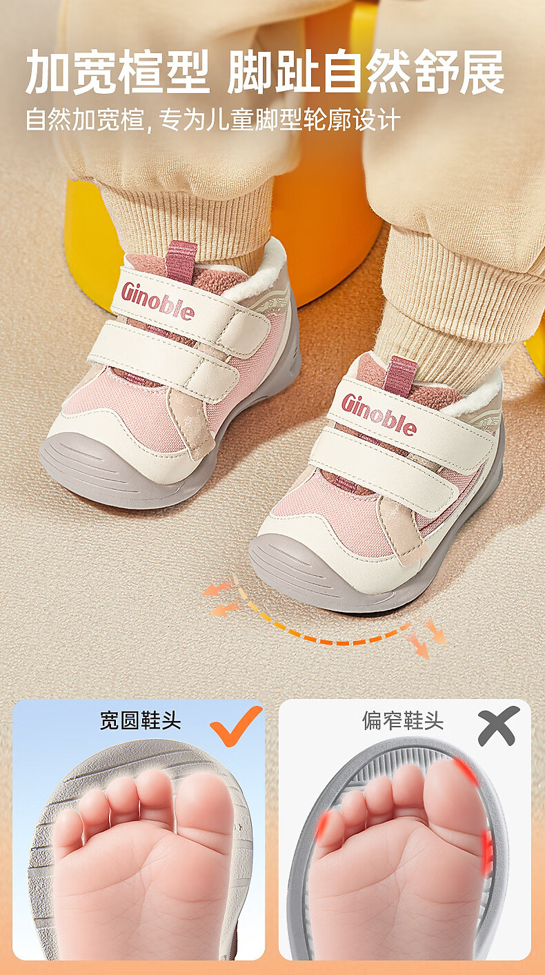 基诺浦(ginoble)机能鞋2025冬新款童鞋婴儿步前鞋宝宝鞋子GB2497淡米